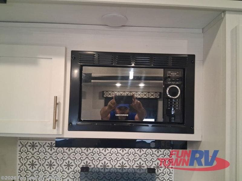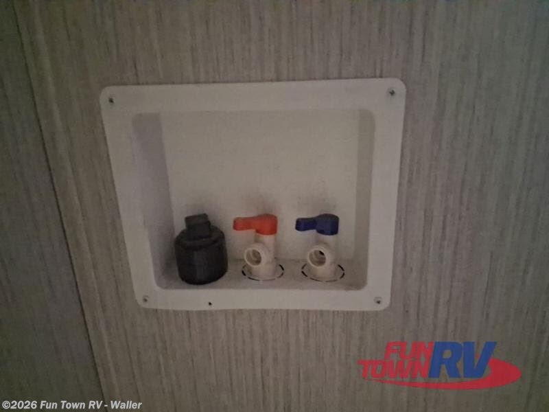 This is the perfect couple's trailer with space for two overnight guests or little ones on the rear hide-a-bed sofa. You will enjoy the front private bedroom with its king bed slide out, a dresser and a bench seat, plus a walk-in wardrobe with washer and dryer prep. The full bath includes plenty of space to freshen up, and there is a linen closet here for clean towels. Check out the main living area that features tons of space thanks to the dual opposing slides, and the kitchen island brings that extra touch of home to this space. The LED HDTV sits within the entertainment center directly across from the theater seating for perfect viewing, and this model includes tons of storage space, including two pantries, a hutch, and a pass-through storage!