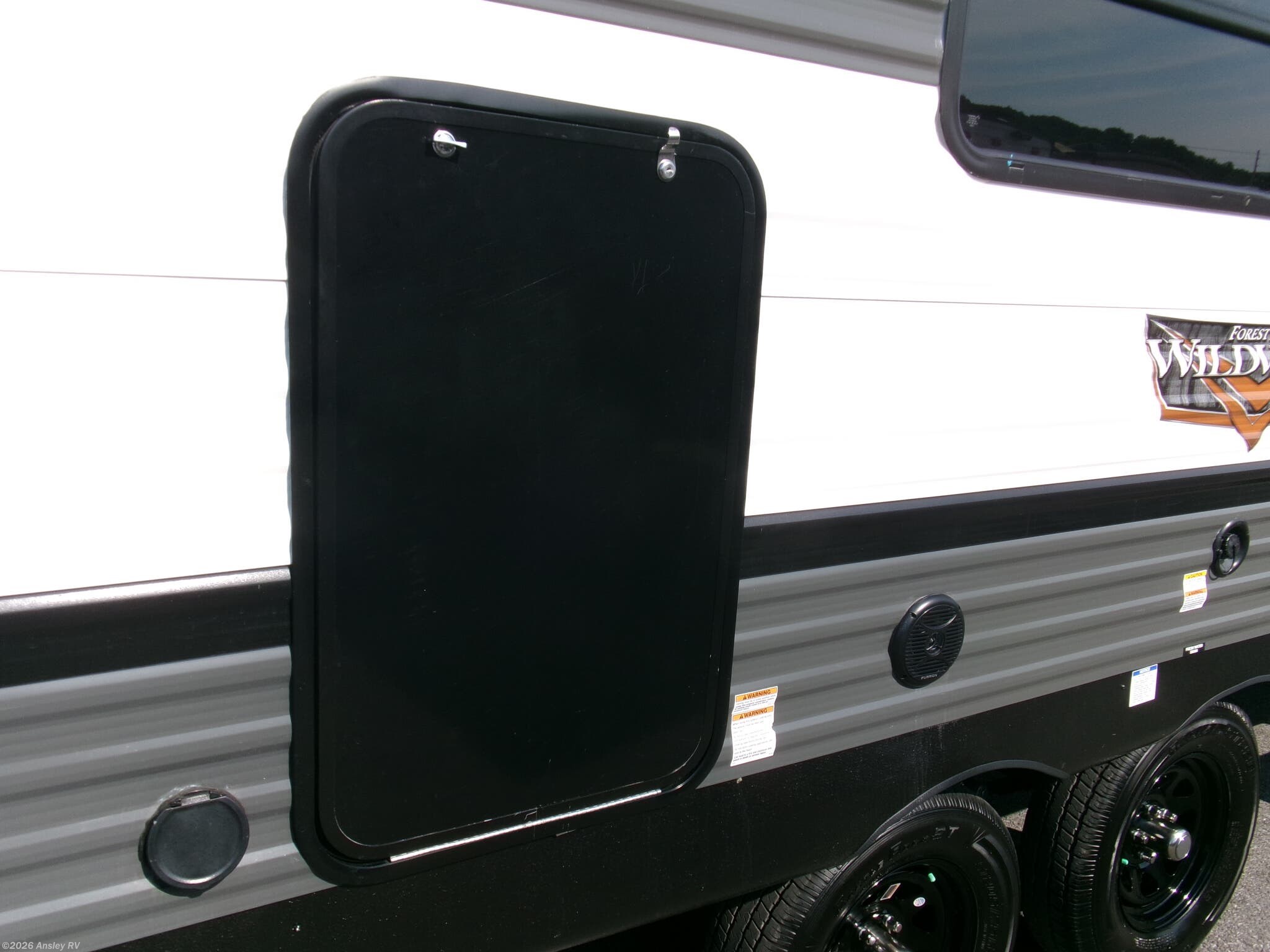 The Forest River Wildwood combines outdoor convenience with safety features for peace of mind during travel: