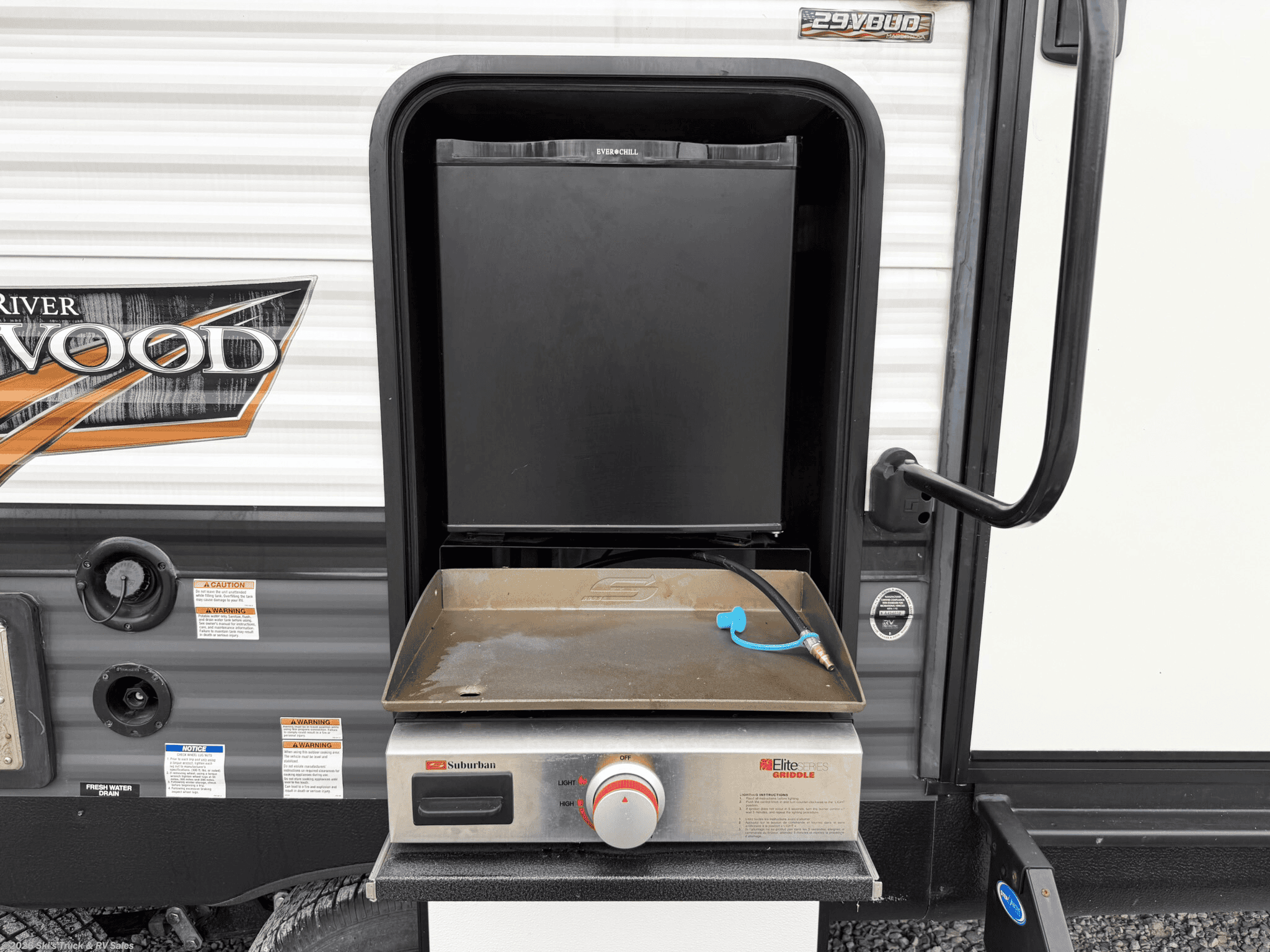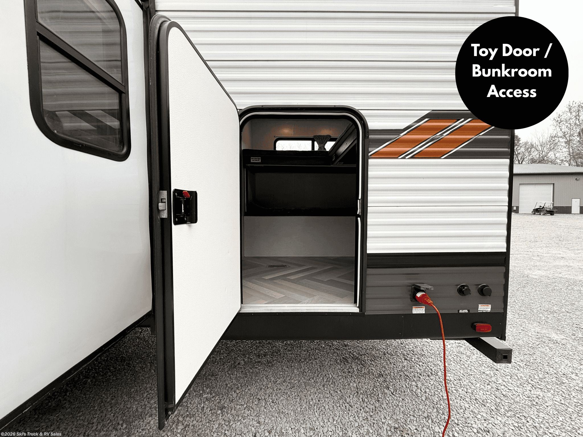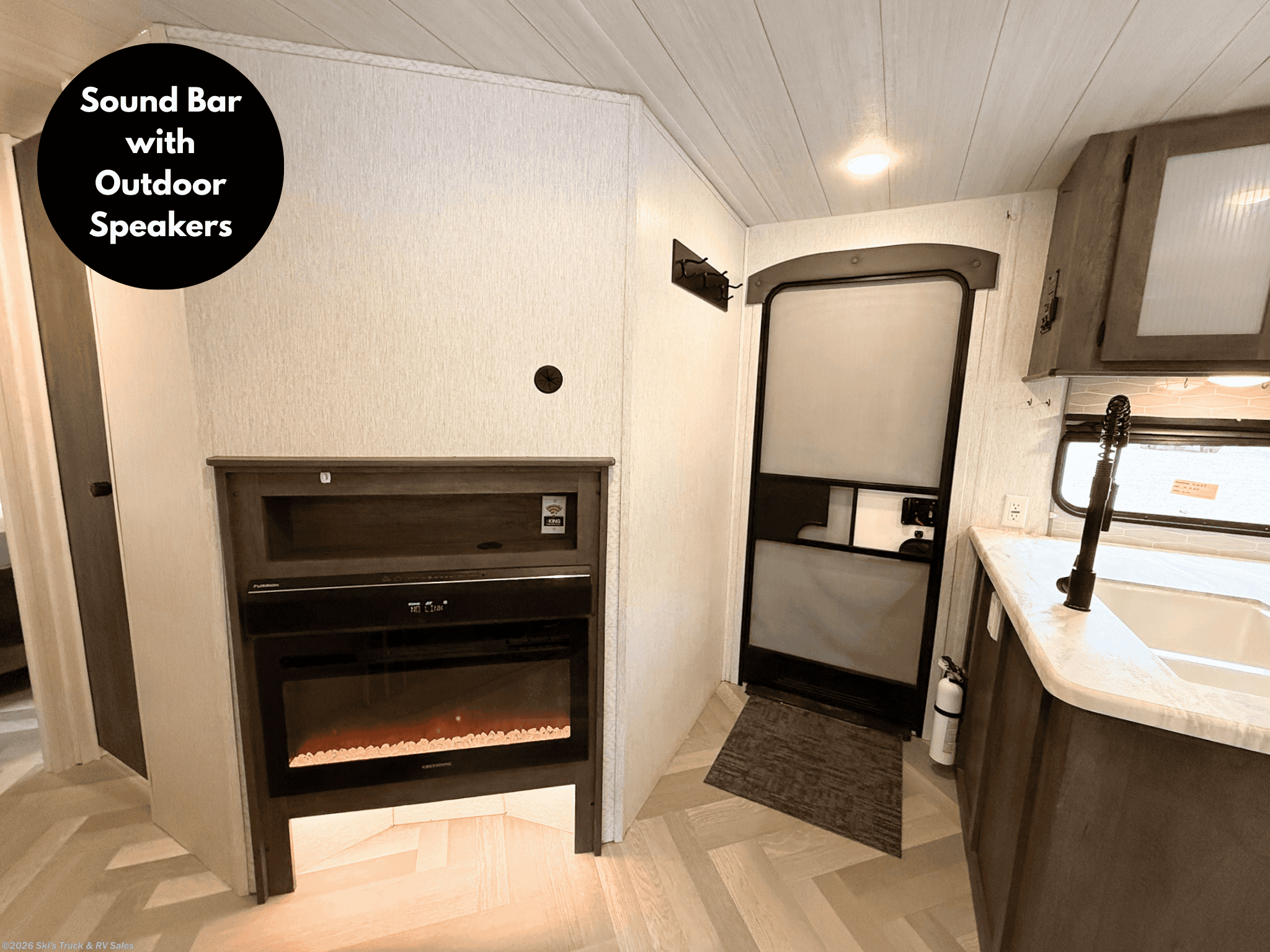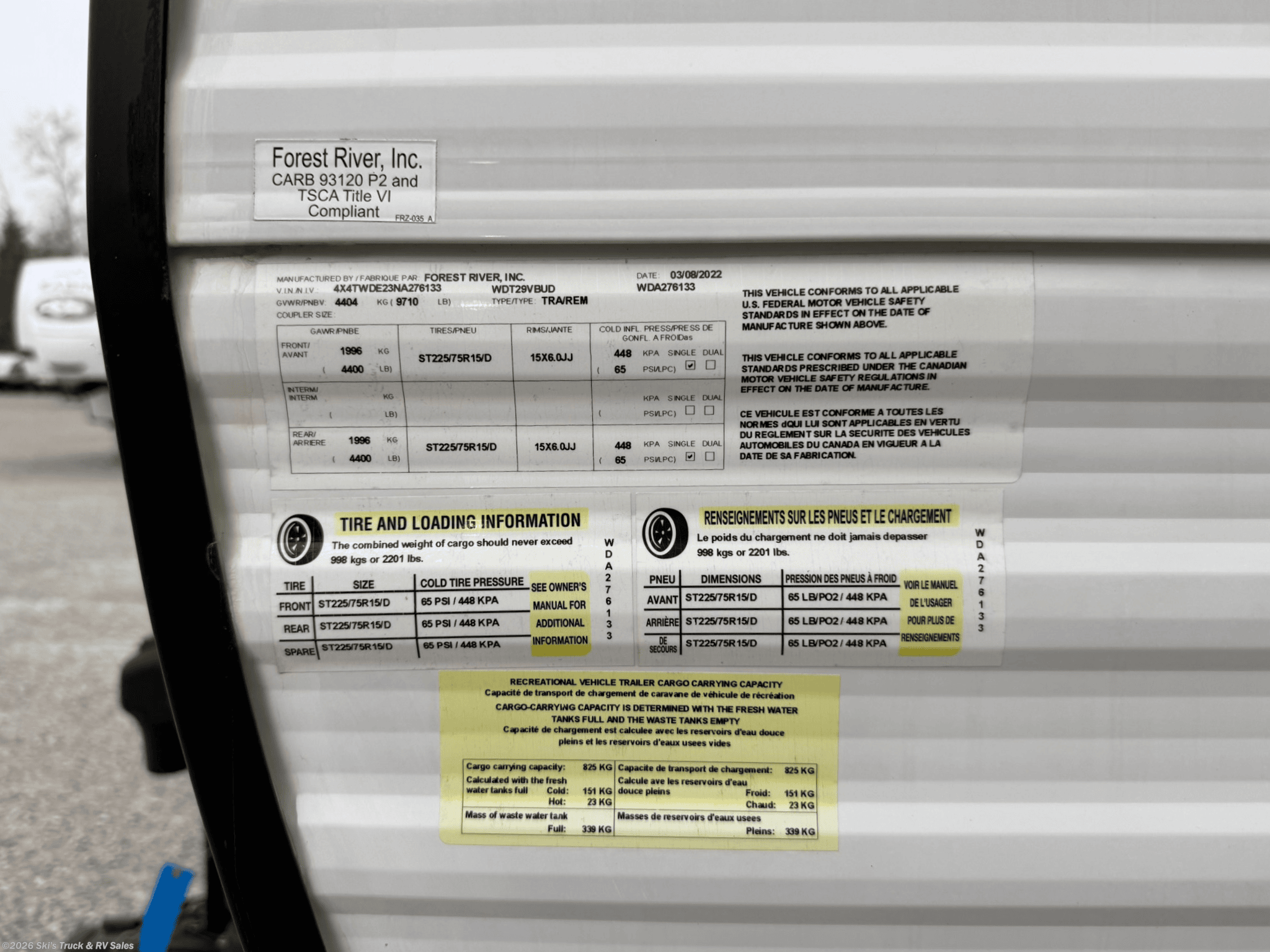 Pre-Owned 2022 Forest River Wildwood 29VBUD Bunkhouse Travel Trailer; 33 Foot; 1 Slide; Sleeps 8-10; Hitch Weight: 910 Lbs.; Dry Weight: 7728 Lbs.; 50 Amp; Power Tongue and Stabilizer Jacks; 40 Gal. Fresh Water Cap.; 30 Gal. Black Water Cap.; 60 Gal. Gray Water Cap.; Two 20 Lbs. Propane Tanks; 13,500 BTU AC; 30,000 BTU Furnace; 10 C.F. (12V) Refrigerator; 6 Gal. Gas/Elec. Water Heater; Microwave; 3-Burner Stove/Oven; Three TV Jacks; Sound Bar; One Fireplace; U Shaped Dinette ; New Kitchen Table on Order ; Jack-knife Sofa; Queen Bed; Single Bunks; Large Bunk Room with Rear Access Door; One Bathroom with Shower; Outside Kitchen with Griddle; Outside Shower; Exterior Storage; Foldup Steps; Grab Handle; Magnetic Door Holders; Climate Package; Tinted Windows; Roller Shades; Spare Tire; Trade In; Financing Available; Good Pre-Owned Bunkhouse Travel Trailer for the Price: $21,995. Call Skis Truck & RV Sales at 765-344-1111 or visit us at for more information.