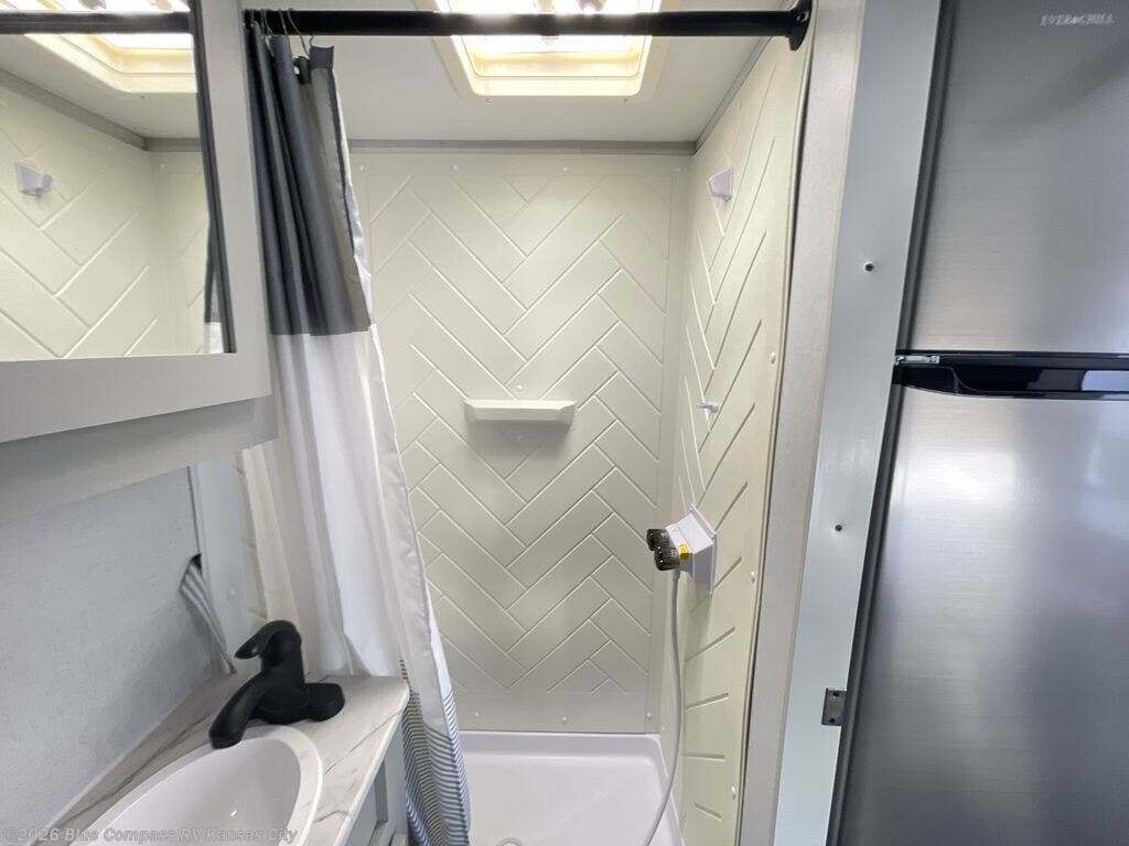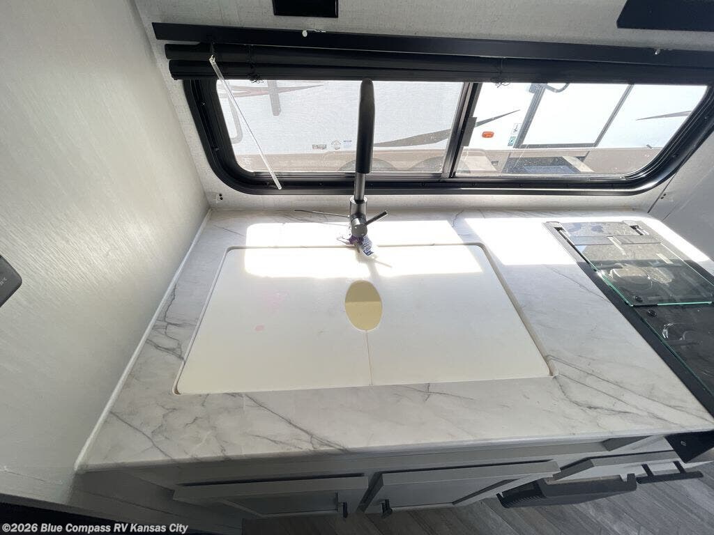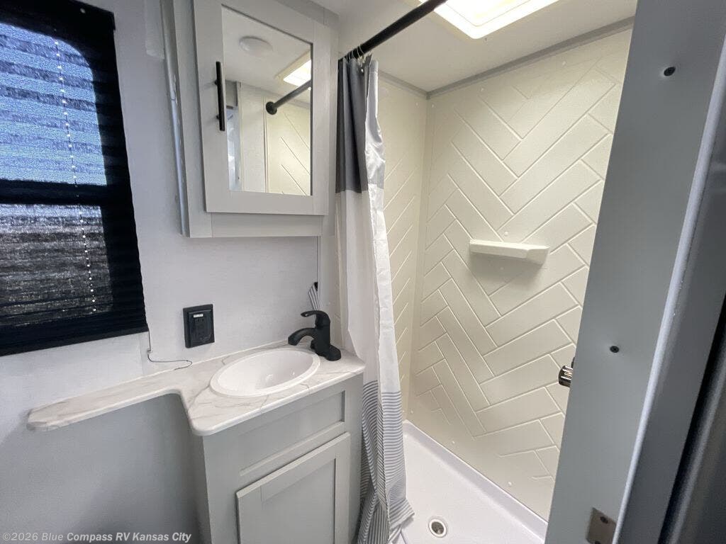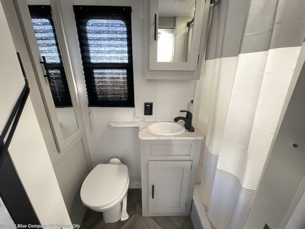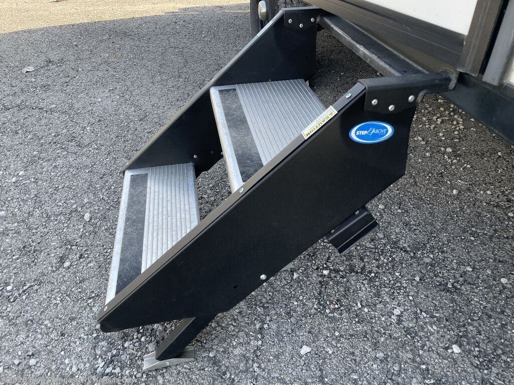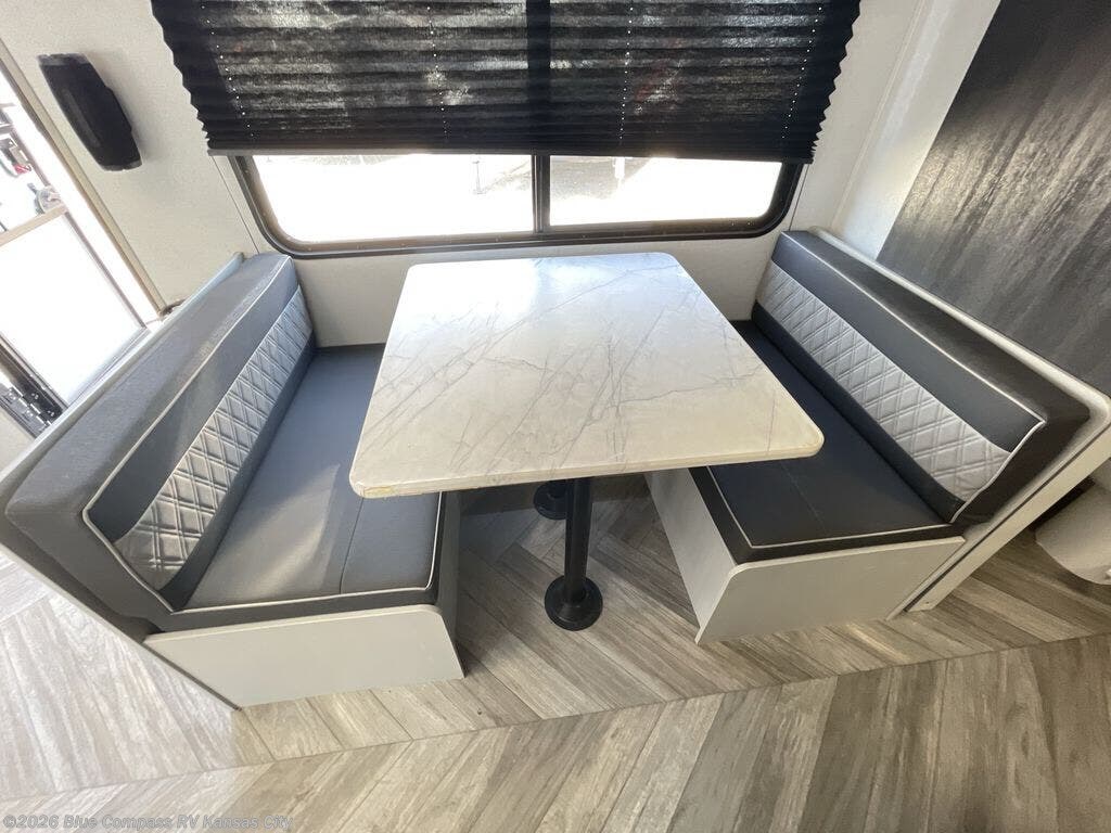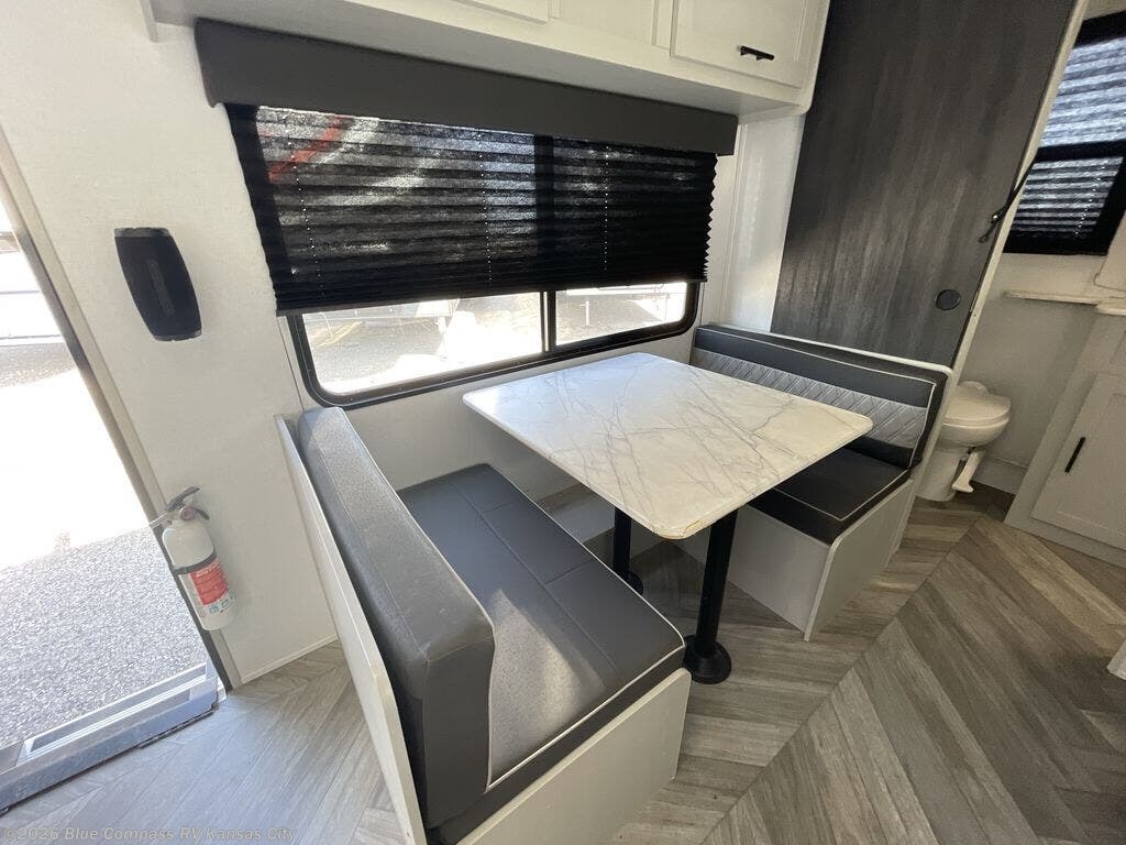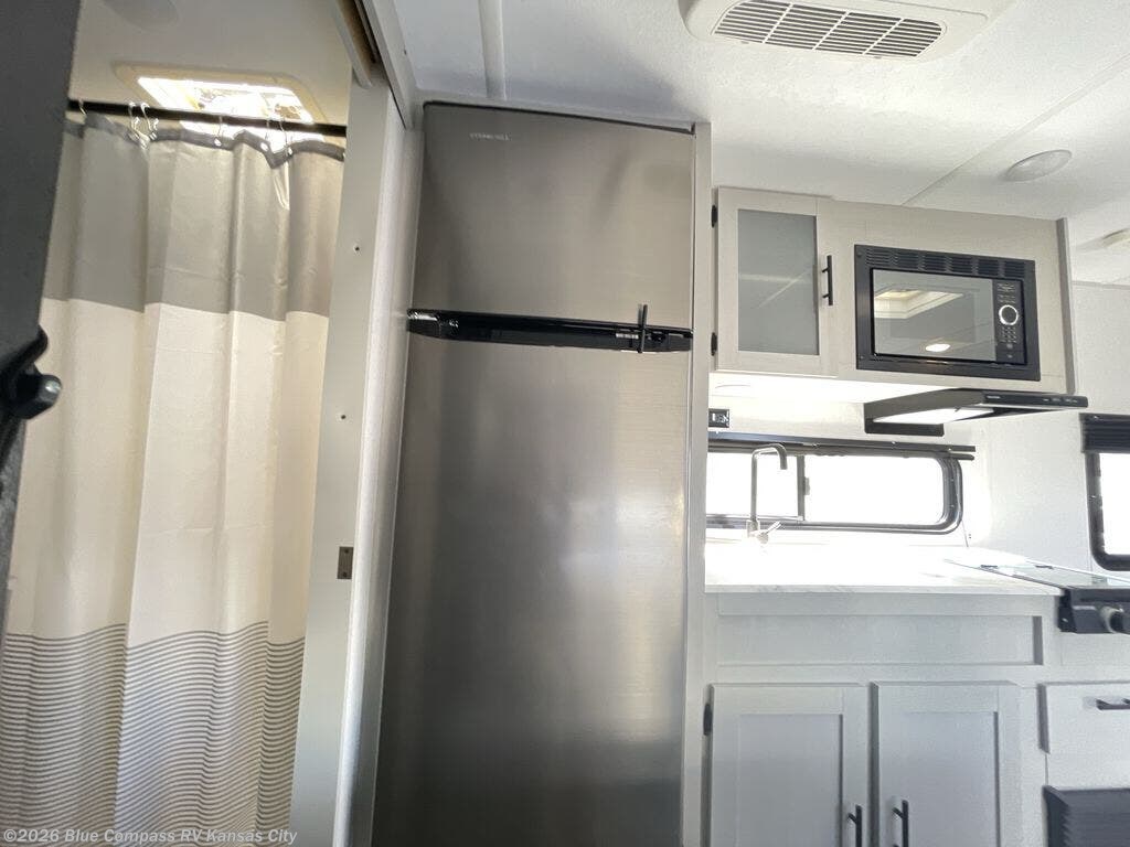 This travel trailer with a full rear bath and versatile sleeping space is your ticket to fun and adventure. While you're putting out the 12' power awning, you can grab a cold drink from the outdoor refrigerator and grab the lawn chairs from the full pass-through storage. There is a two burner cooktop and a microwave oven to prepare your meals in, and a booth dinette to dine at. You'll love the RV queen Murphy bed to sleep on at night, and the sofa with storage to relax on during the day!