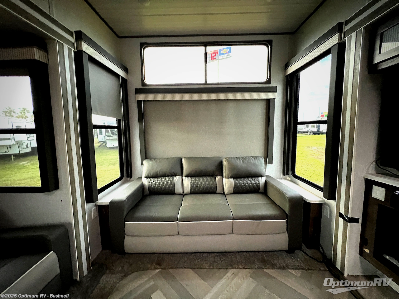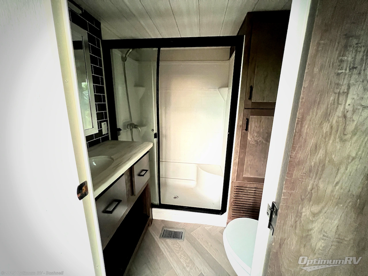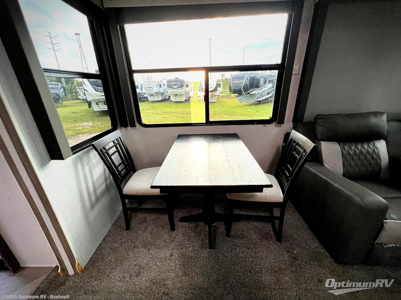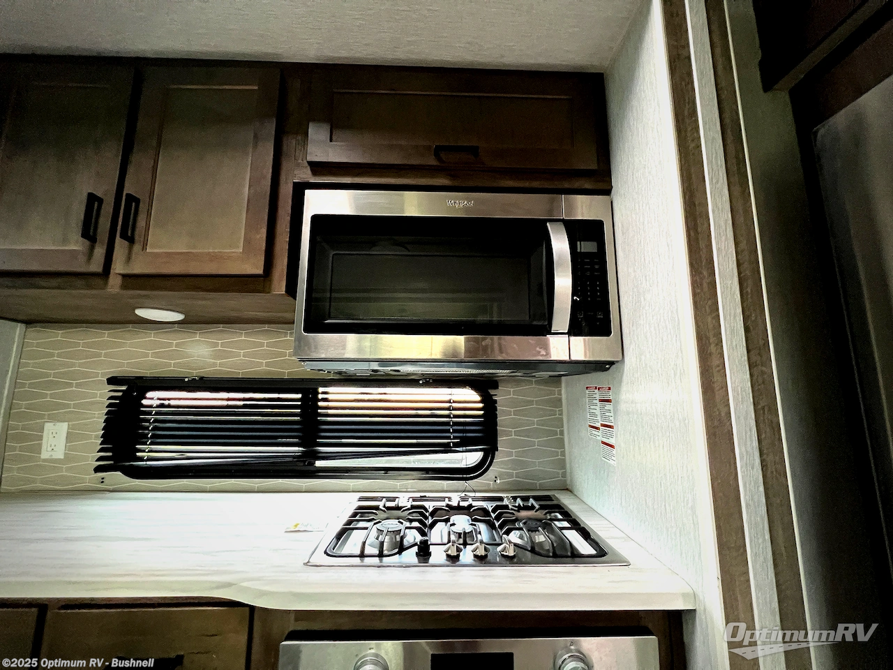 If you just need to get away from the busyness of life and need a little piece of home to escape to, the Forest River Wildwood Grand Lodge destination trailer is your ticket to paradise! The quality construction includes a 12" forged l-beam frame, 5-ply tongue and groove plywood floor decking, bowed truss roof rafters, plus more allowing you to own your trailer for many years to come! The interior is extremely beautiful and spacious with its 96" ceiling, upgraded designer furniture, stainless steel kitchen appliances, and a residential-inspired floating fireplace. The Bluetooth sound bar with a remote will provide endless nights of soothing music, and the ceiling fan in the living room is a residential touch that comes in handy when you don't want to blast the air conditioning to stay cool.