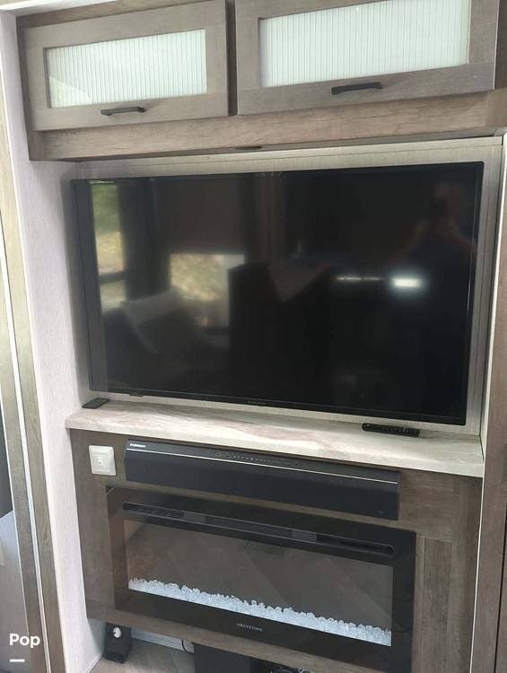 Entertainment is easy with a built-in sound system, Bluetooth connectivity, and a large flat-screen TV.