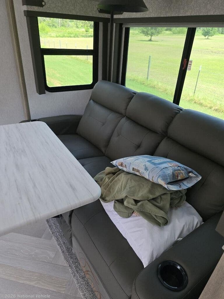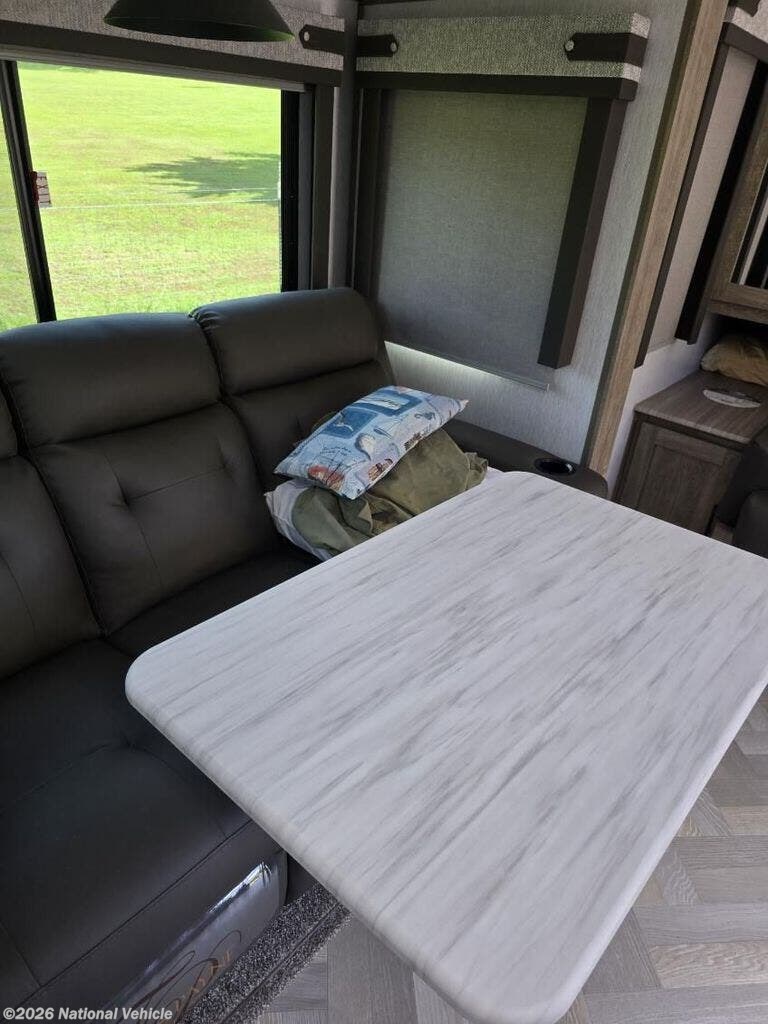 Step inside to discover a well-appointed interior that feels spacious and welcoming. The open floorplan features a comfortable rear living area with plush seating, large windows for panoramic views, and abundant natural light - creating a relaxing space to unwind after a day of exploring. The adjacent dinette offers a perfect spot for meals, games, or planning your next adventure.