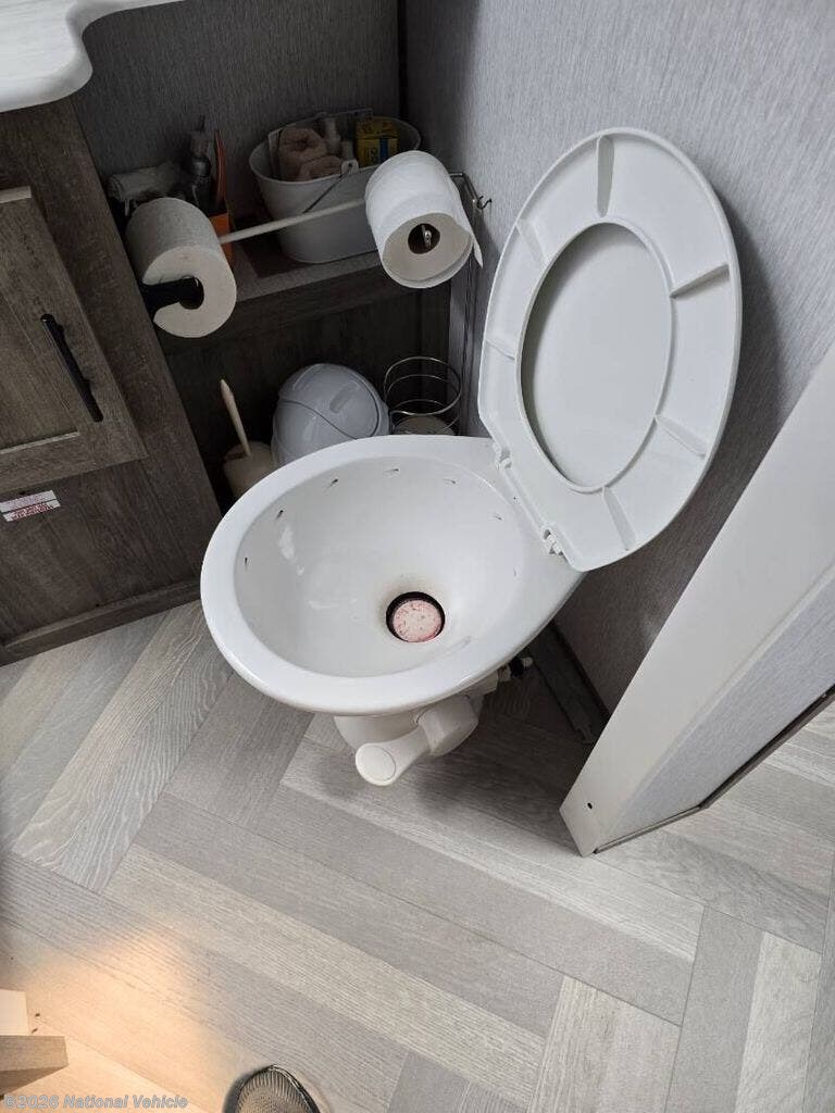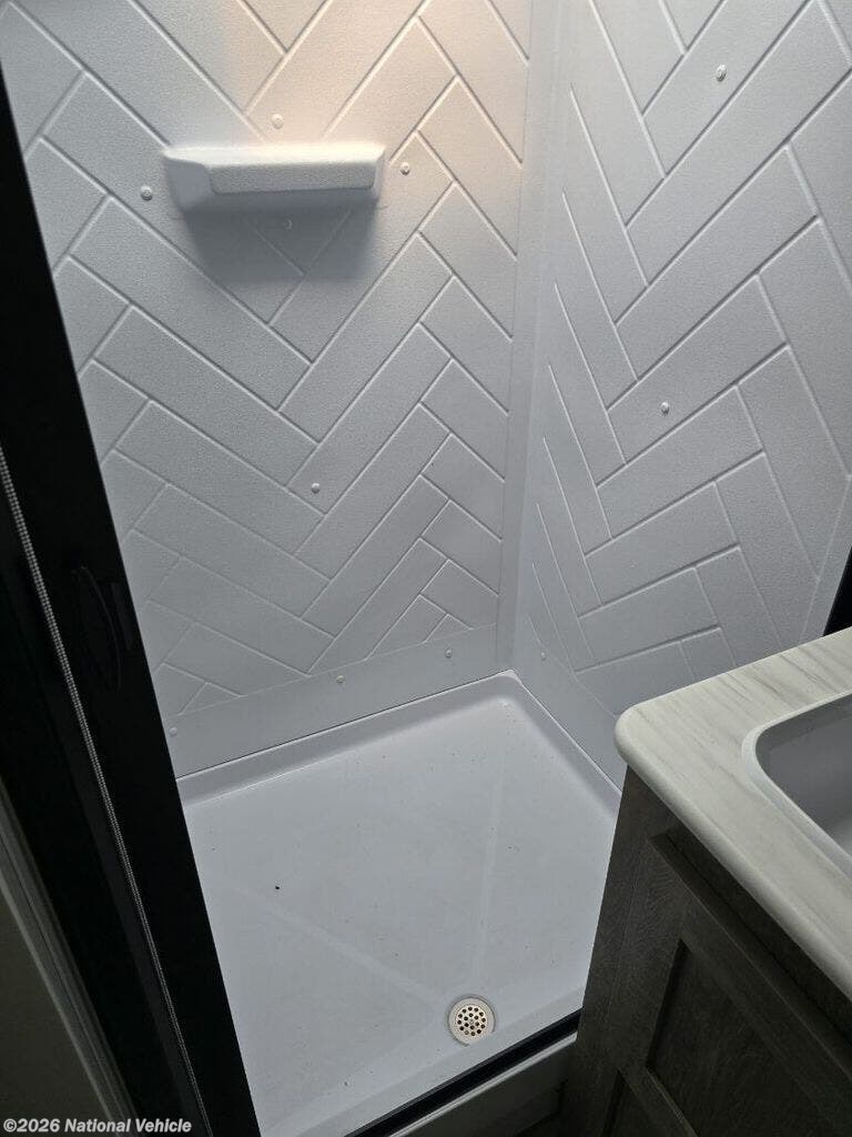 Designed for comfort, the front bedroom area provides a cozy sleeping space with easy access and storage solutions to keep your gear organized. The full bathroom includes a shower, sink, and toilet - giving you the convenience and privacy of home while you?re on the road.