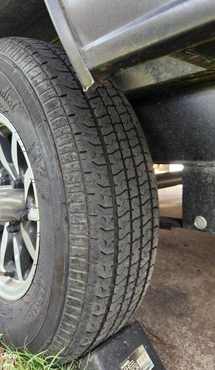 The tires look great, and there is a spare that appears unused. There is also a swivel TV mount ready for a new flatscreen.