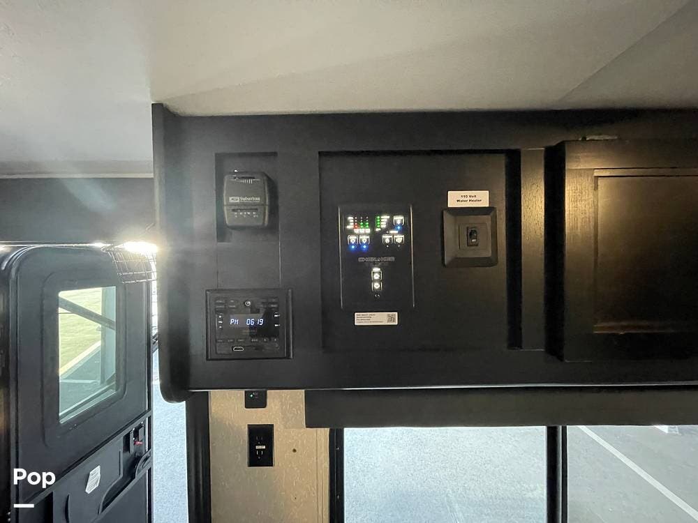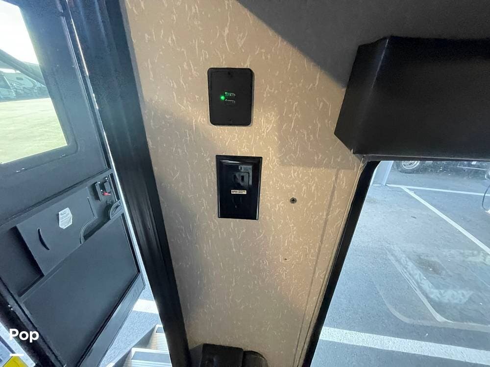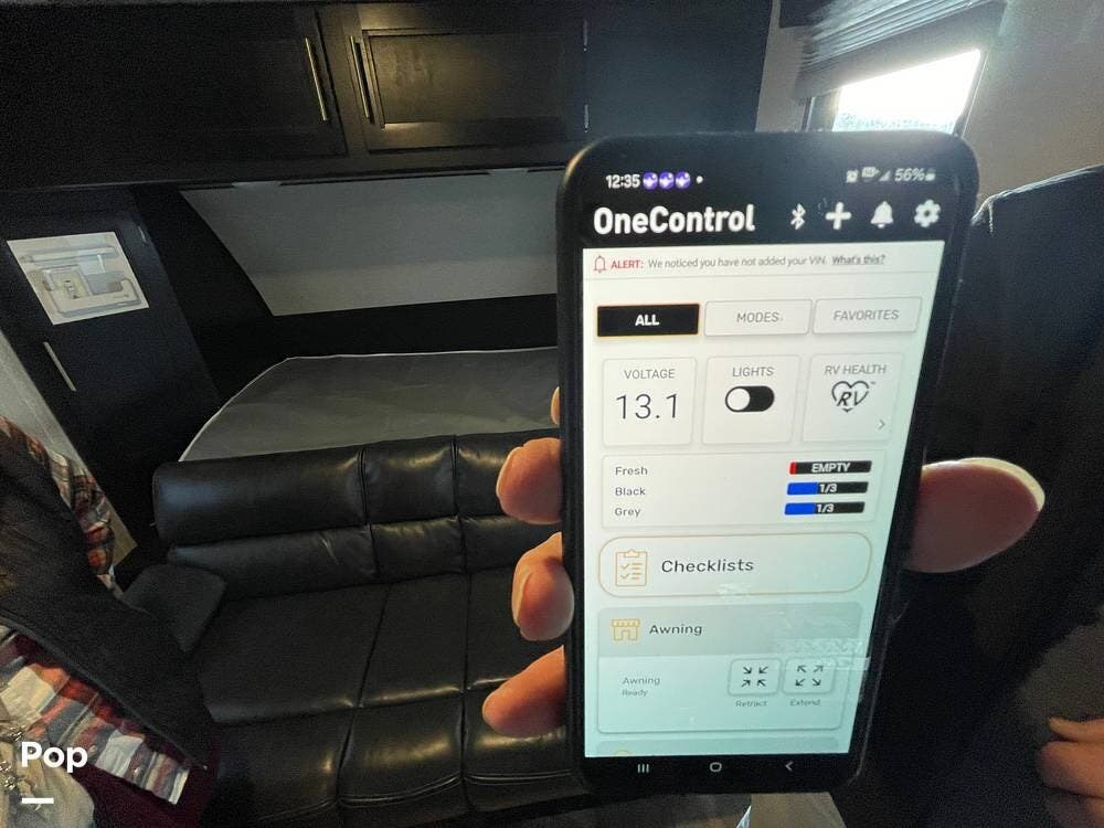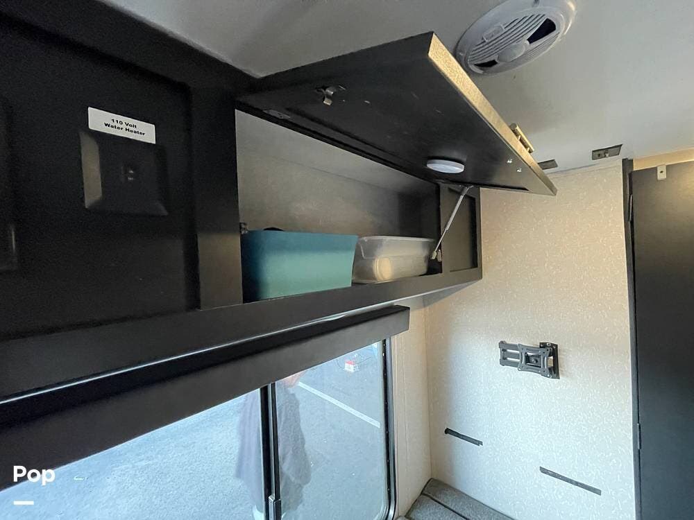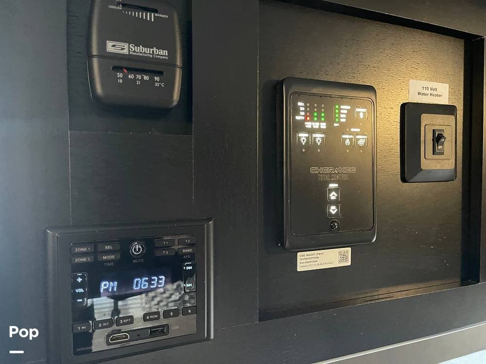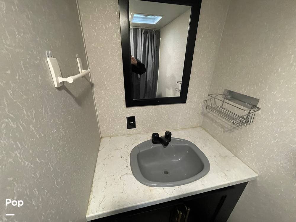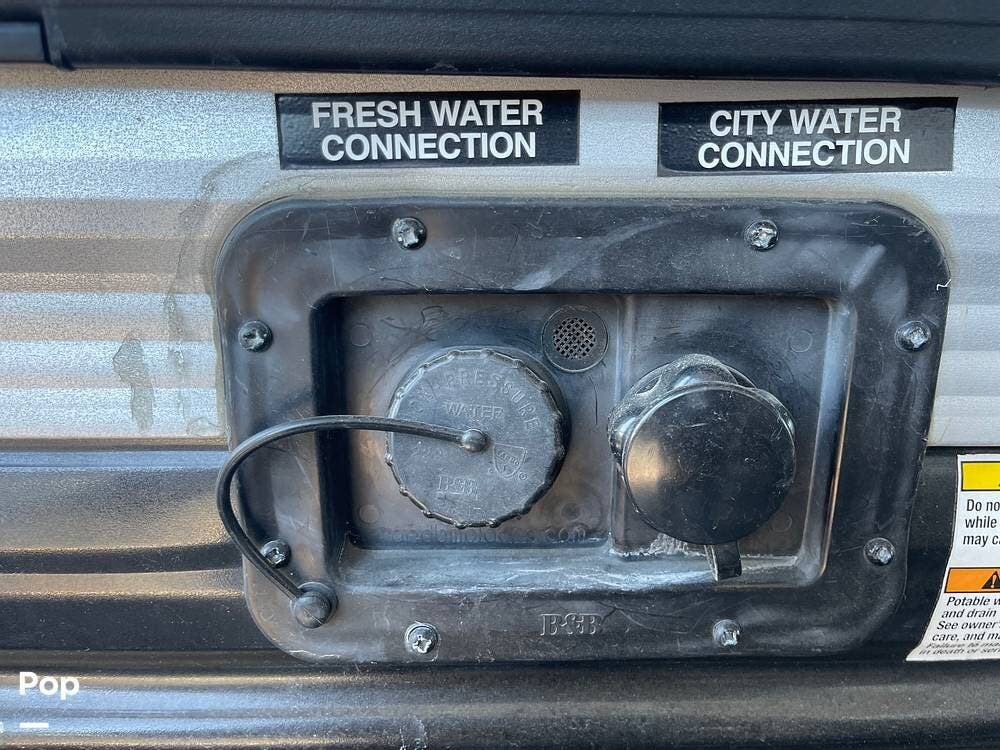 This RV sleeps three, with a fold-down sofa sleeper queen and a comfy dinette sleeper. Its kitchen has a mid-sized freezer fridge, a 2-burner stove, a microwave, and a large circular kitchen sink. The huge window lets you watch the sunset or any outside activities while dining. A large power awning with LED lighting also works smoothly and quietly.
