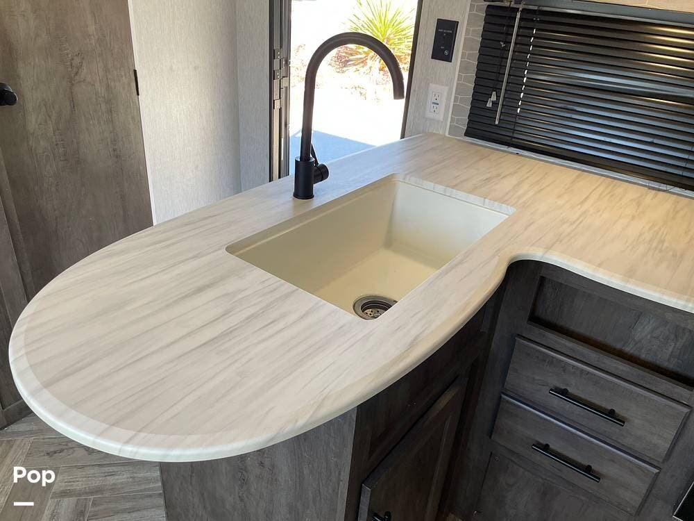 This exceptional travel trailer is designed to elevate your camping experience to new heights. With its sleek and modern exterior, this model is sure to turn heads wherever you go.