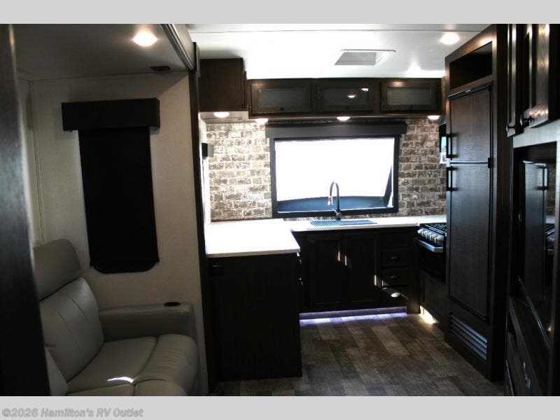 With all of the fabulous features found in this XLR Hyper Lite toy hauler, it is no wonder that it has been awarded the "Best of Show" title from RV Pro! The central bedroom is kept open with a set of opposing slides, and the electric bunk and opposing sofas in the 10' separate garage will be a great location for your guests or kids to spend the night. In the front kitchen, you'll find extra counter space that spans the width of the trailer, and the sofa slide which is right next to the kitchen will be a great spot for visitors to sit down and chat. If you have any messes occur while you cook dinner, you can simply use the central vacuum to clean them up.