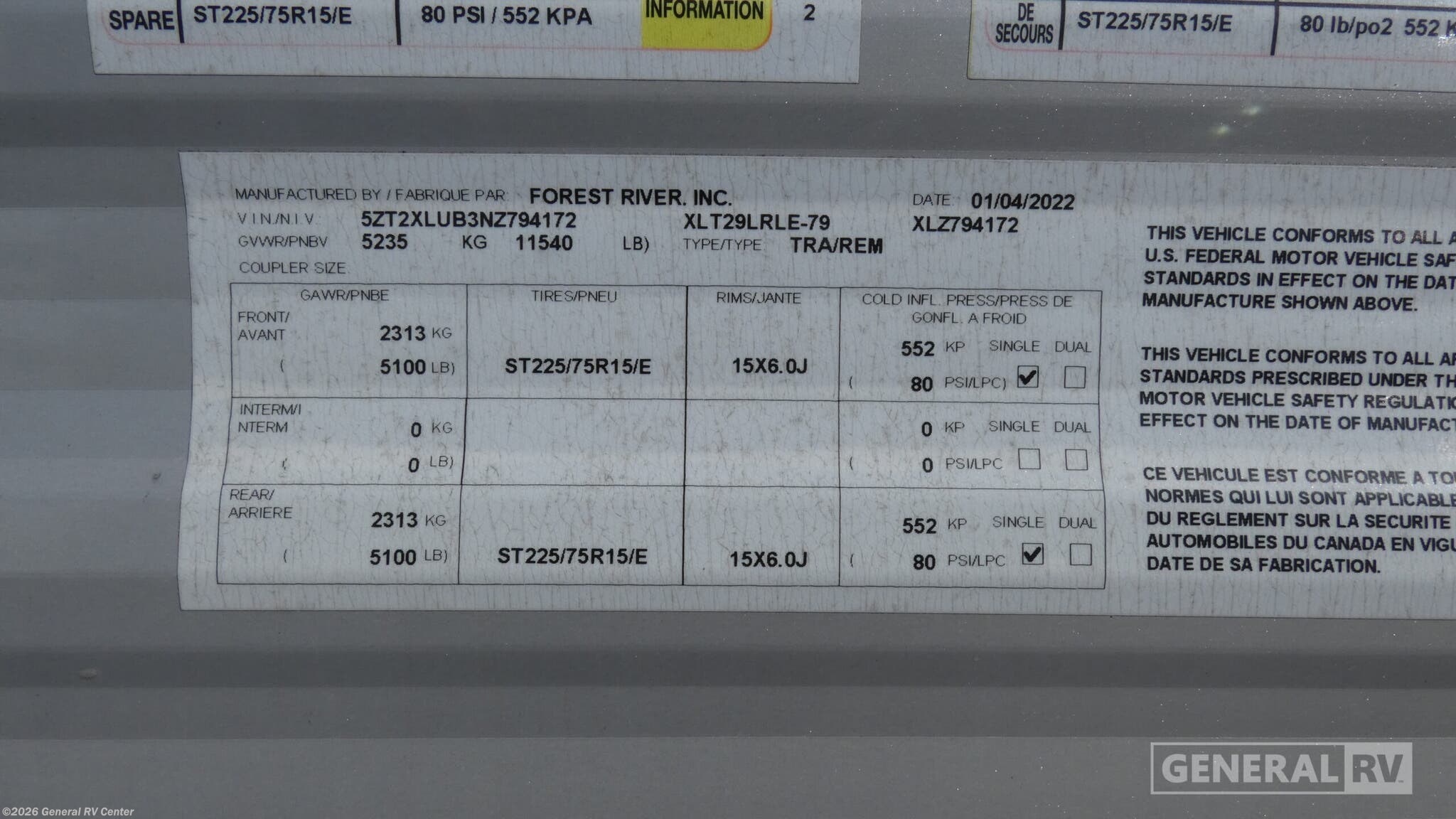 - VIN5ZT2XLUB3NZ794172