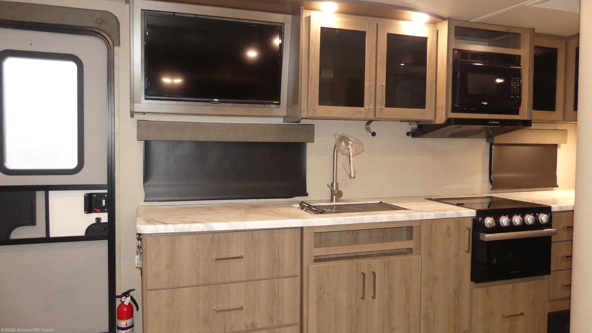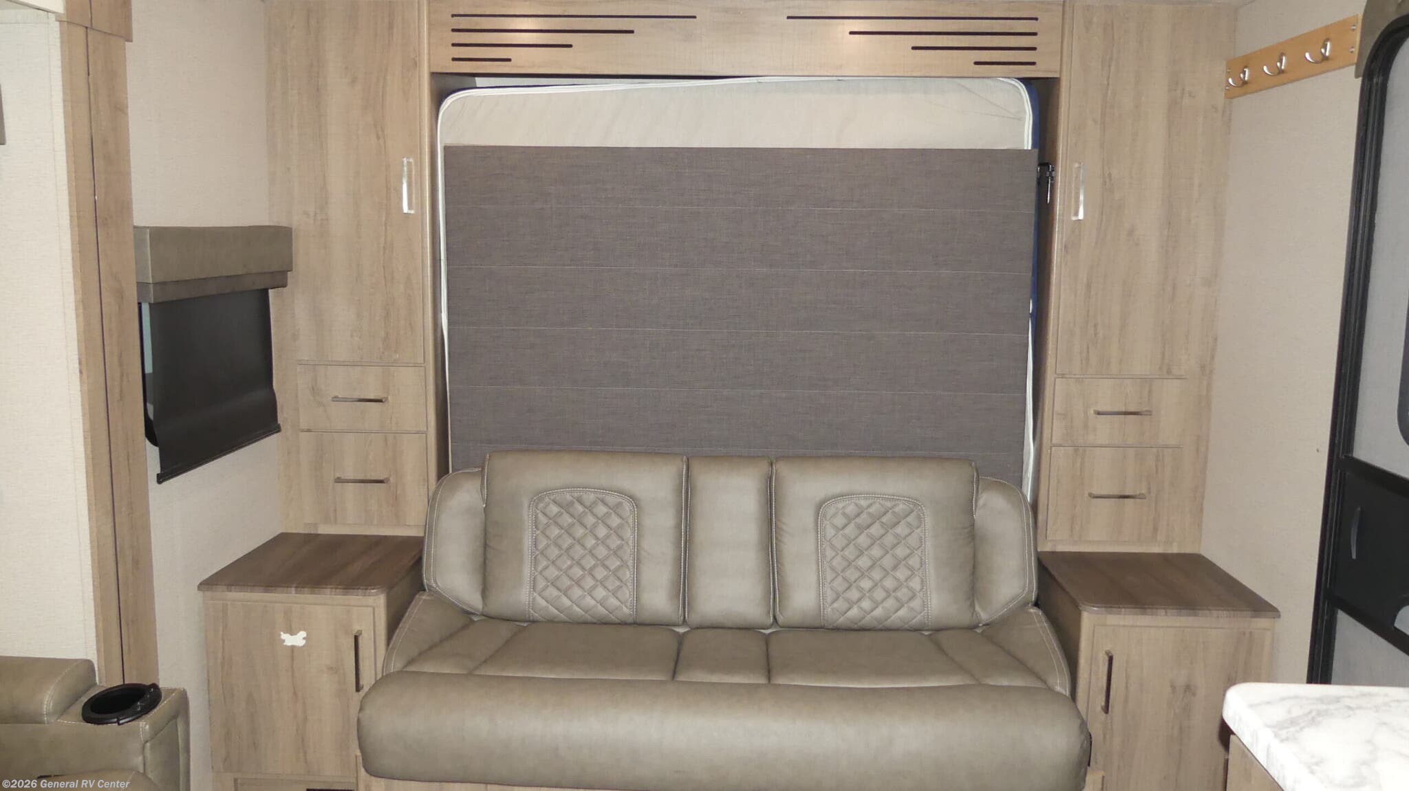 Step into the 2022 Grand Design Imagine XLS 17MKE, where innovative design meets cozy comfort. This compact yet spacious RV is perfect for adventurous couples or small families, offering the convenience of a Queen Murphy bed that effortlessly transforms your living space from day to night. The center living area becomes your entertainment hub, complemented by a versatile theater dinette with a removable table, ideal for dining or relaxing after a day of exploration. The rear kitchen is a culinary delight, equipped with a three-burner cooktop and a mid-size refrigerator powered by both electric and propane, ensuring you have all the essentials to whip up delicious meals on the road. With a 14 ft. powered retractable awning, the outdoor living space extends your comfort zone, providing the perfect spot for enjoying the great outdoors. Plus, the unobstructed pass-thru storage offers ample space for all your adventure gear. Embrace the open road with the Imagine XLS 17MKE, and create unforgettable memories on your next journey. For more details, visit your nearest General RV dealership.