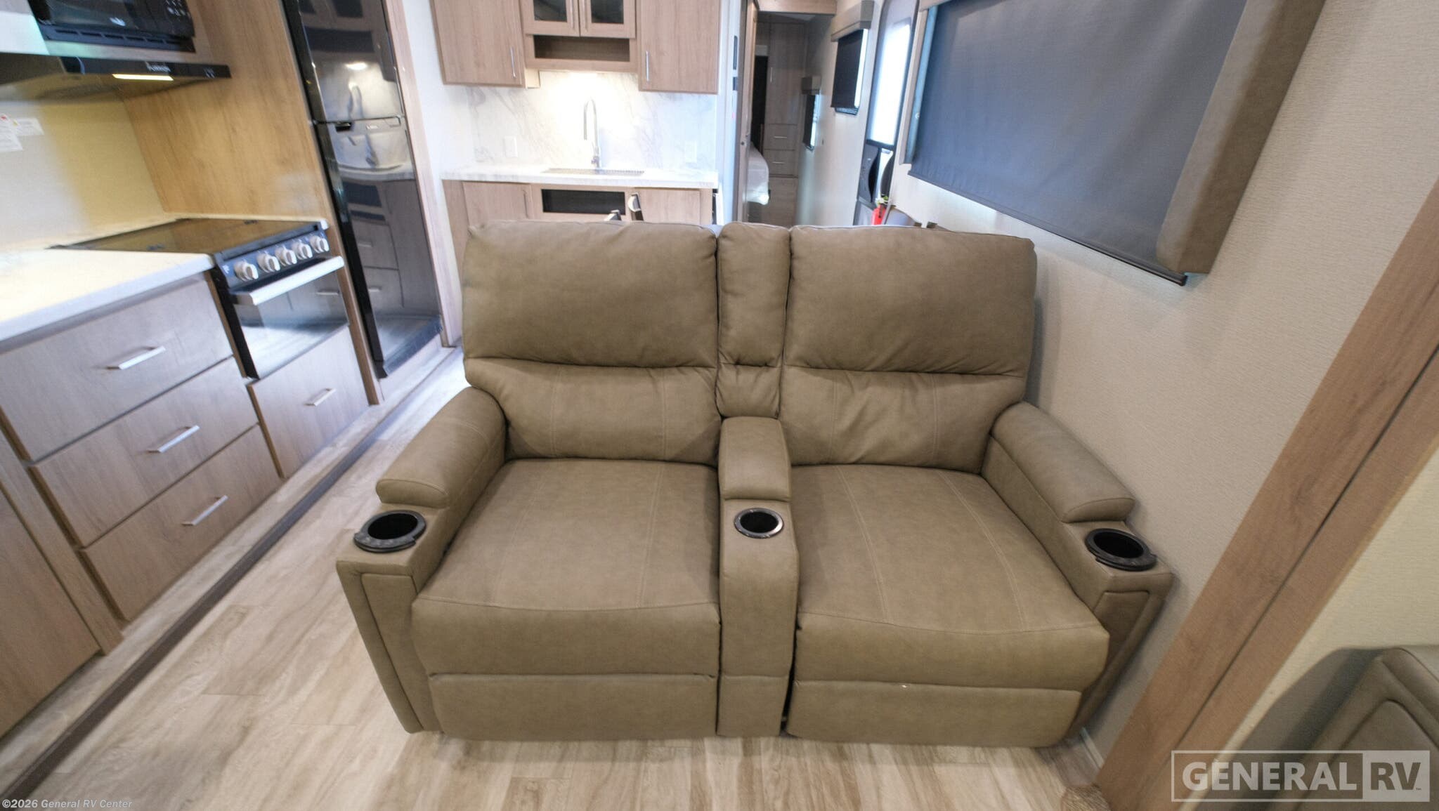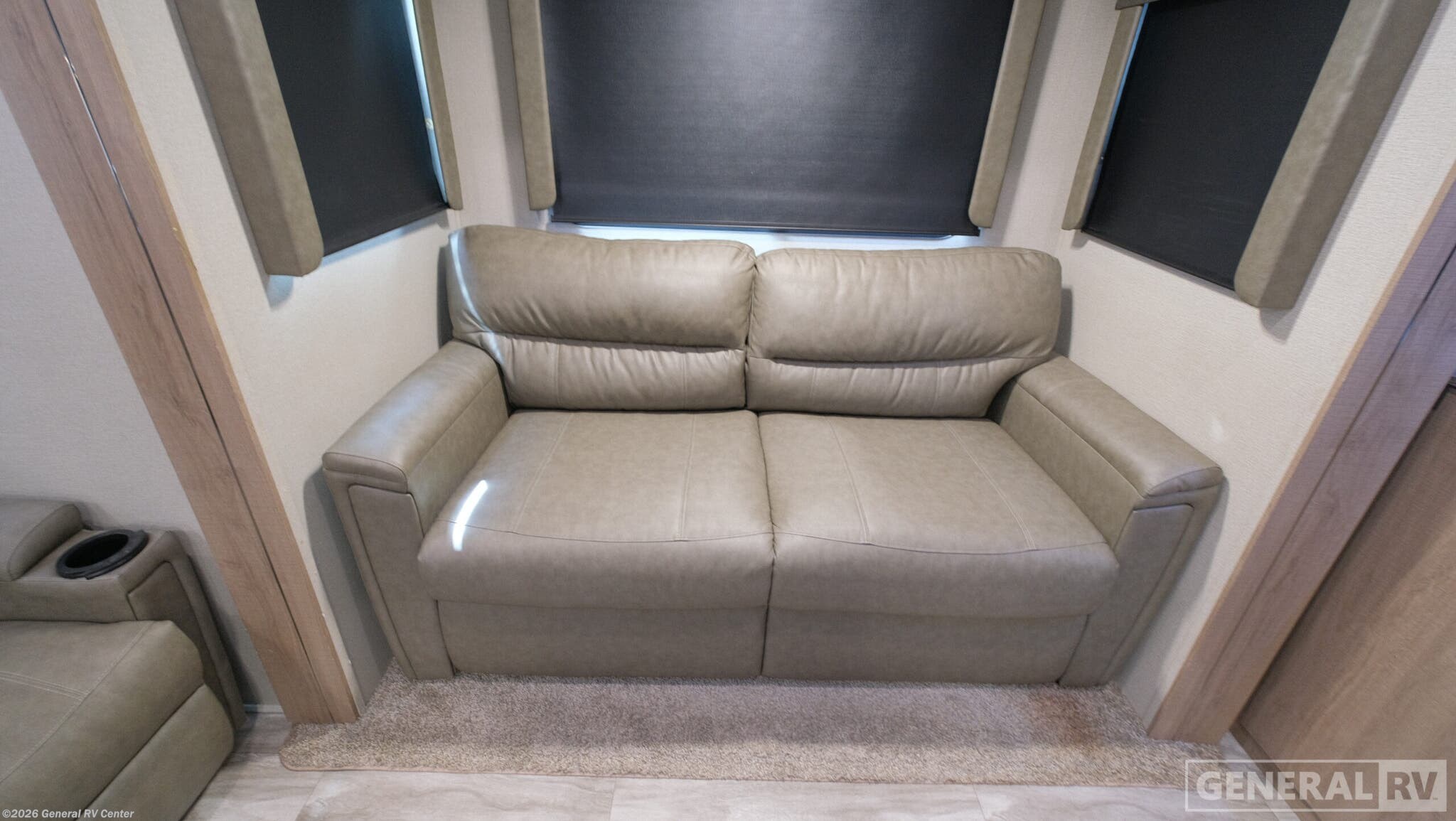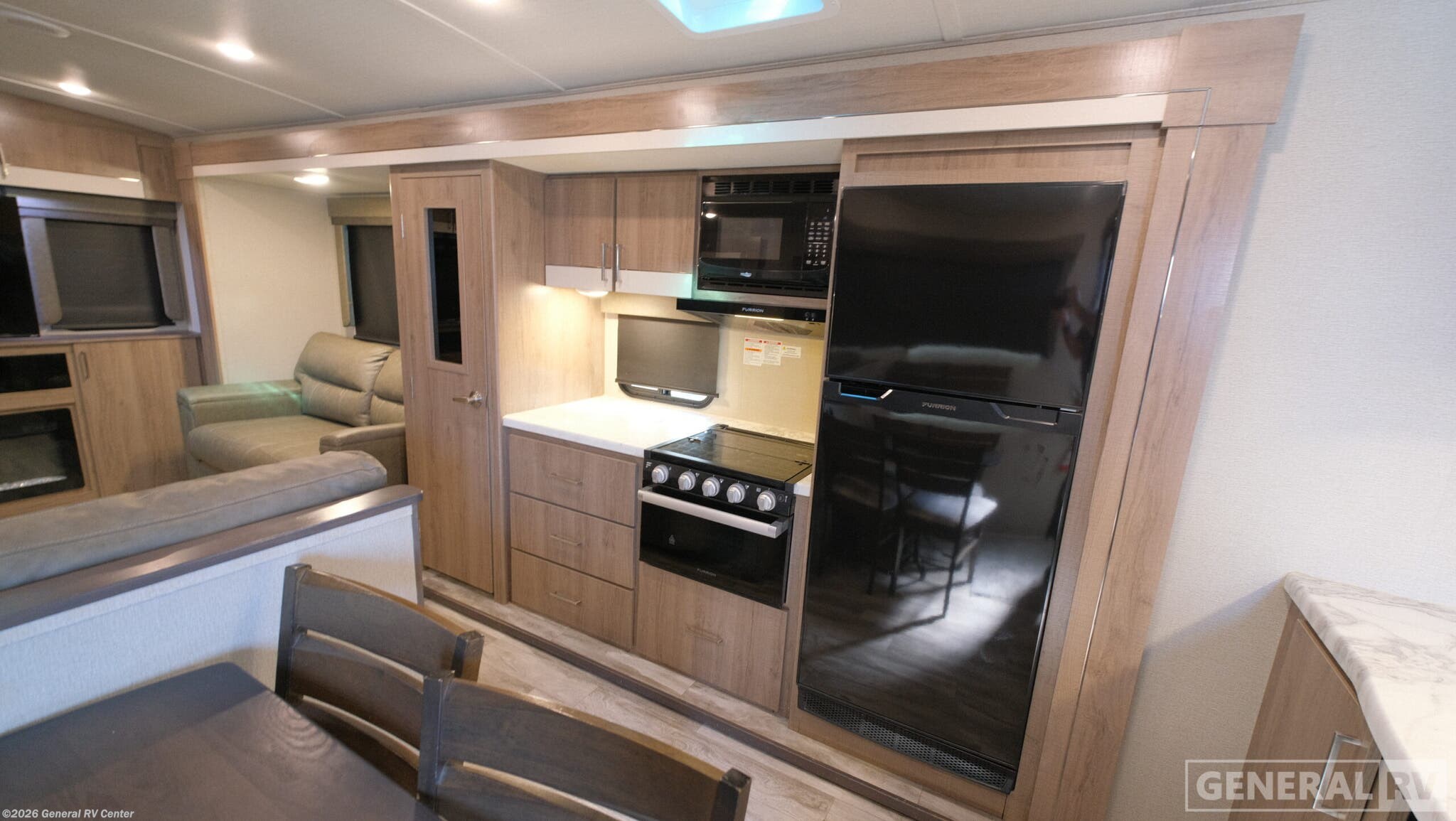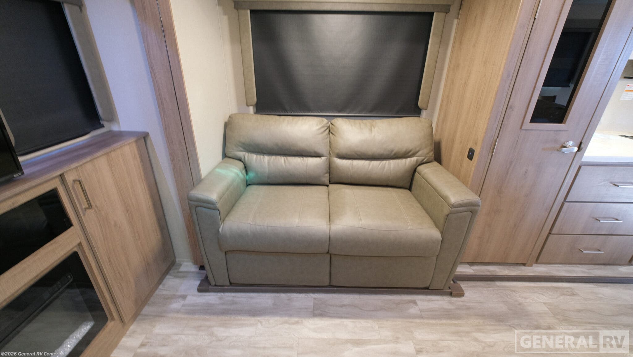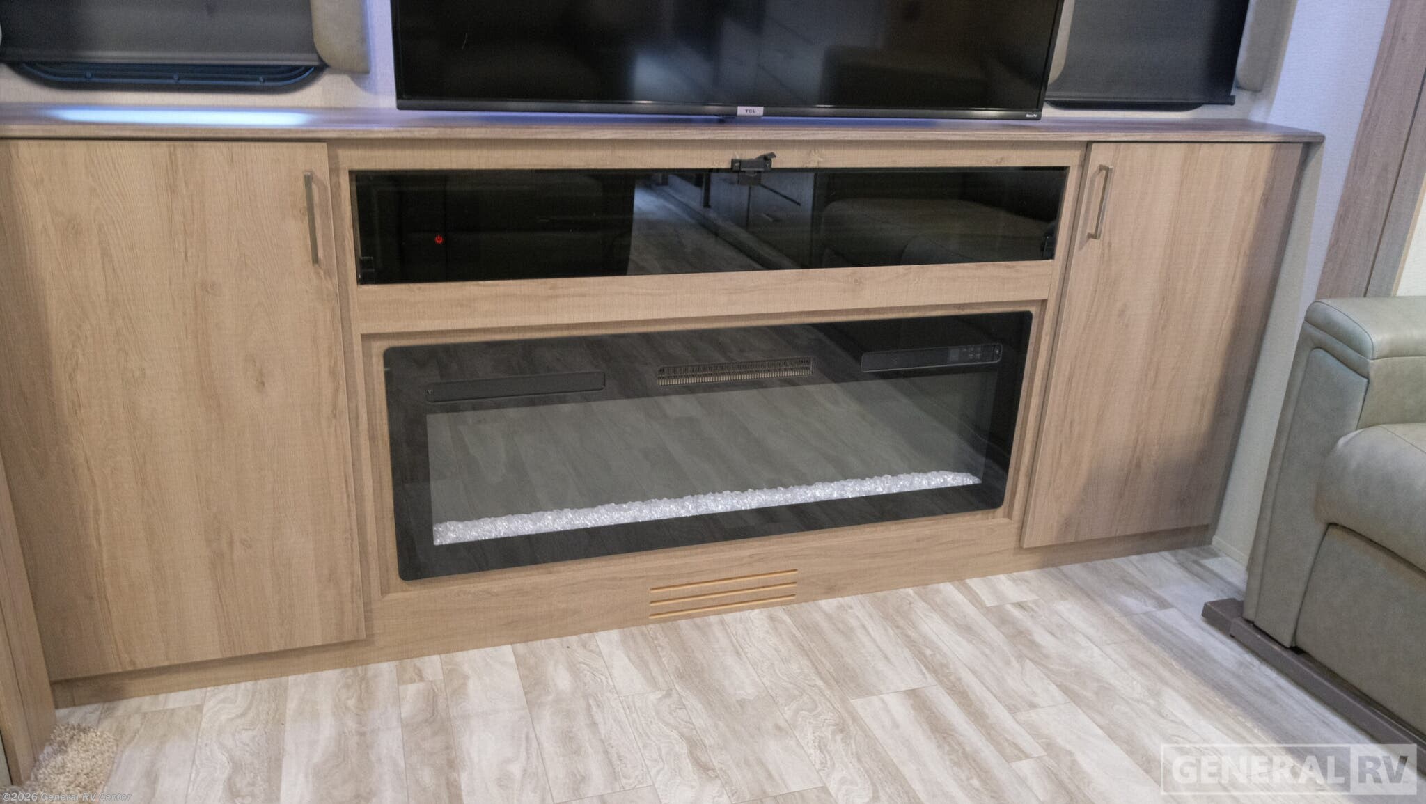 Experience the pinnacle of comfort and style with the 2022 Grand Design Imagine 3100RD. At nearly 36 feet in length, this RV is designed to make every journey an adventure in luxury. The rear living area is a haven of relaxation, featuring two tri-fold sofas and a theater seating arrangement, all centered around a cozy 48” fireplace. Imagine unwinding after a day of exploration, surrounded by warmth and comfort. The spaciousness is amplified by two slide-outs, offering plenty of room for family and friends to gather. The heart of this RV is its center kitchen, equipped with a mid-size refrigerator and a three-burner cooktop, perfect for whipping up delicious meals on the road. The free-standing dinette provides a charming spot for dining or game nights. When it's time to retire, the front bedroom with a 60 x 80 queen bed promises restful nights. The center bath, complete with a skylight shower, ensures you start each day refreshed. With ample storage, including a drop-frame pass-through compartment, and a 19-foot powered awning for outdoor enjoyment, the Imagine 3100RD is your ticket to unforgettable adventures. For more details, visit your nearest General RV Dealership.