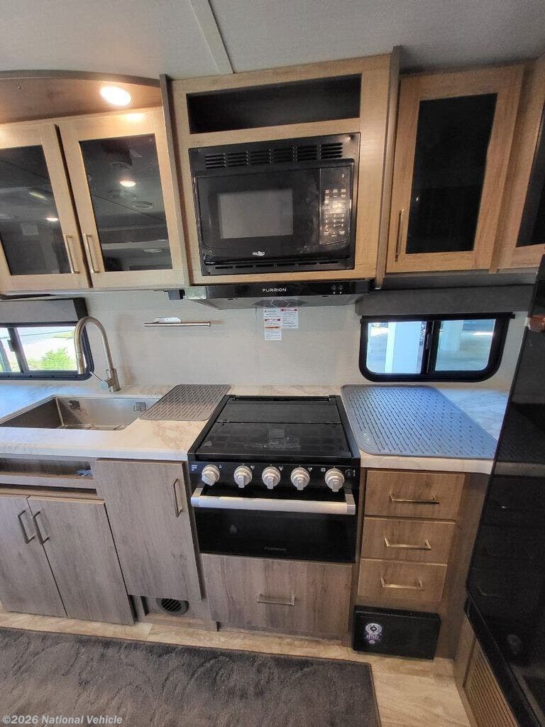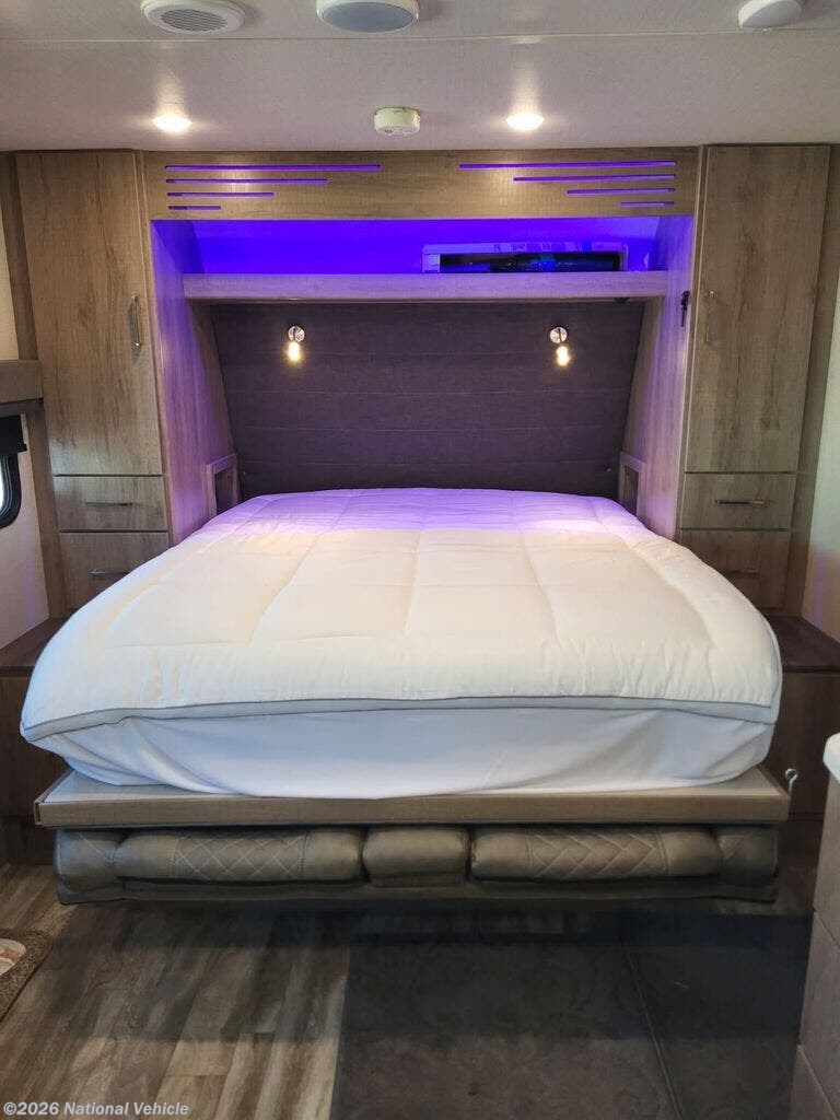 Designed with versatility in mind, the innovative Murphy bed system allows you to enjoy a spacious living area by day and a comfortable sleeping space by night. The upgraded pillow top queen mattress?used on only three trips?ensures a restful night?s sleep, while the thoughtfully arranged interior offers more usable counter space than many trailers twice its size.