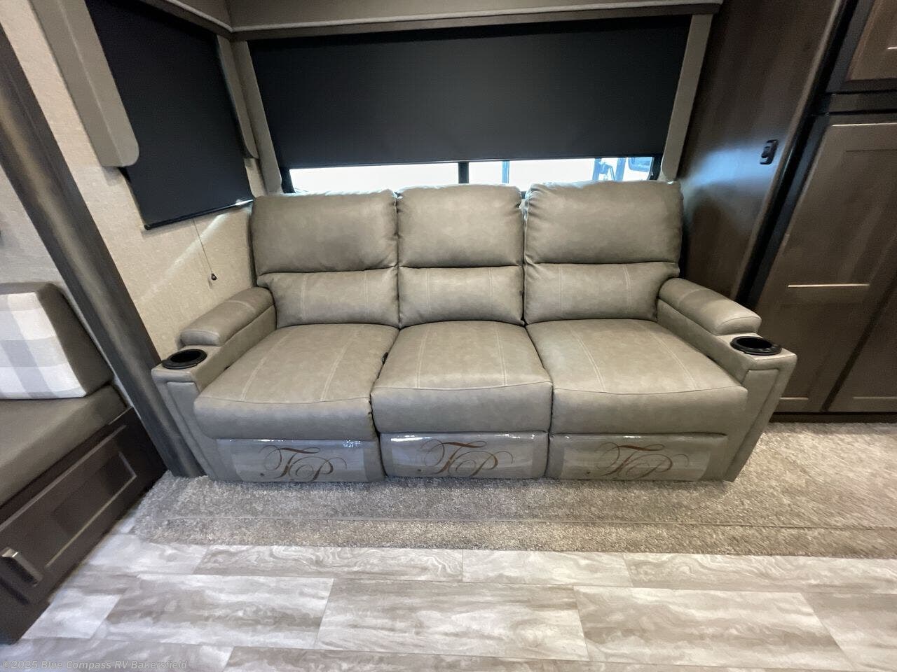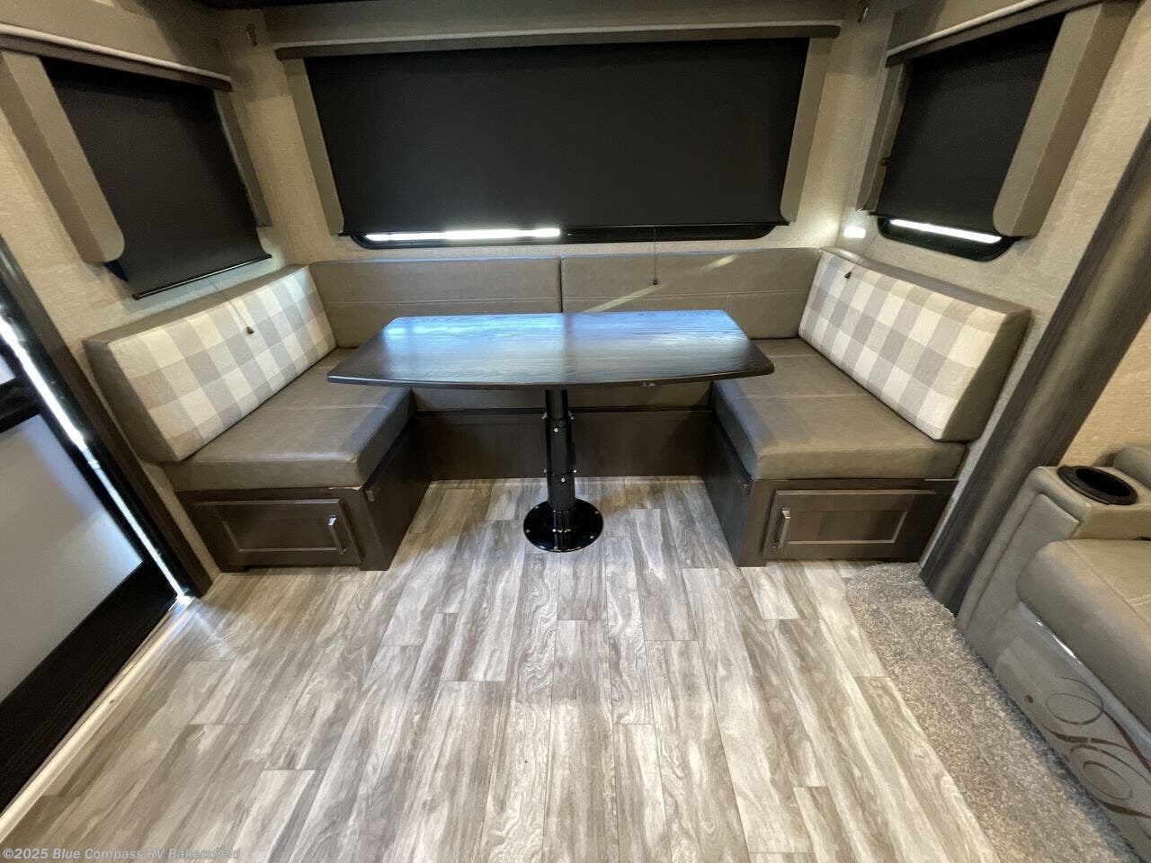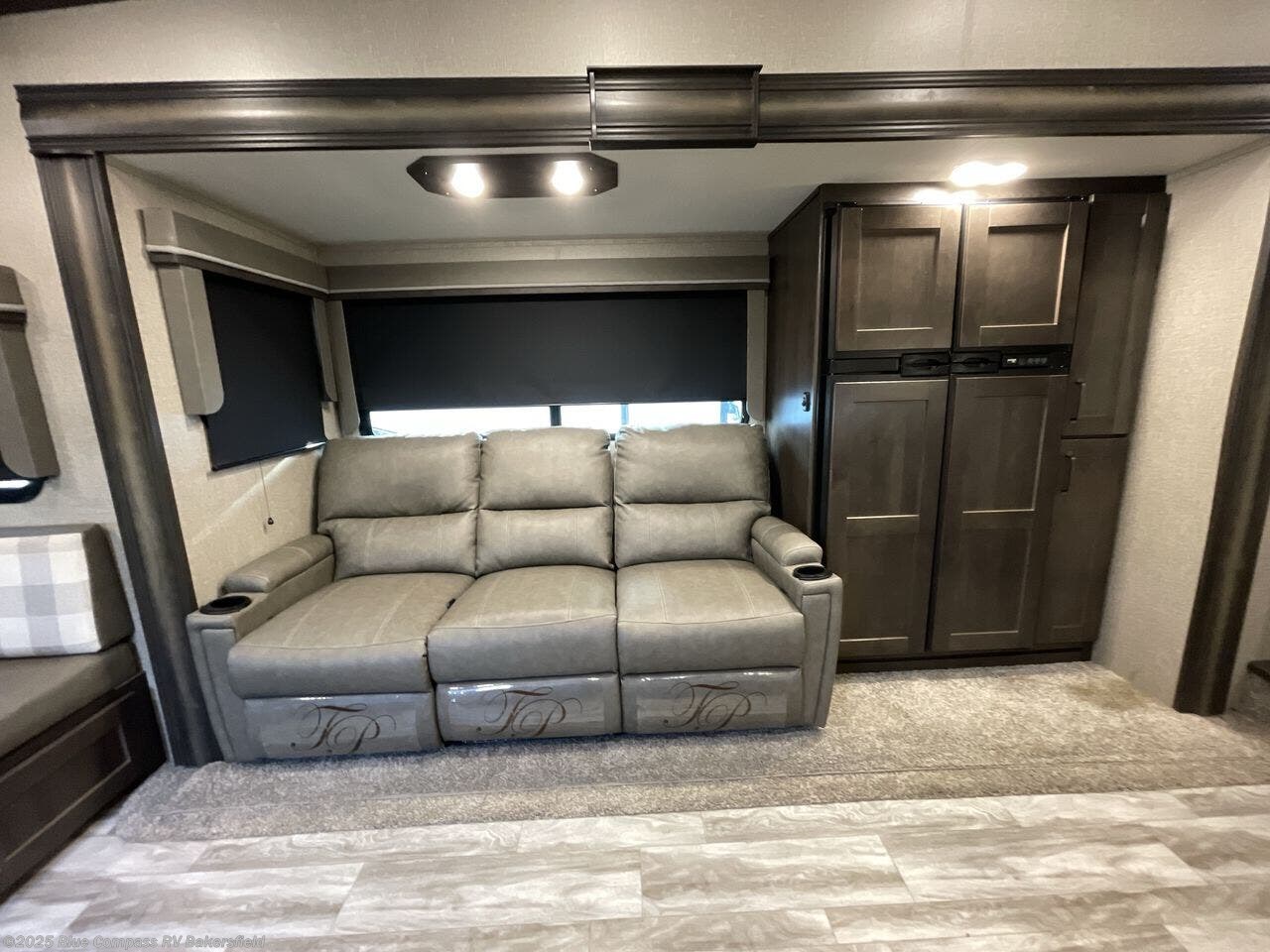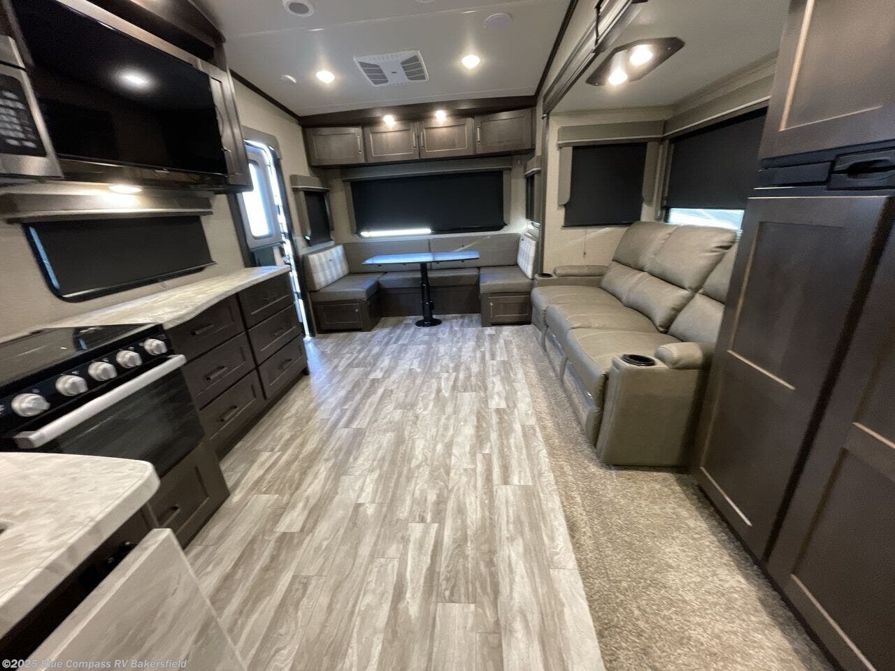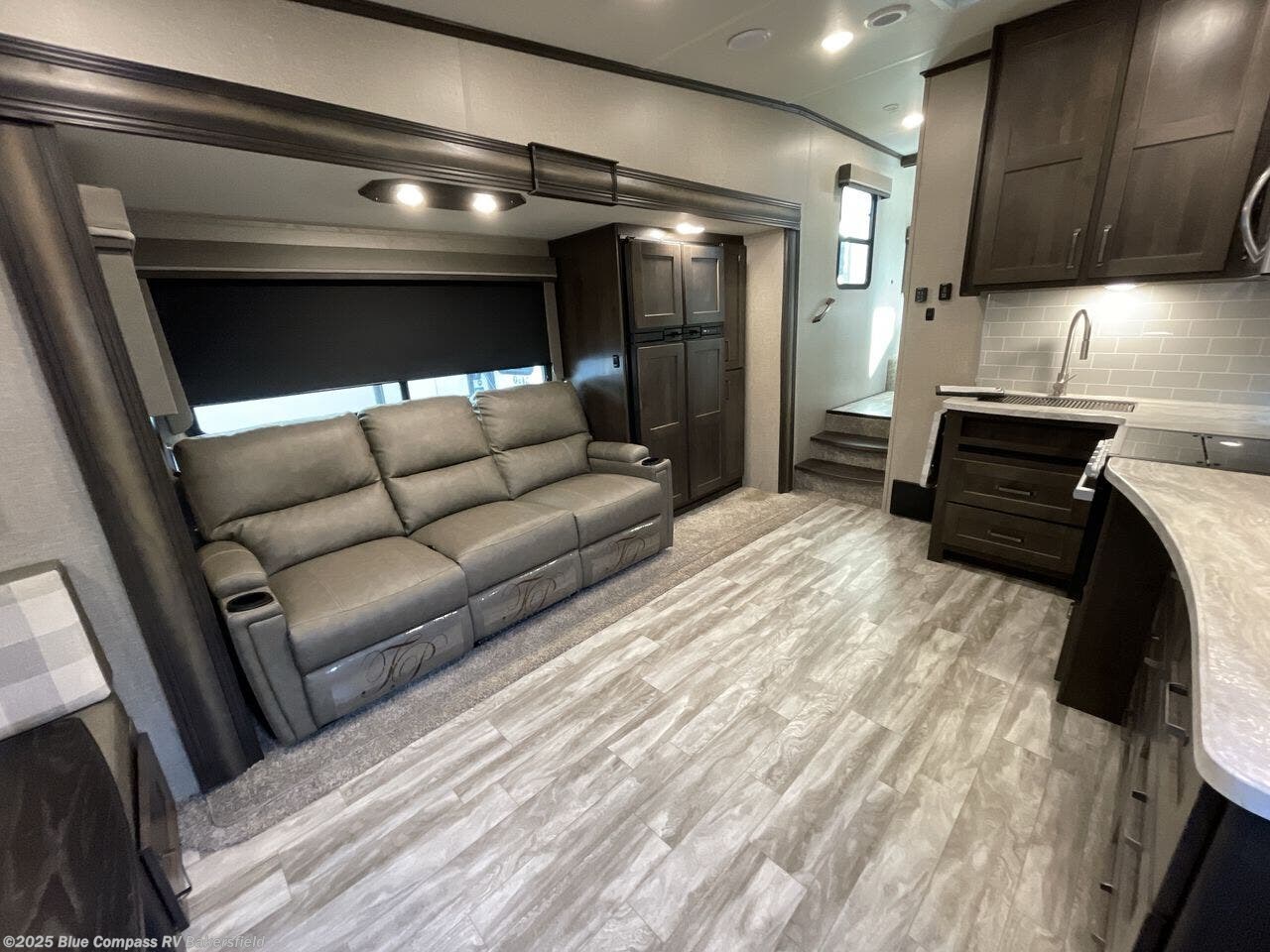 With any Reflection 150 Series fifth wheel by Grand Design, there is more available payload capacity and a broader range of half-ton trucks capable of towing this fifth wheel, and no slider hitch is needed thanks to the 90-degree turning radius which makes them short bed friendly and easier to tow. The mandatory Ultimate Power package provides a "One-Touch" automatic leveling system and a detachable power cord with LED light for easy setup, plus motion sensor pass-through lighting and entry lighting, and the Tire Linc TPMS will help you stay safe on the road. The interior offers residential luxury from the cabinetry and gunstock hardware plus the booth dinette to the residential-style window treatment. Make your refined decision today!