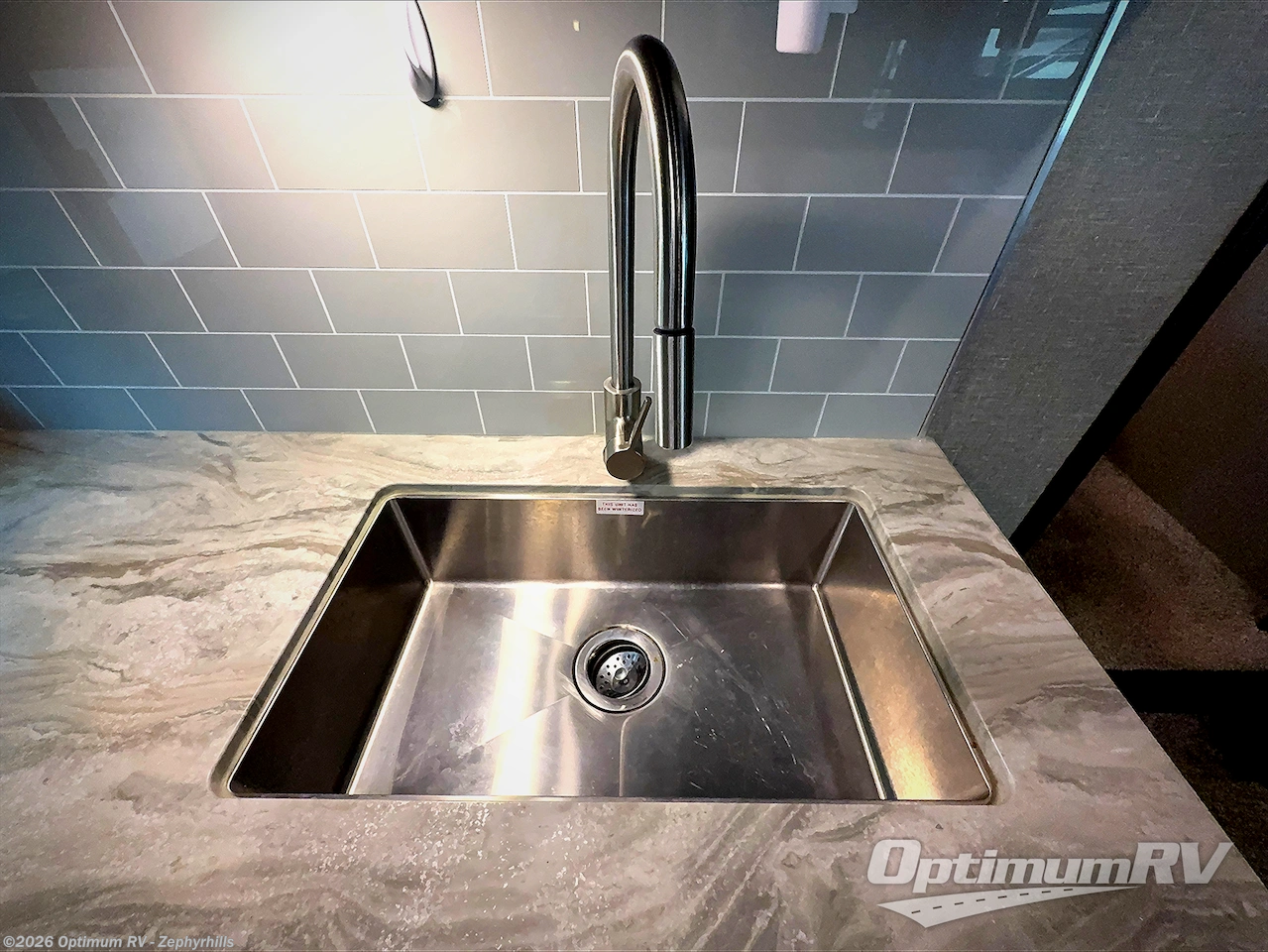 When you enjoy the outdoors as much as the indoors, this fifth wheel offers convenience and comfort throughout the inside and outside! From some of the exterior features such as the outside kitchen to make meals while visiting with other RVers, the spray port to wash off dirty shoes, the rear storage, the All-In-One docking station, the 20' electric awning and aluminum entry steps for safe entry to the interior features with a walk-around queen bed in the front private bedroom and the double-size bunks in the rear with step storage to the 40" LED HDTV in the main living and kitchen area. The tri-fold sofa and U-shaped dinette offer extra sleeping space as well, and the cook will love the L-shaped kitchen area inside with full amenities.