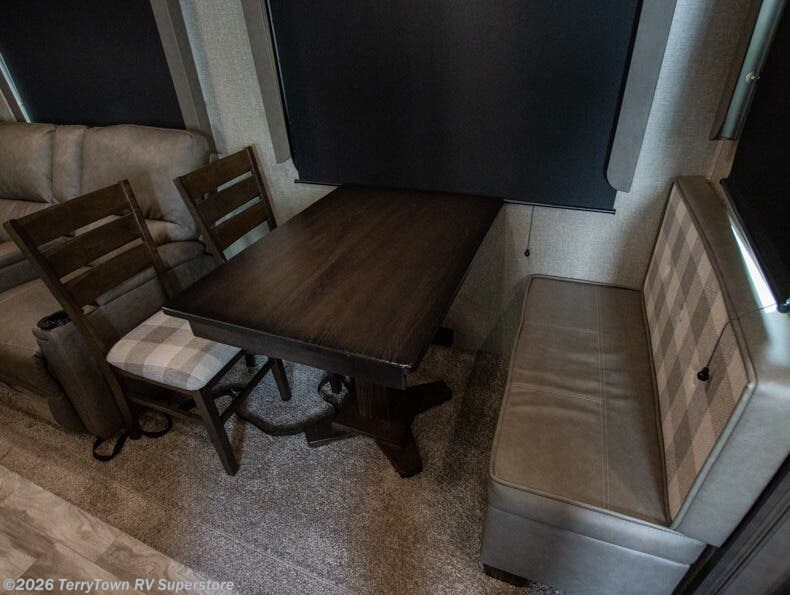With any Reflection 150 Series fifth wheel by Grand Design, there is more available payload capacity and a broader range of half-ton trucks capable of towing this fifth wheel, and no slider hitch is needed thanks to the 90-degree turning radius which makes them short bed friendly and easier to tow. The mandatory Ultimate Power package provides a "One-Touch" automatic leveling system and a detachable power cord with LED light for easy setup, plus motion sensor pass-through lighting and entry lighting, and the Tire Linc TPMS will help you stay safe on the road. The interior offers residential luxury from the cabinetry and gunstock hardware plus the booth dinette to the residential-style window treatment. Make your refined decision today!