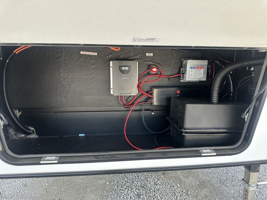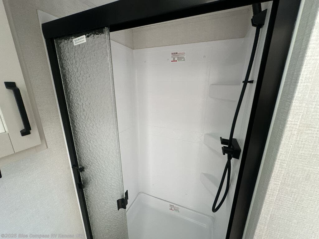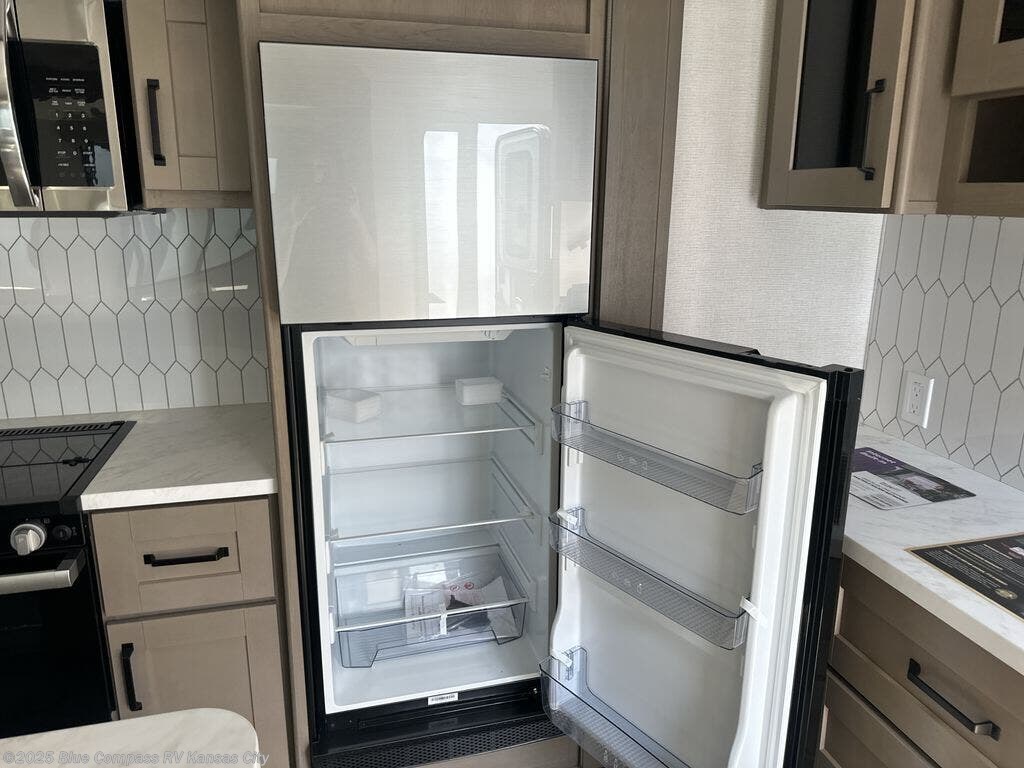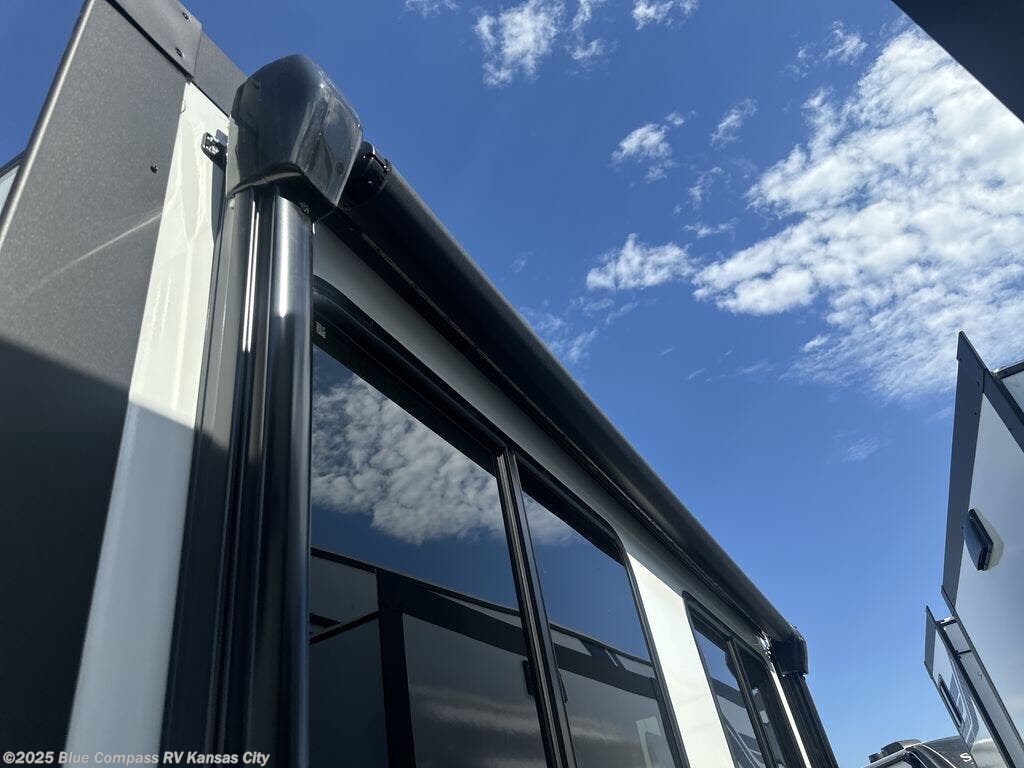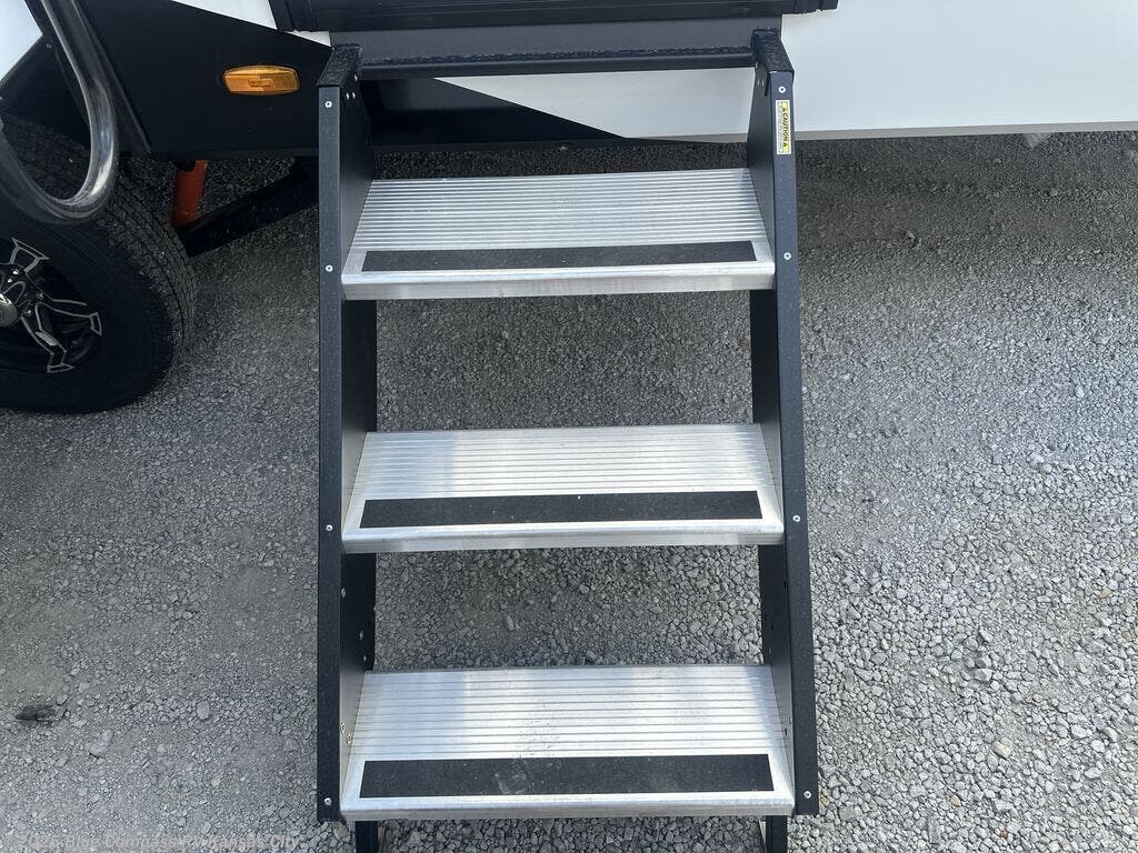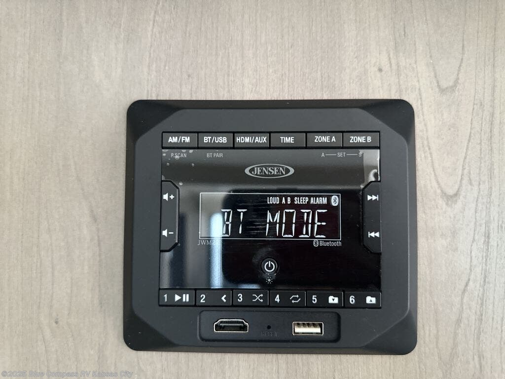 Get ready to enjoy everything the campgrounds and surrounding area has to offer when you are setup to camp in this fifth wheel! The two electric awnings offer protected areas creating outdoor living spaces, just grab your camping chairs from the unobstructed pass-through storage. And the interior offers a spacious living area and kitchen combination with two slide outs. You can sit on the tri-fold sofa or the dinette with an option for a free standing dinette. The hutch and kitchen island offer counter space to prepare and serve meals, and there is a large pantry for goodies. The 40" LED HDTV with fireplace below provides entertainment before bedtime or on a rainy day. And the front bedroom offers privacy, a walk-around queen bed, storage, and it is next to the full bathroom which is just a few steps down the hallway.