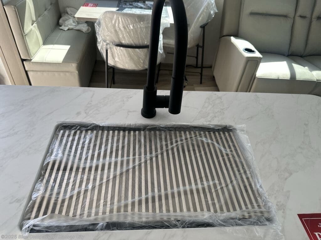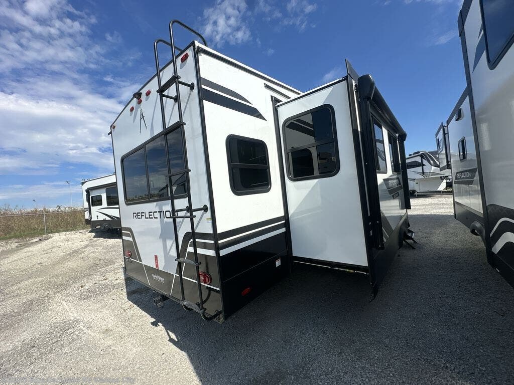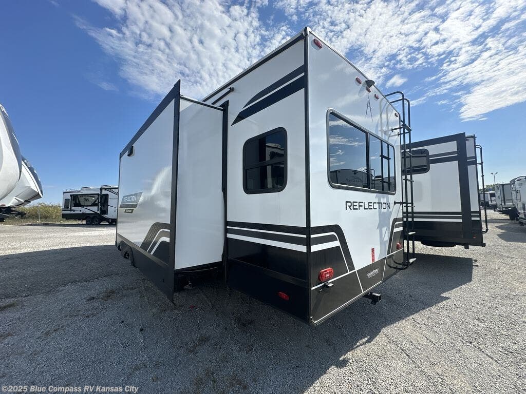 With any Reflection 150 Series fifth wheel by Grand Design, there is more available payload capacity and a broader range of half-ton trucks capable of towing this fifth wheel, and no slider hitch is needed thanks to the 90-degree turning radius which makes them short bed friendly and easier to tow. The mandatory Ultimate Power package provides a "One-Touch" automatic leveling system and a detachable power cord with LED light for easy setup, plus motion sensor pass-through lighting and entry lighting, and the Tire Linc TPMS will help you stay safe on the road. The interior offers residential luxury from the cabinetry and gunstock hardware plus the booth dinette to the residential-style window treatment. Make your refined decision today!