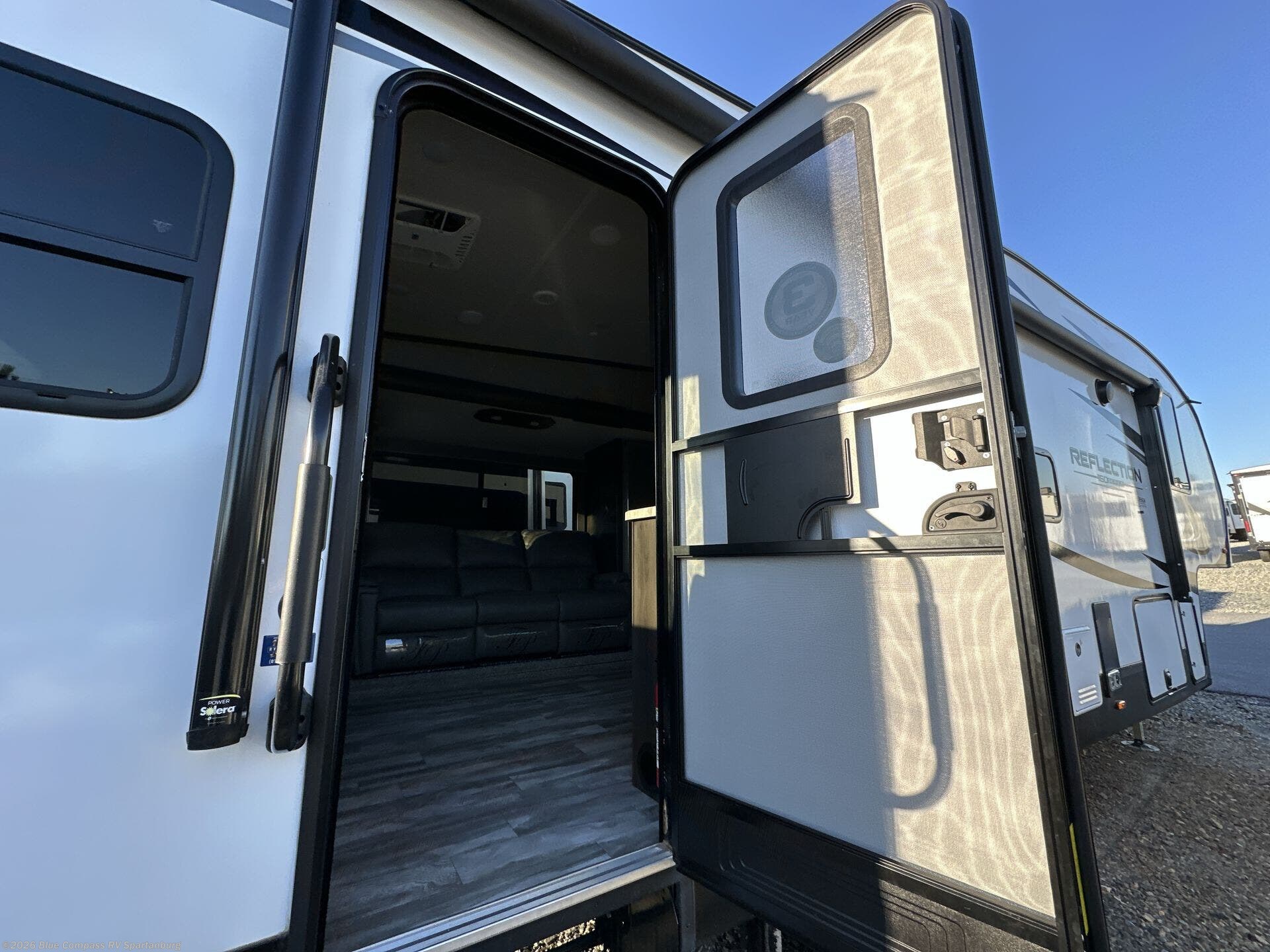 Feel right at home in this Reflection 150 Series with a private bedroom that includes a walk-around queen bed with storage on each side, windows, and a space savings sliding door. The full bathroom offers a walk-in shower, storage for your linens and a sliding door for easy access. When you get hungry, the cook will have an L-shaped kitchen area to make meals, plus full amenities including a 30" microwave, a flip-up counter extension, a pantry for your dry goods and a 16 cu. ft. refrigerator to store lots of food and cold beverages. You can dine at the rear U-shaped dinette lounge and enjoy the view out of all the windows or outside under the 18' electric awning. And the theatre seating will be a nice place to relax and watch the 40" LED HDTV.