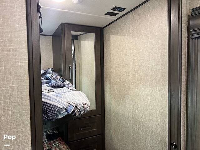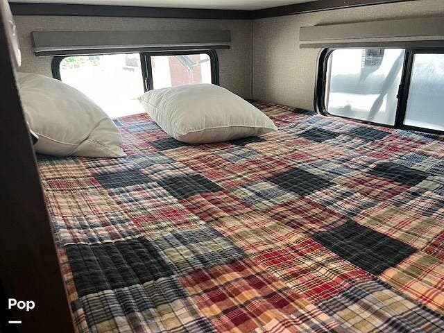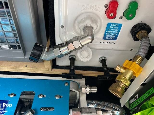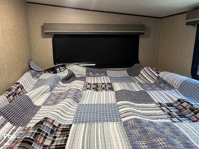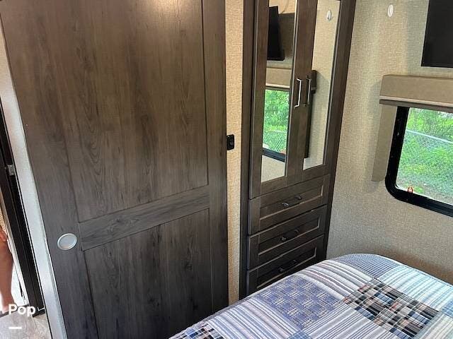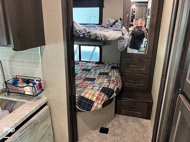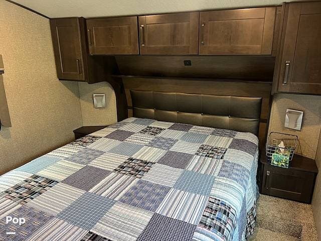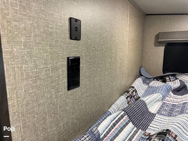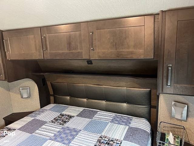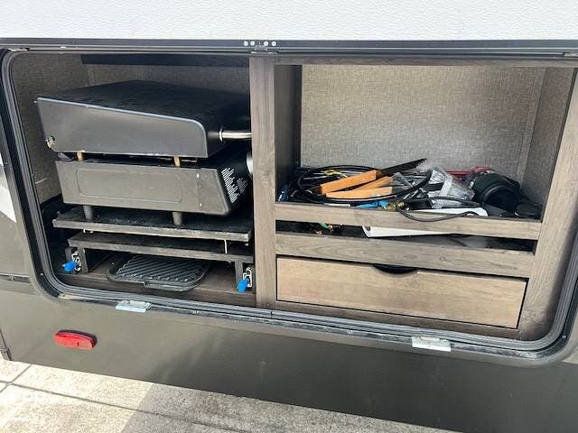 There are numerous onboard upgrades, including a tankless water heater, a TPMS monitoring system for your tires, Winegard 360 5G internet-ready capabilities, and an upgraded true Queen mattress in the primary bedroom.