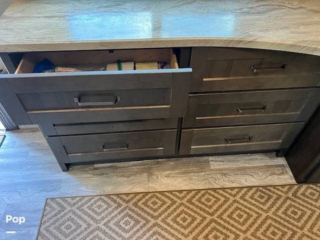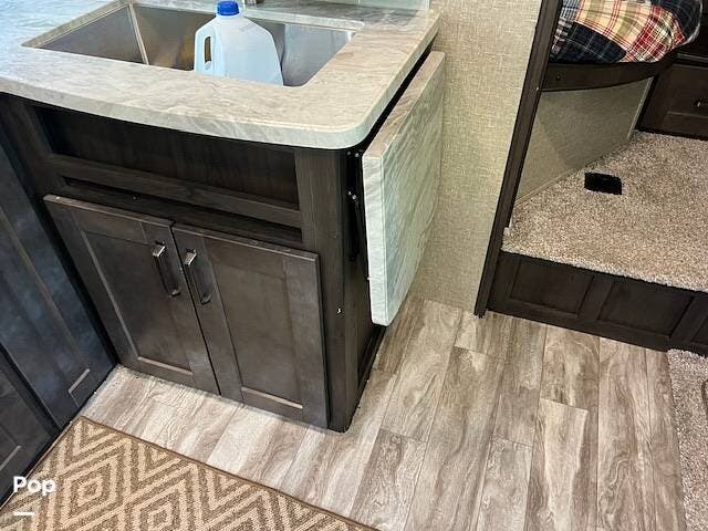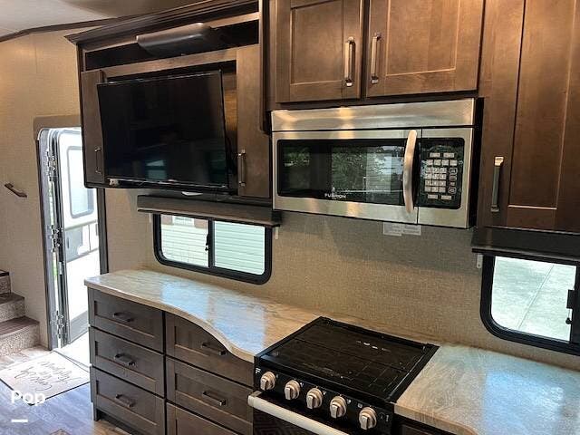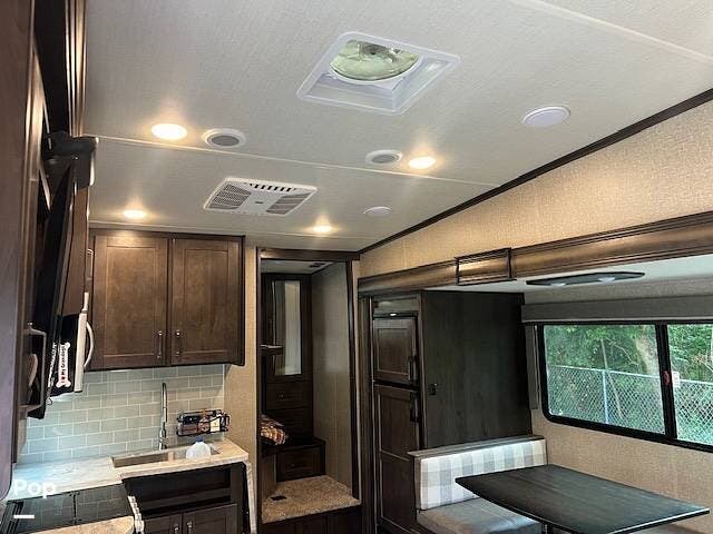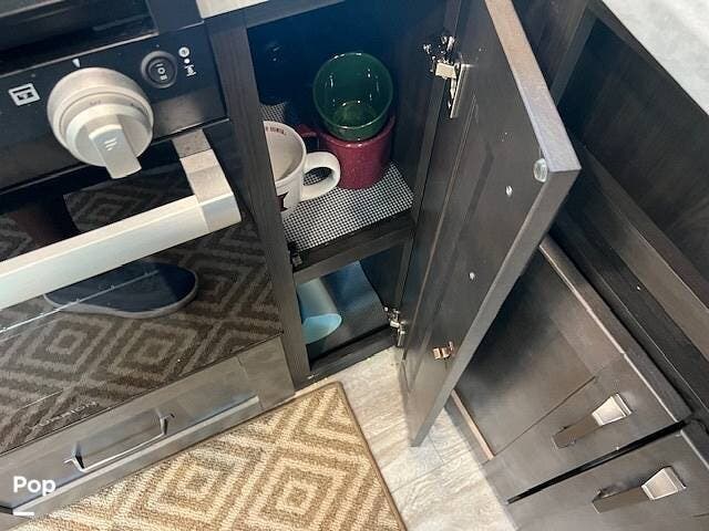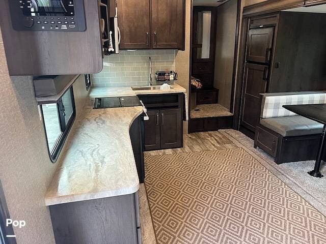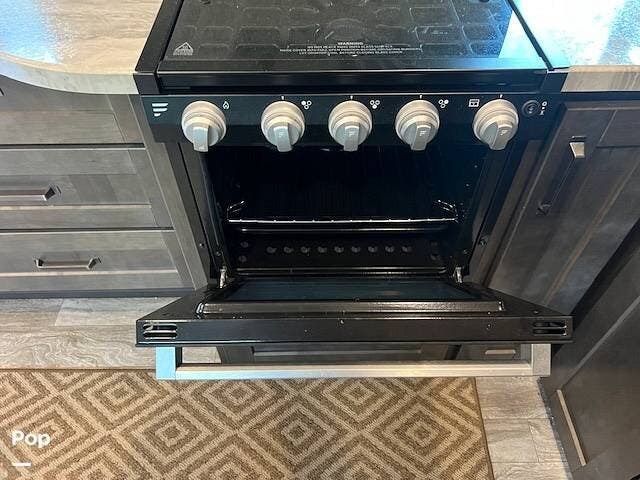 The large slide-out really opens up the main living area, providing ample space to cook, dine, and relax.