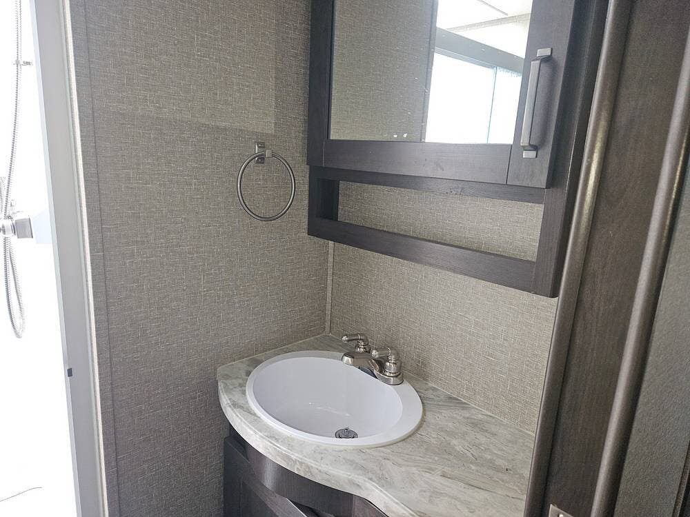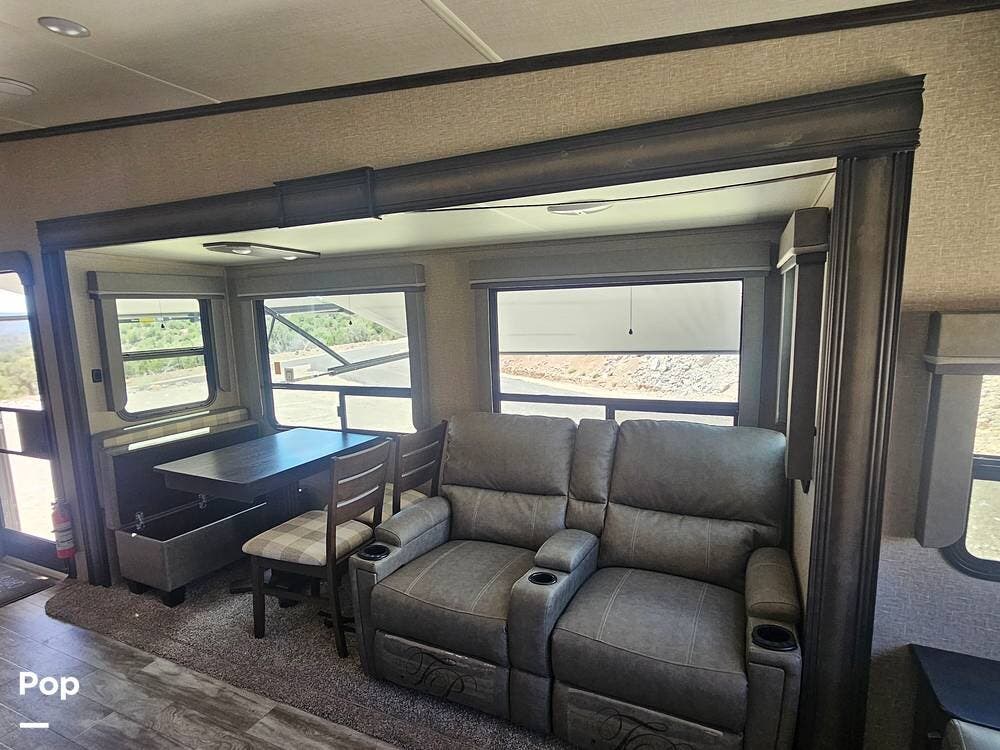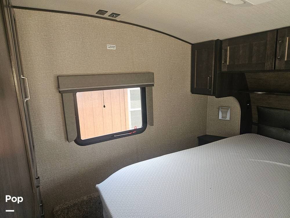 Some upgrades include a 1/2 Ton Towable/Short-Bed Truck Towable (150 Series)-90-degree Turning Radius Capability Swivel Pin Box, 165w Solar Panel-260amphr LiFePo Battery-50amp Charge Controller/Inverter, Winegard 360+antenna WIFI with Router, Smartphone Control of your RV-USB Charging Stations, Auto Level Jacks-Insight Rear View Camera, Tire Pressure Monitoring System-Universal Docking Station, Tankless On Demand Water Heater, Electric Fireplace, 4 Seasons Heat/Air Conditioning, Tank Heaters, LP Quick Connect-Unobstructed Pass-Through Storage