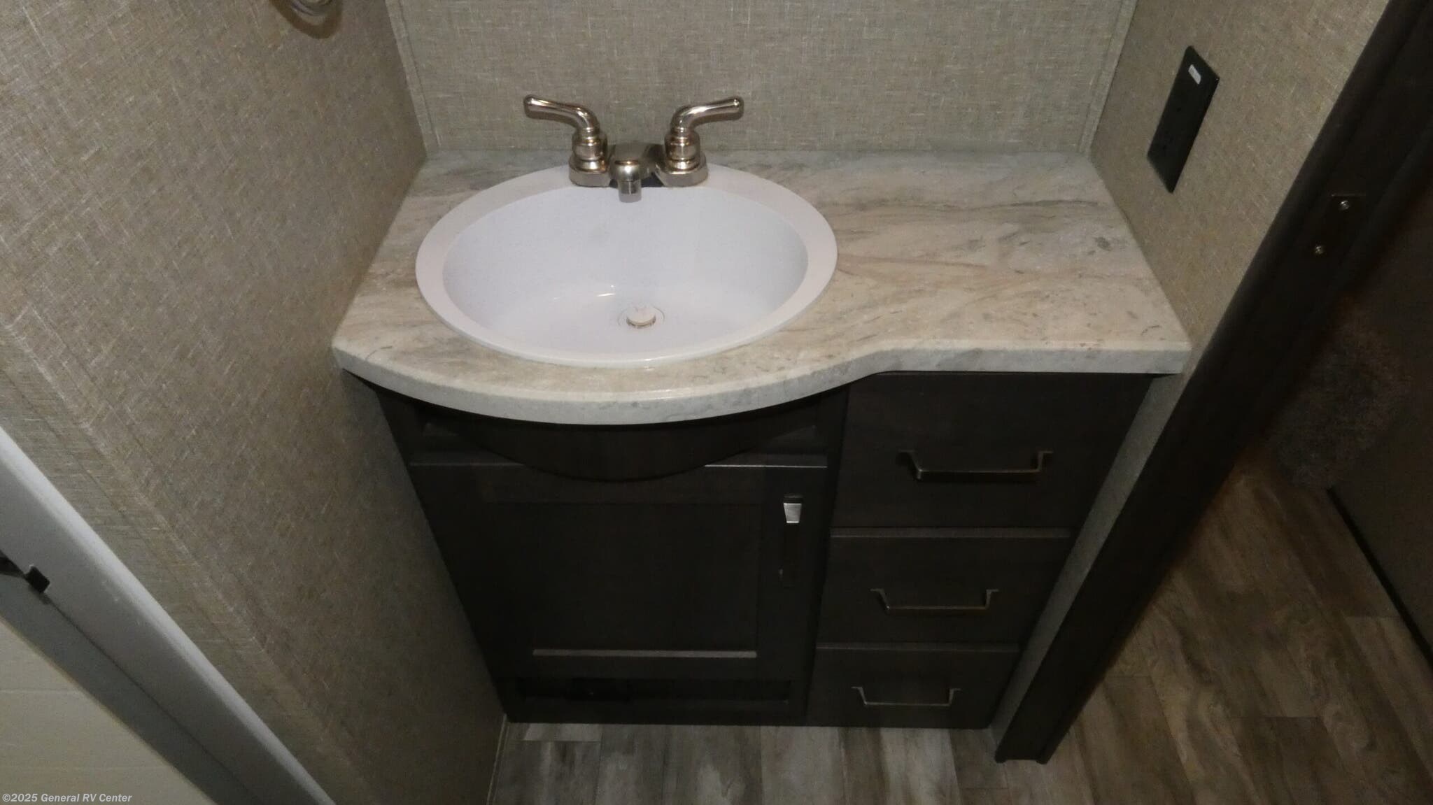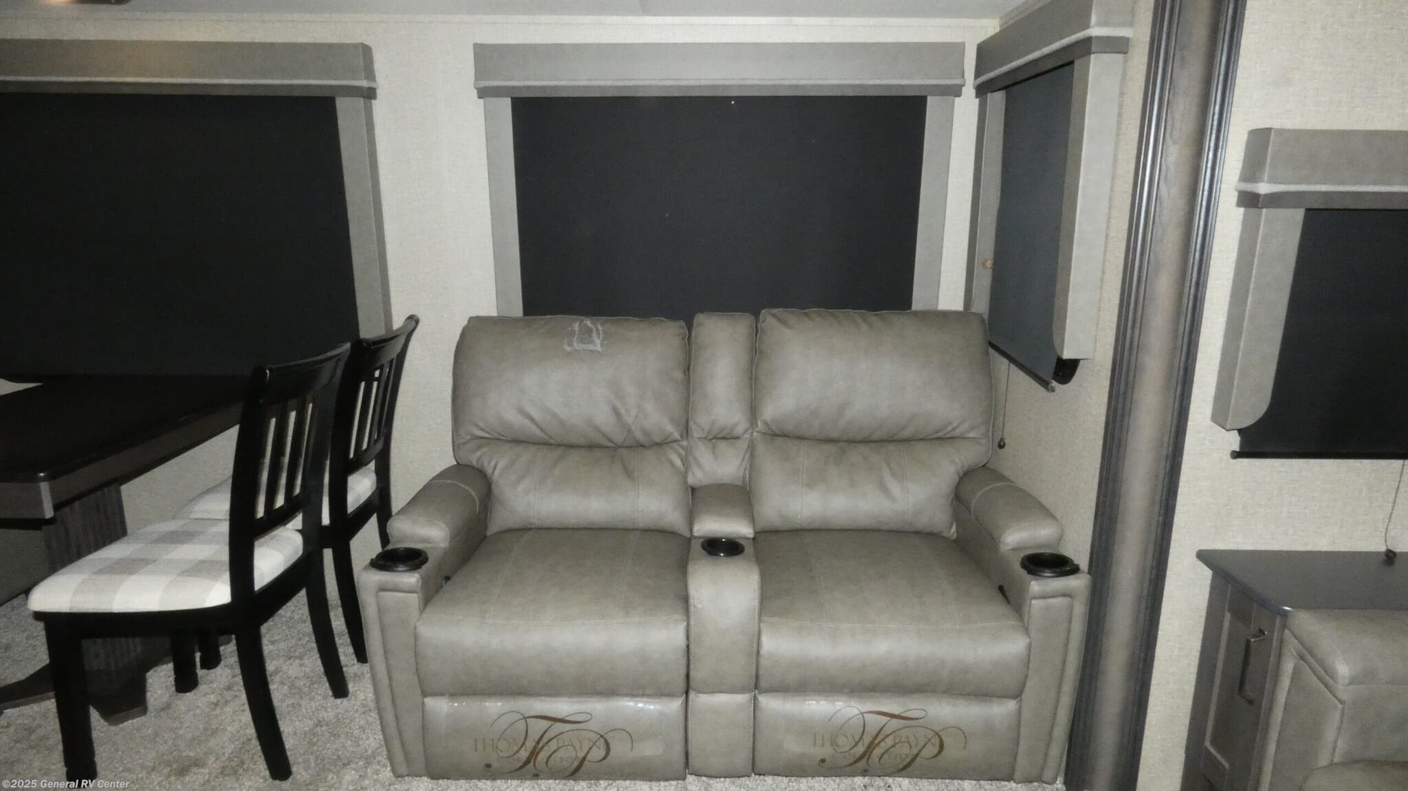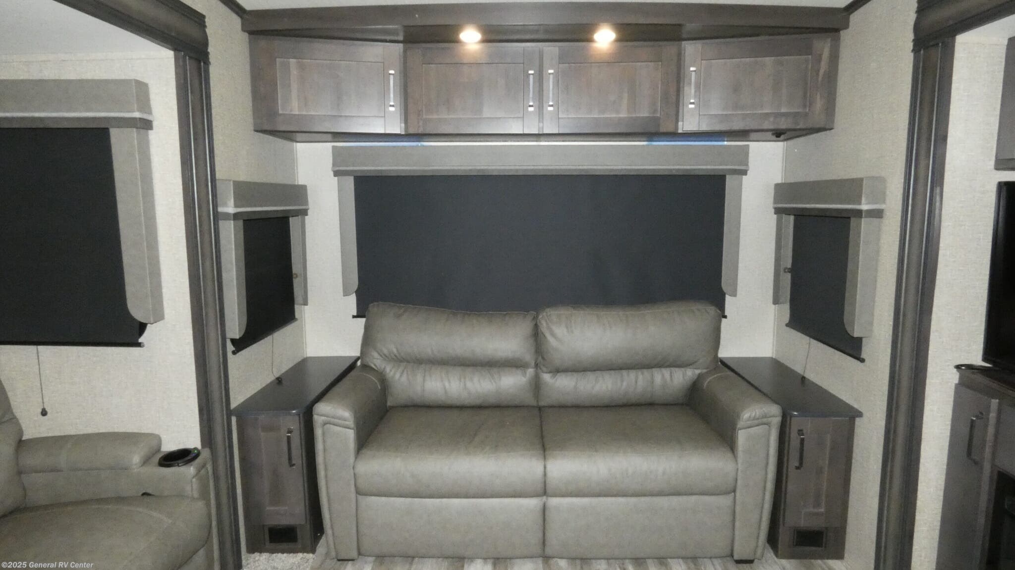 Step into the world of comfort and adventure with the 2022 Grand Design Reflection 150 Series 295RL. This fifth wheel is designed to elevate your travel experience with its thoughtful layout and luxurious features. As you enter, you're greeted by a spacious rear living area, complete with theater seating and a tri-fold sofa, perfect for relaxing after a day of exploration. The entertainment center, featuring a 40" TV and fireplace, creates a cozy ambiance for those cooler evenings. The center kitchen is a culinary delight, equipped with a three-burner cooktop, 8 cu. ft. refrigerator, and ample pantry space, ensuring you have everything you need to whip up your favorite meals on the road. The Reflection 150 Series 295RL offers a restful retreat with its front bedroom, boasting a 60 x 80 queen bed surrounded by overhead cabinets for additional storage. The center bath, featuring a shower with a skylight, provides a refreshing start to your day. With sleeping accommodations for up to six, this RV is perfect for family adventures or a getaway with friends. The dual awnings extend your living space outdoors, creating the ideal setting for enjoying the great outdoors. With its impressive water capacities and robust construction, this RV is ready to take you wherever your heart desires. For more details and to experience this model in person, visit your nearest General RV dealership.