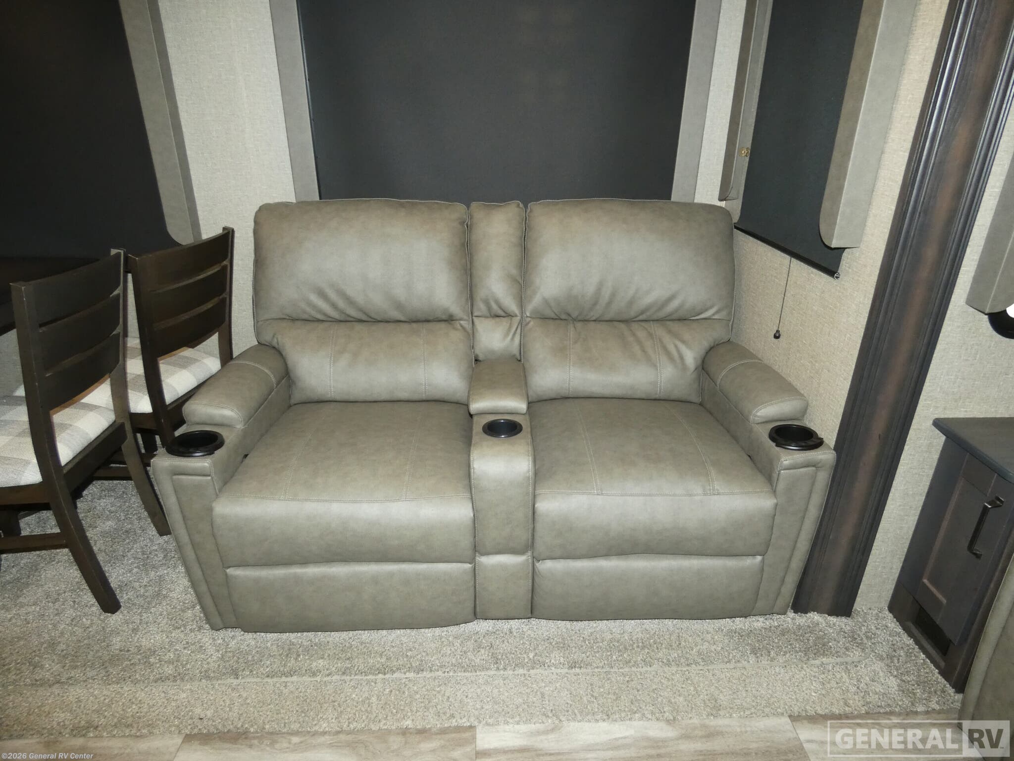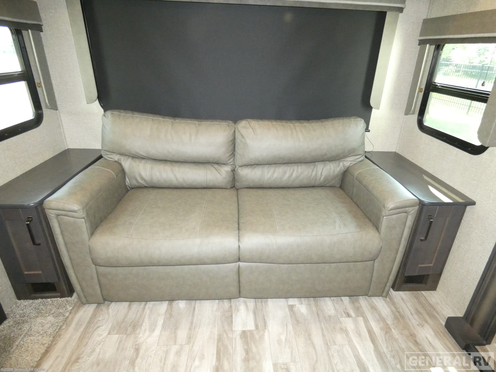 Step into the world of comfort and adventure with the 2022 Grand Design Reflection 150 Series 295RL. This fifth wheel is designed to elevate your travel experience with its thoughtful layout and luxurious features. As you enter, you're greeted by a spacious rear living area, complete with theater seating and a tri-fold sofa, perfect for relaxing after a day of exploration. The entertainment center, featuring a 40" TV and fireplace, creates a cozy ambiance for those cooler evenings. The center kitchen is a culinary delight, equipped with a three-burner cooktop, 8 cu. ft. refrigerator, and ample pantry space, ensuring you have everything you need to whip up your favorite meals on the road. The Reflection 150 Series 295RL offers a restful retreat with its front bedroom, boasting a 60 x 80 queen bed surrounded by overhead cabinets for additional storage. The center bath, featuring a shower with a skylight, provides a refreshing start to your day. With sleeping accommodations for up to six, this RV is perfect for family adventures or a getaway with friends. The dual awnings extend your living space outdoors, creating the ideal setting for enjoying the great outdoors. With its impressive water capacities and robust construction, this RV is ready to take you wherever your heart desires. For more details and to experience this model in person, visit your nearest General RV dealership.
