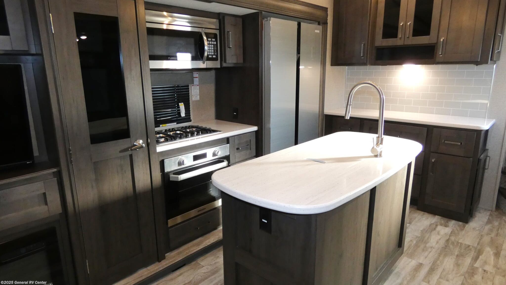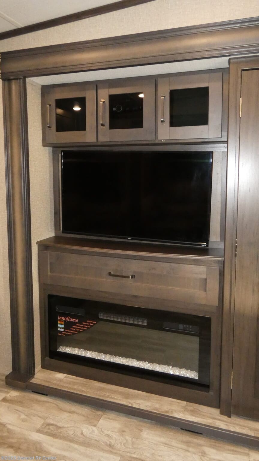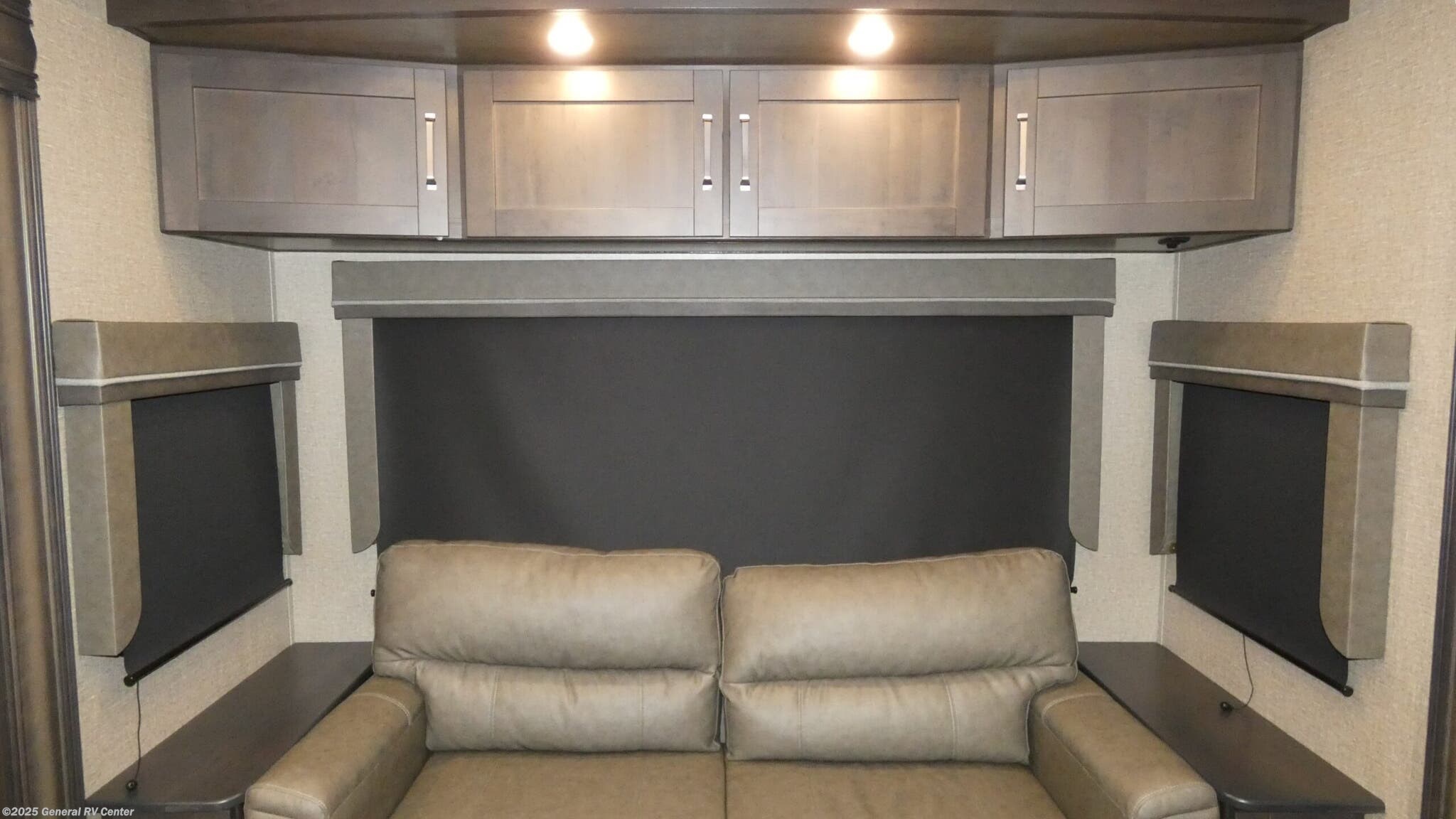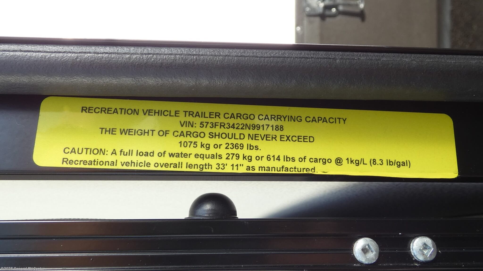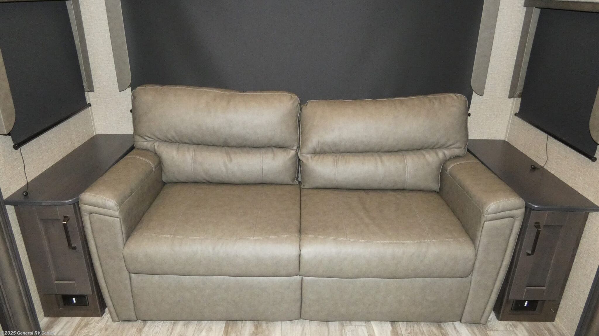 Step into the 2022 Grand Design Reflection 303RLS, where comfort and style meet in perfect harmony. This fifth wheel is designed for those who crave both adventure and luxury. With its spacious floorplan, it comfortably sleeps six, featuring a cozy queen bed and two convertible sleeping areas. The rear living space is a true highlight, boasting a tri-fold sofa and theater seating that invite you to unwind in front of the entertainment center, complete with a 40" TV and fireplace. The center kitchen, equipped with a full-size refrigerator and a three-burner cooktop, makes meal prep a breeze, while the free-standing dinette offers an elegant spot for dining. The Reflection 303RLS doesn't just stop at comfort; it excels in practicality. With generous storage options, including overhead cabinets and an unobstructed pass-through compartment, you'll have plenty of space for all your travel essentials. The center bath features a radius shower with a skylight, providing a refreshing retreat. Outside, two powered retractable awnings extend your living space, perfect for enjoying the great outdoors in style. With a robust GVWR and ample cargo capacity, this RV is ready to hit the road whenever you are. For more details and to experience this remarkable RV firsthand, visit your nearest General RV dealership.
