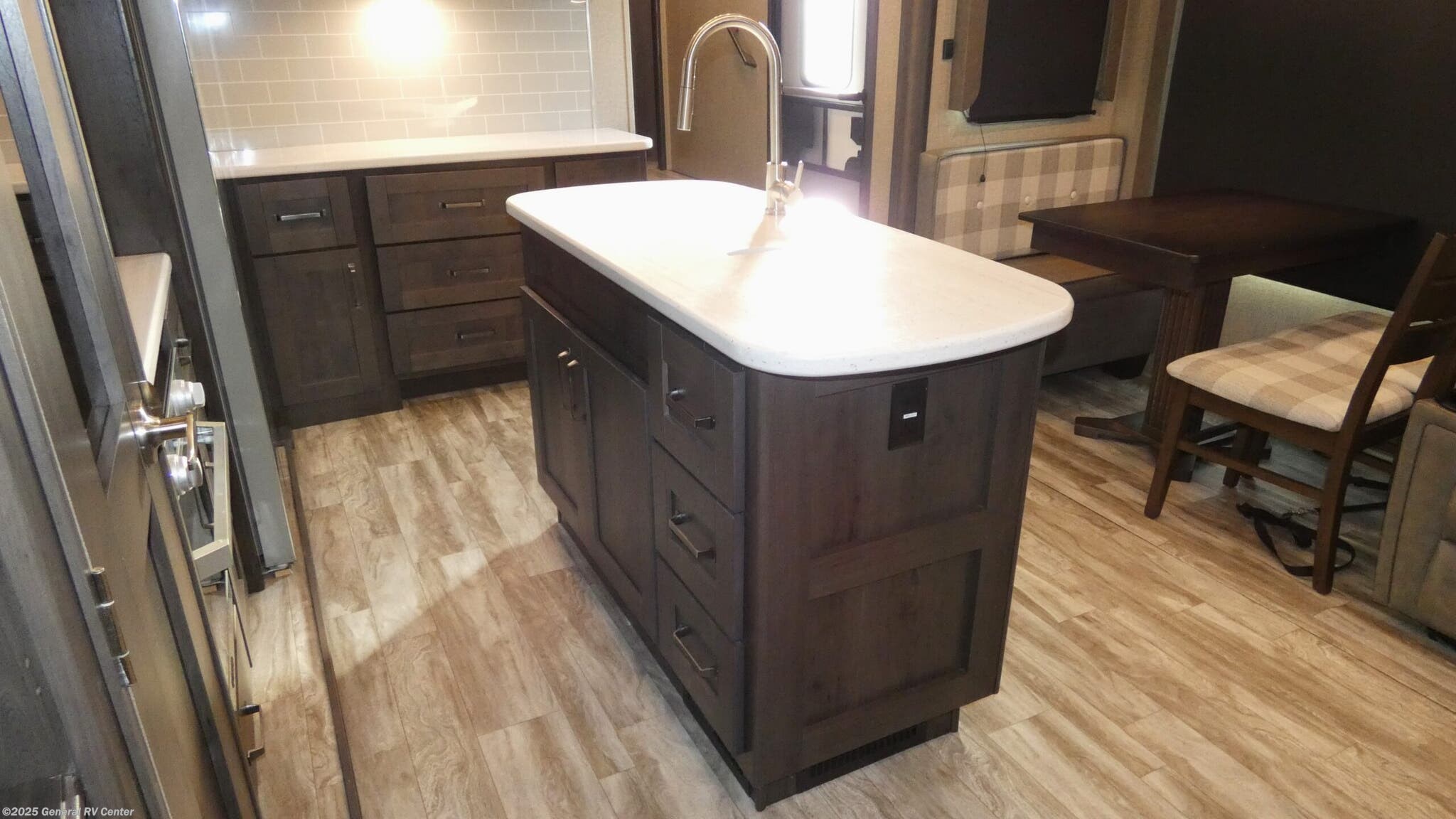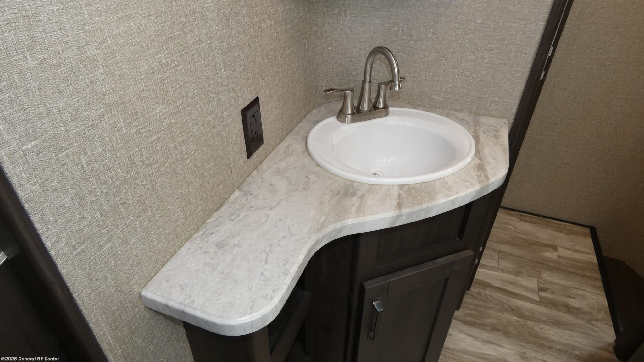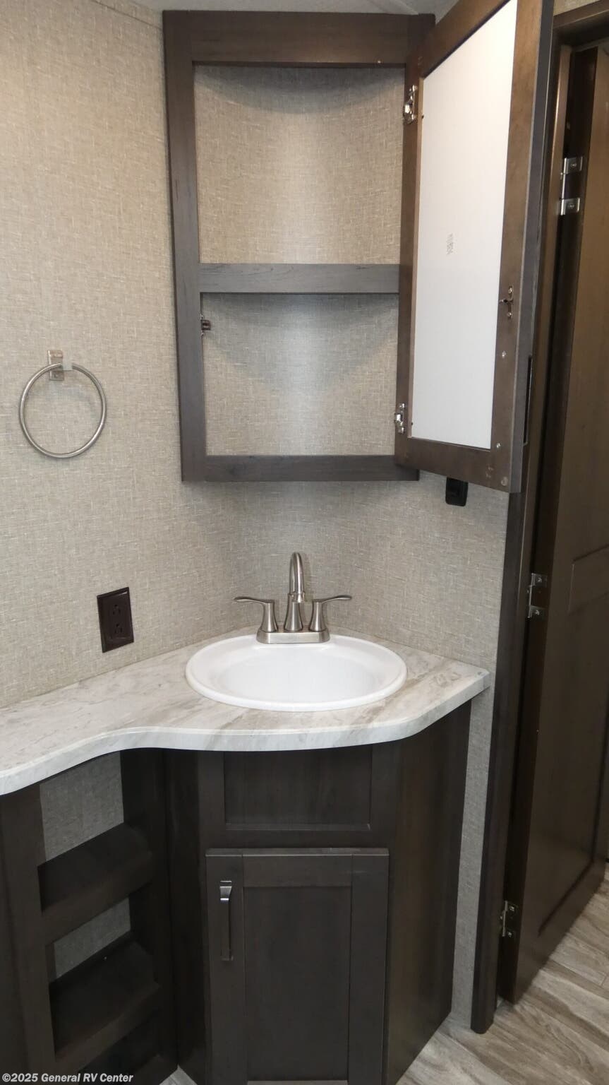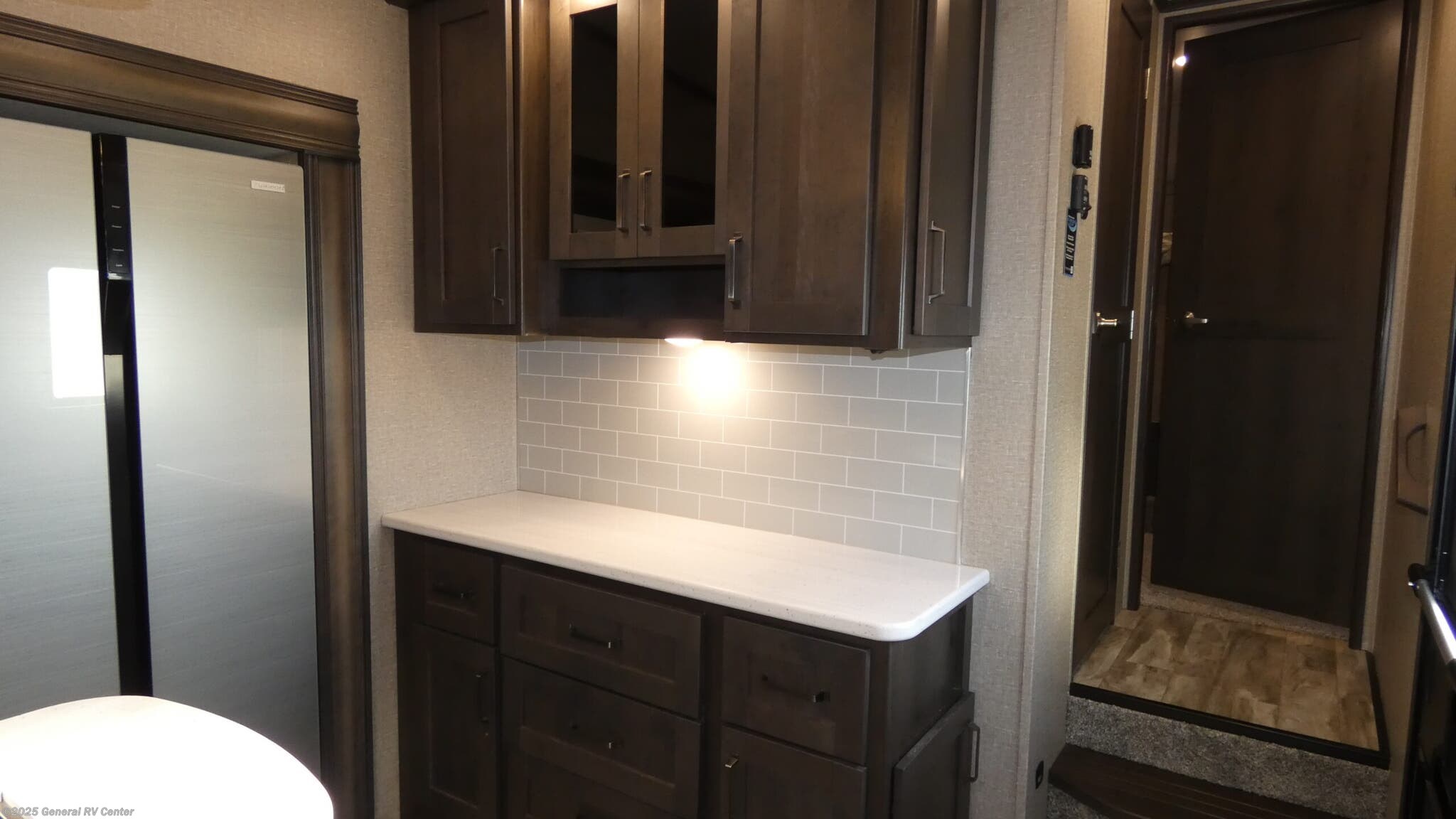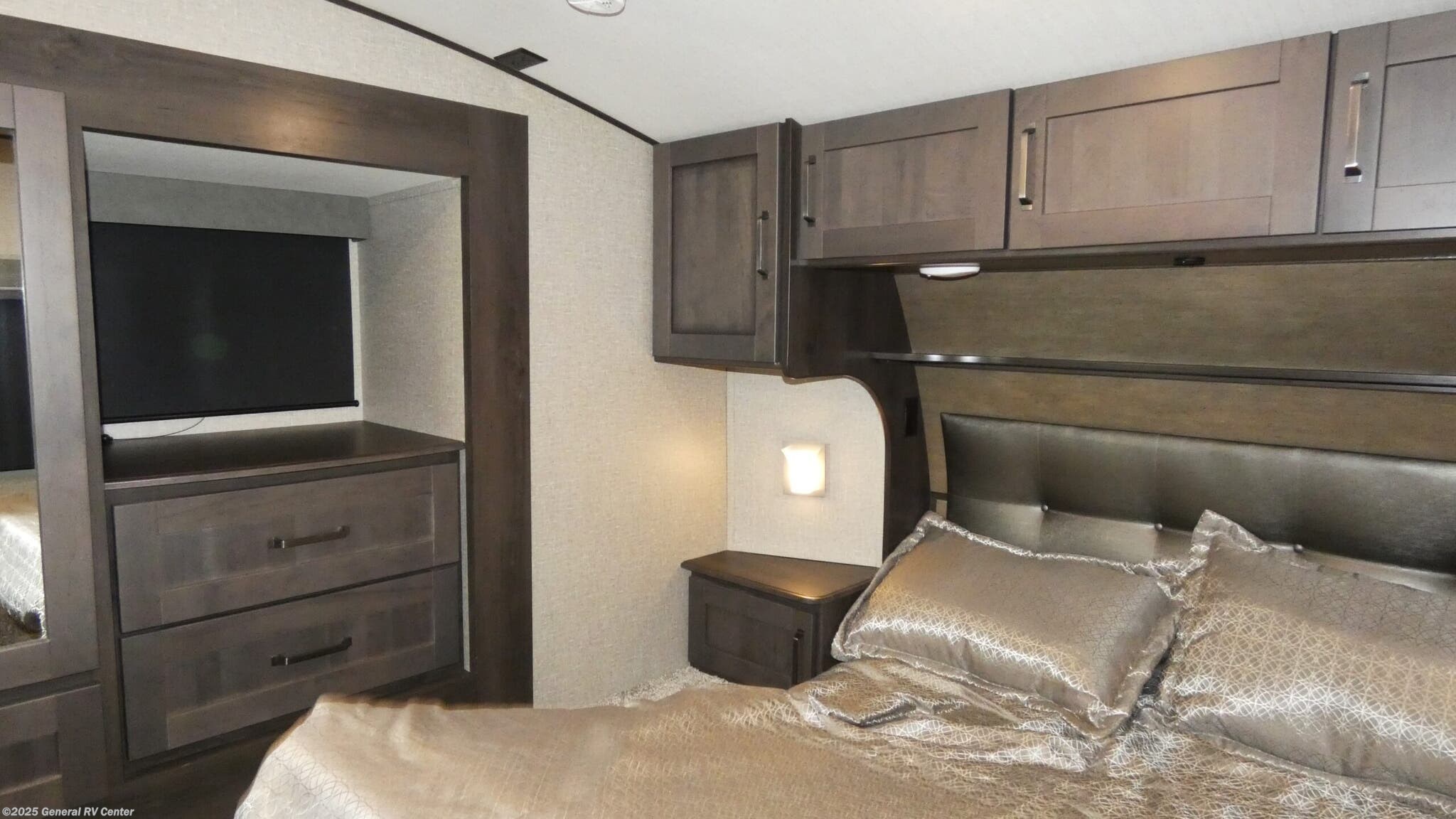 Step into the 2022 Grand Design Reflection 303RLS, where comfort and style meet in perfect harmony. This fifth wheel is designed for those who crave both adventure and luxury. With its spacious floorplan, it comfortably sleeps six, featuring a cozy queen bed and two convertible sleeping areas. The rear living space is a true highlight, boasting a tri-fold sofa and theater seating that invite you to unwind in front of the entertainment center, complete with a 40" TV and fireplace. The center kitchen, equipped with a full-size refrigerator and a three-burner cooktop, makes meal prep a breeze, while the free-standing dinette offers an elegant spot for dining. The Reflection 303RLS doesn't just stop at comfort; it excels in practicality. With generous storage options, including overhead cabinets and an unobstructed pass-through compartment, you'll have plenty of space for all your travel essentials. The center bath features a radius shower with a skylight, providing a refreshing retreat. Outside, two powered retractable awnings extend your living space, perfect for enjoying the great outdoors in style. With a robust GVWR and ample cargo capacity, this RV is ready to hit the road whenever you are. For more details and to experience this remarkable RV firsthand, visit your nearest General RV dealership.