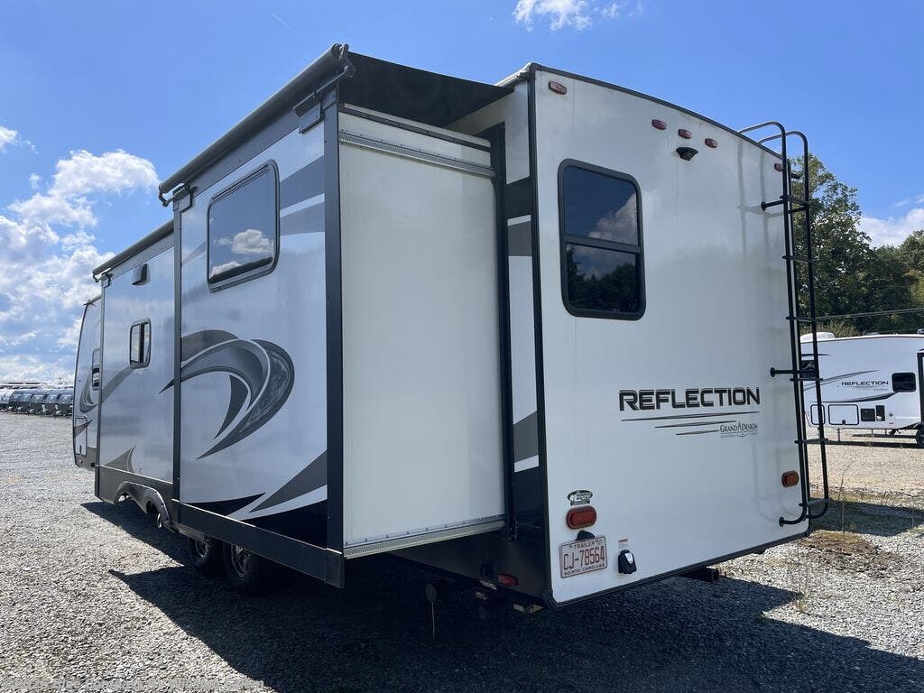 With any Reflection travel trailers by Grand Design, you will have a 165W solar panel for off-grid camping and a 50 Amp charge controller and inverter prep, a Universal All-In-One Docking Station, unobstructed pass-through storage, and Goodyear Endurance tires. Some other top features include the 30" stainless steel microwave, the maximum 7-foot headroom, and the ductless "Evenflow" heating system with no vents in the floor to collect debris. Each is constructed of gel coat exterior sidewalls, residential 5" truss rafters, walk-on roof decking, a fiberglass and radiant foil roof and front cap insulation plus laminated aluminum framed side walls, roof and end walls in slide rooms. Choose luxury, value and towability over all the others, take home a Reflection of your good taste!
