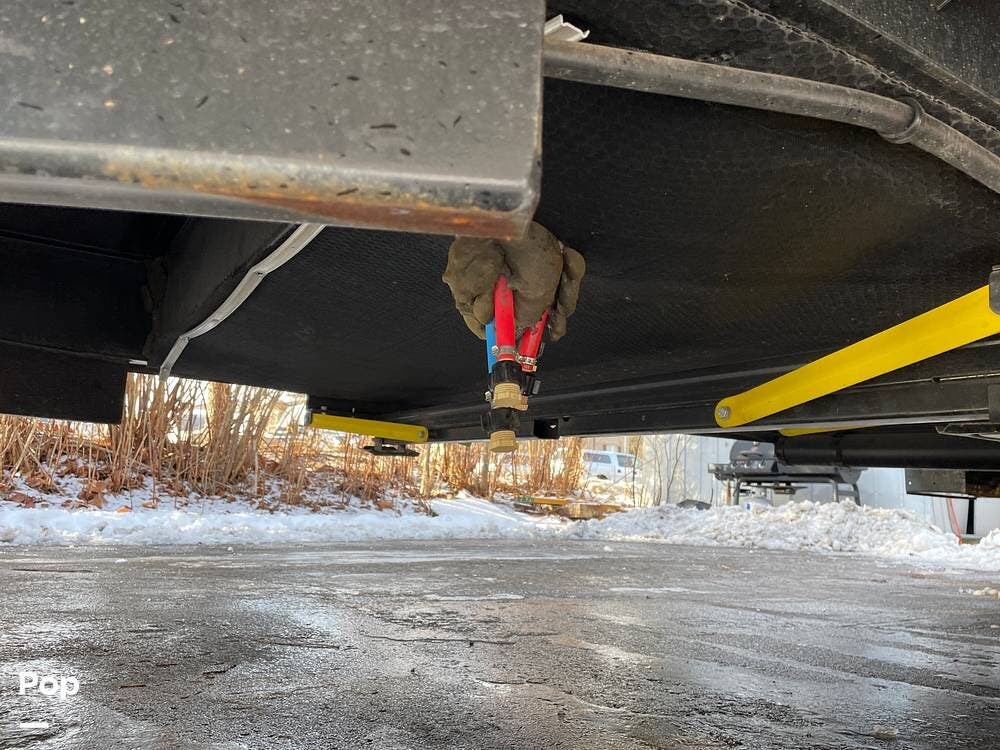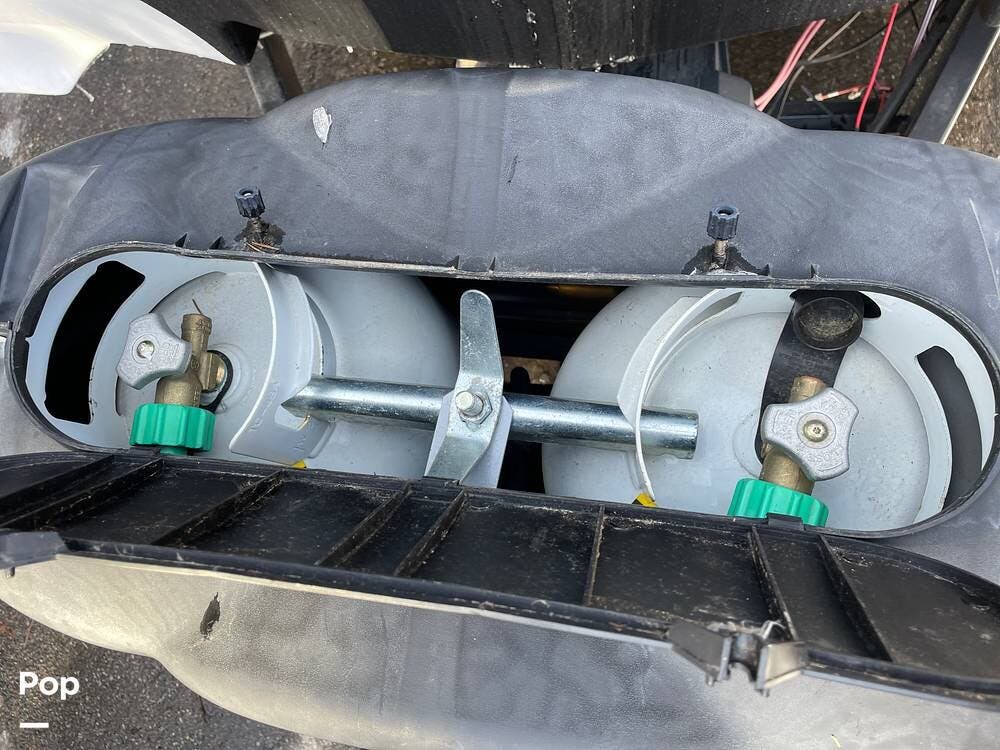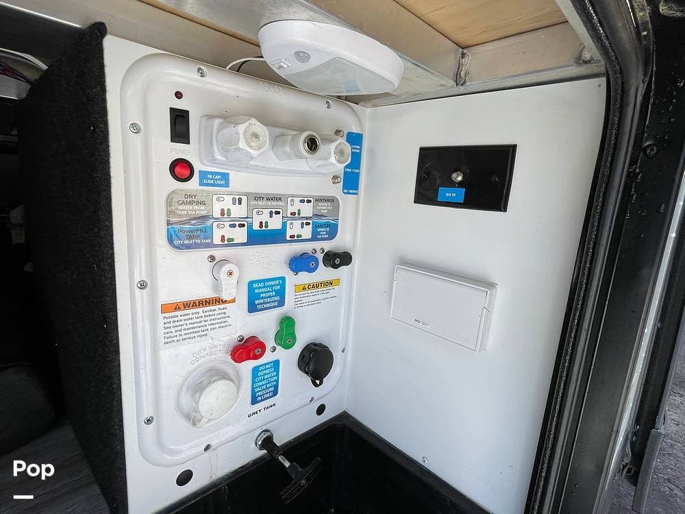 In the utility center, you'll find 2-30lb. LP bottles, a battery switch, outside speakers, a shower, and an "EZ" winterization valve.