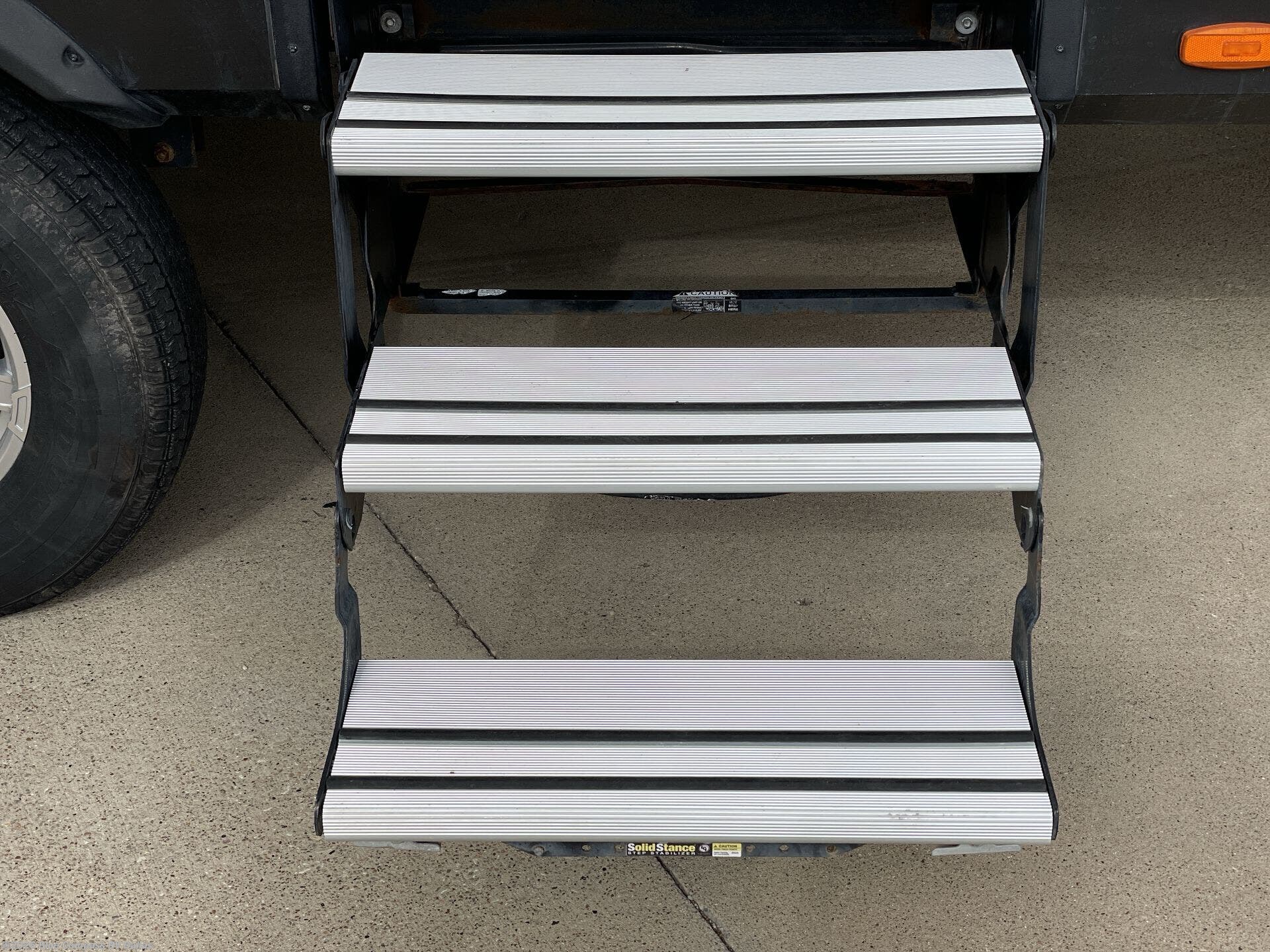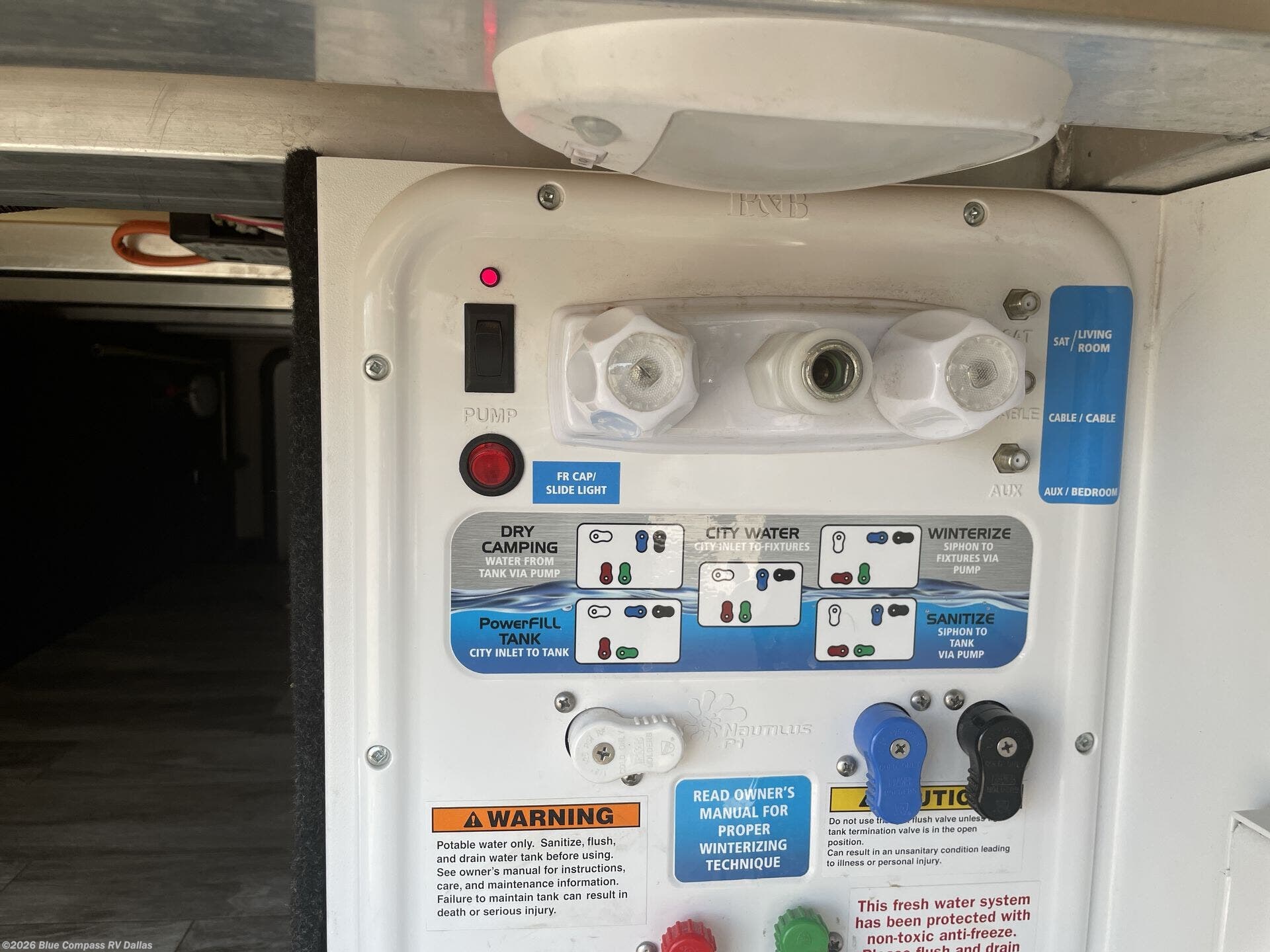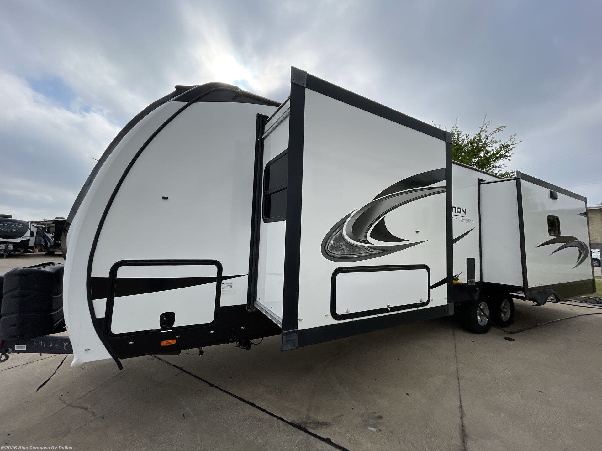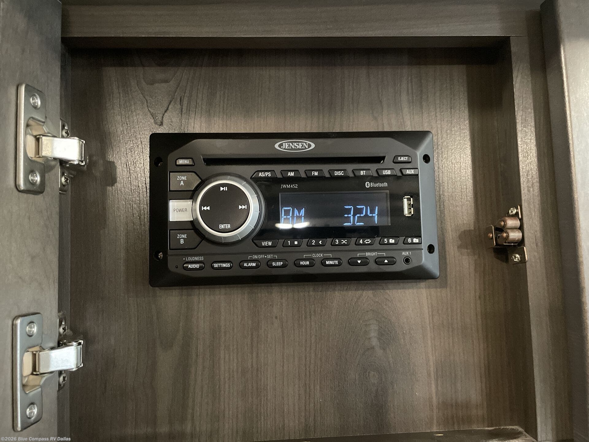The chef of the group will love the gourmet kitchen including the 16 cu. ft. refrigerator that will hold lots of cold ingredients, beverages and leftovers, the center island when preparing and serving meals, and the hutch with overhead cabinets to display decor and store dishes and such. This area also includes two slide outs for more floor space and furniture to relax on including theatre seating with cupholders for your drinks, a booth dinette to dine at and work from or choose a free standing dinette option, and a rear tri-fold sofa that offers sleeping space for two at night. There is a 40" LED HDTV with fireplace below to enjoy while inside, plus there are two awnings outdoors to relax under. When you are ready to call it a night, get cleaned up in the full bathroom, and retire to your front bedroom with a slide out queen bed or choose a king option, a front full-wall wardrobe with washer/dryer prep, a dresser and an additional wardrobe with drawers.