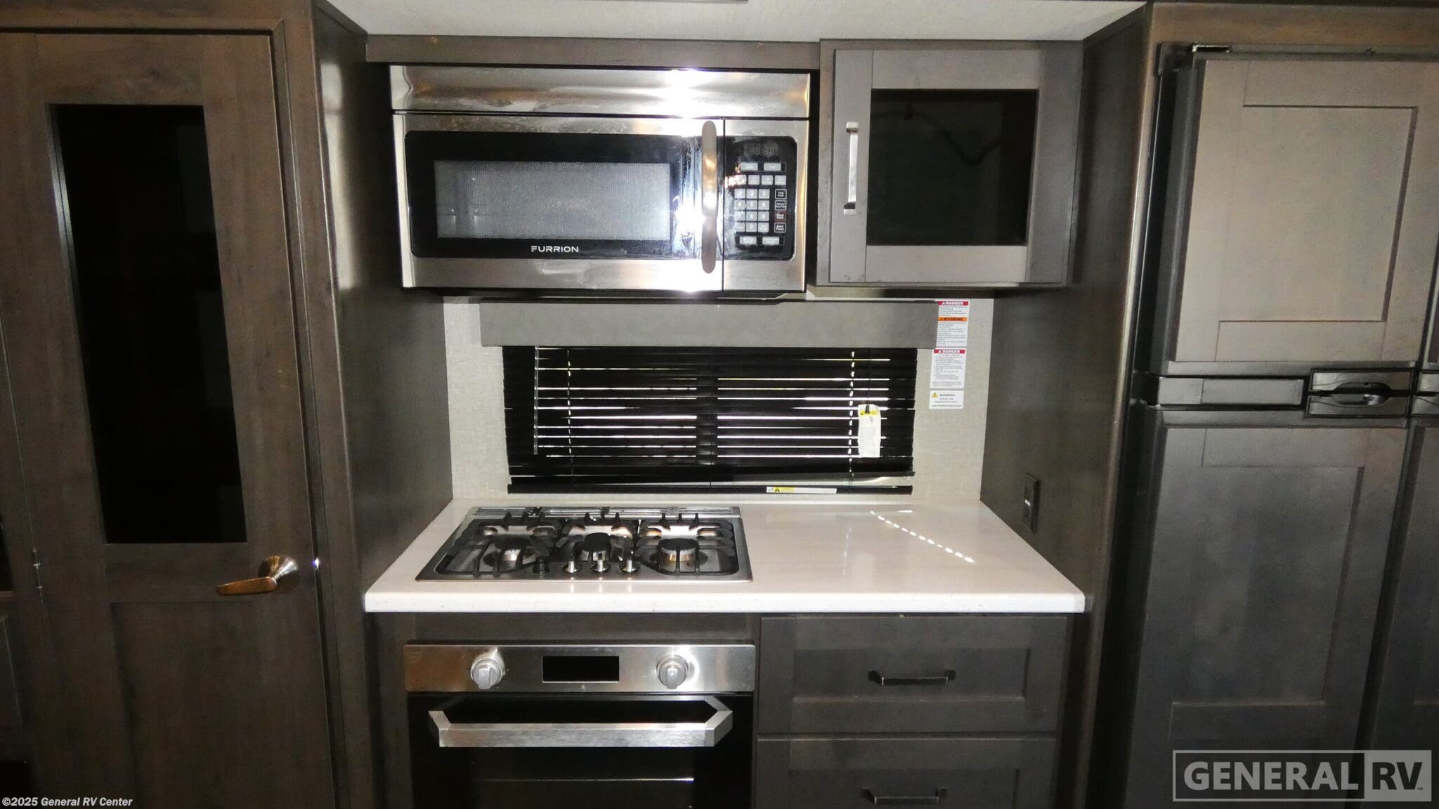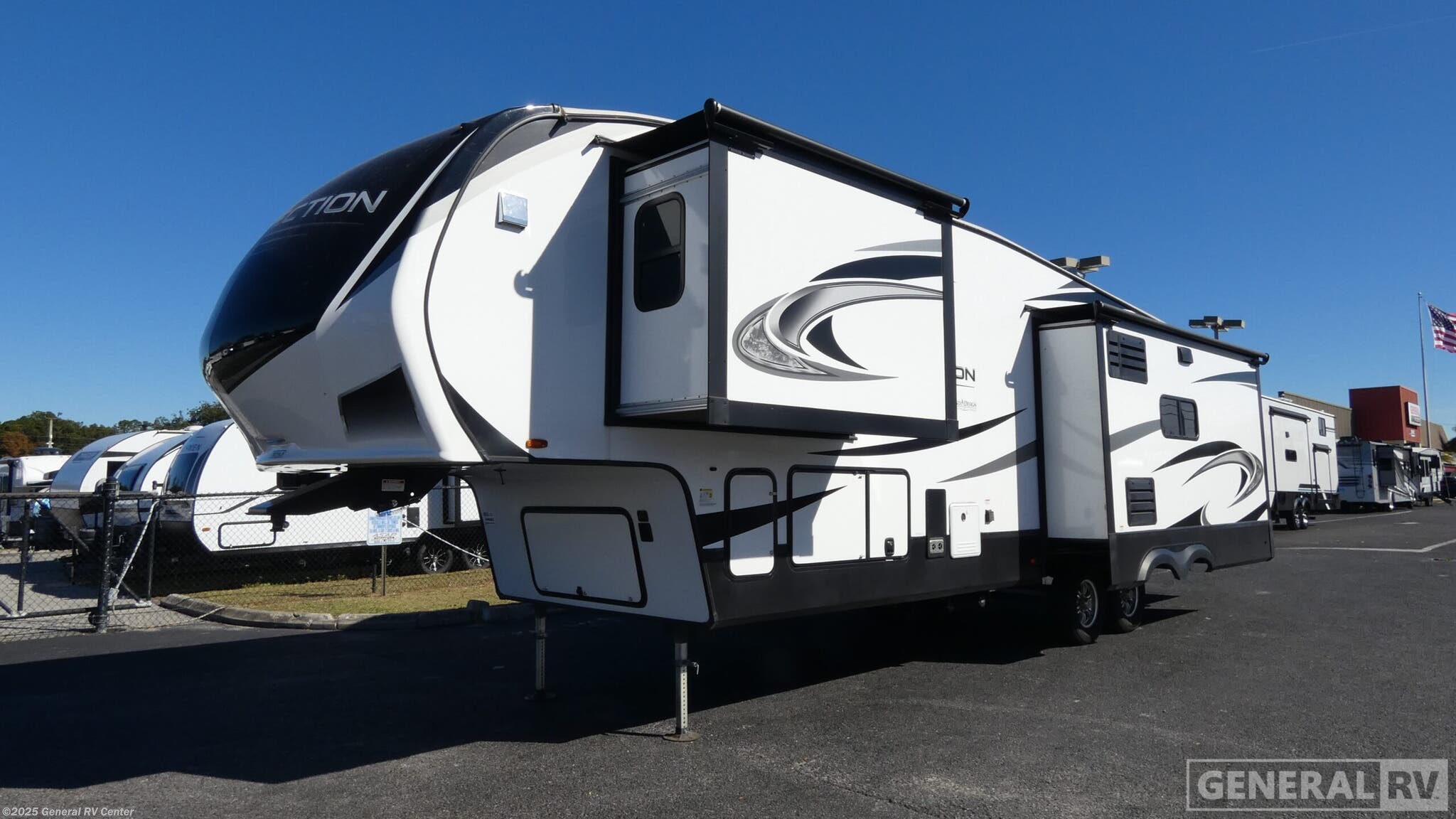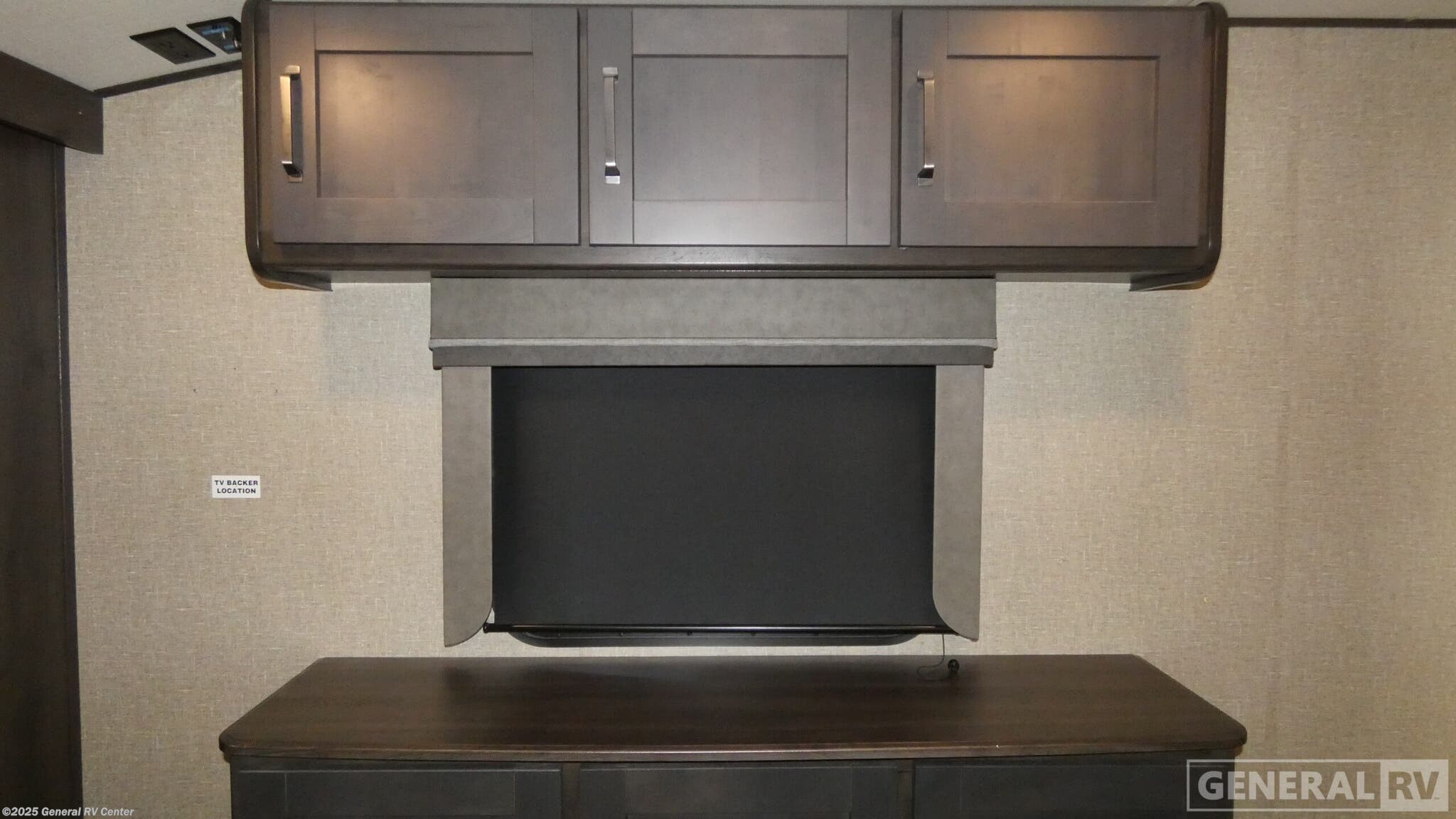Experience the ultimate in luxury and comfort with the 2022 Grand Design Reflection 337RLS. This stunning fifth wheel invites you to indulge in a spacious and thoughtfully designed interior that feels just like home. With its rear living area, you can relax in style on the plush theater seating or the tri-fold sofa, perfect for unwinding after a day of adventure. The entertainment center, complete with a 40" TV and fireplace, sets the scene for cozy evenings, while the expansive 12 cu. ft. refrigerator and three-burner cooktop in the center kitchen make meal preparations a breeze. The Reflection 337RLS offers a restful retreat in the front bedroom. The cleverly designed floorplan includes a center bath with a 30" x 48" fiberglass shower, ensuring a refreshing start to your day. With ample storage throughout, including overhead cabinets and a spacious pantry, you’ll have plenty of room to bring along all your essentials. Two powered retractable awnings provide a perfect outdoor space to enjoy the fresh air, whether you're hosting friends or enjoying a quiet evening under the stars. To explore this remarkable model in person, visit your nearest General RV dealership location.