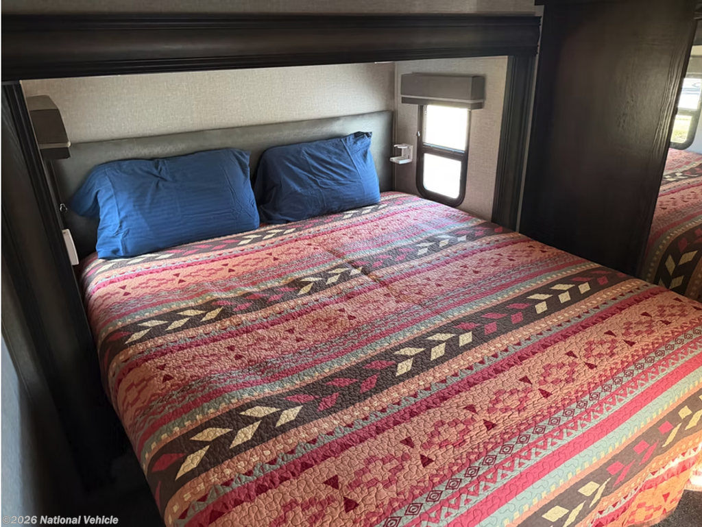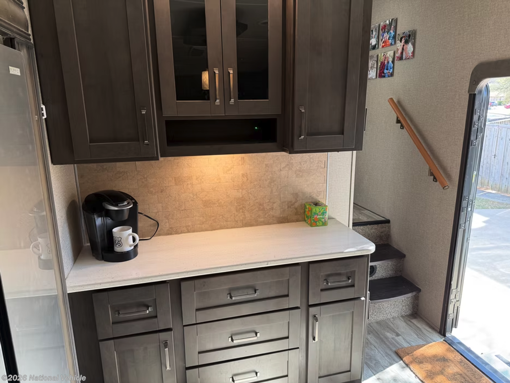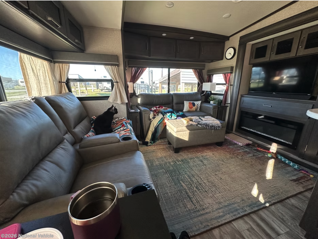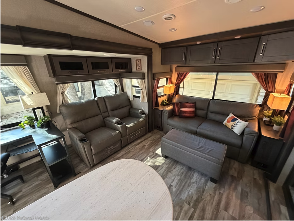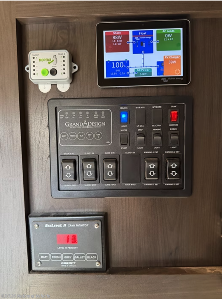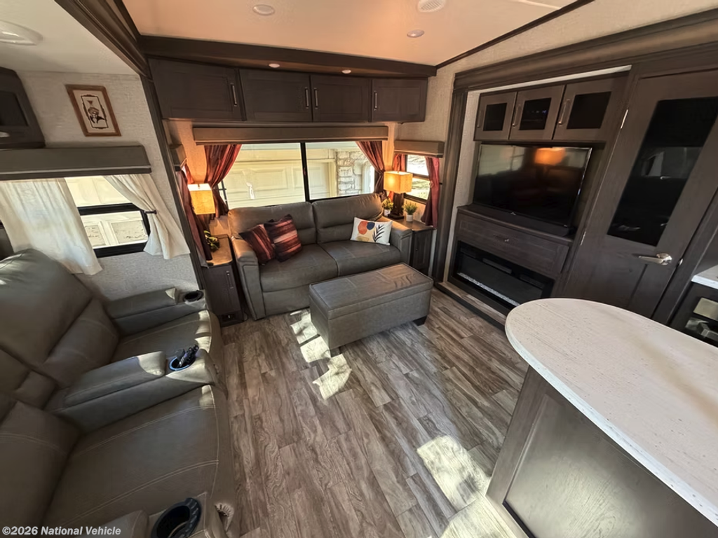 Designed for extended stays and full-time comfort, this rear-living luxury fifth wheel offers three spacious slide-outs, dual A/C units, and an impressive 1200-watt / 600Ah solar system capable of powering the entire coach?not just select outlets.