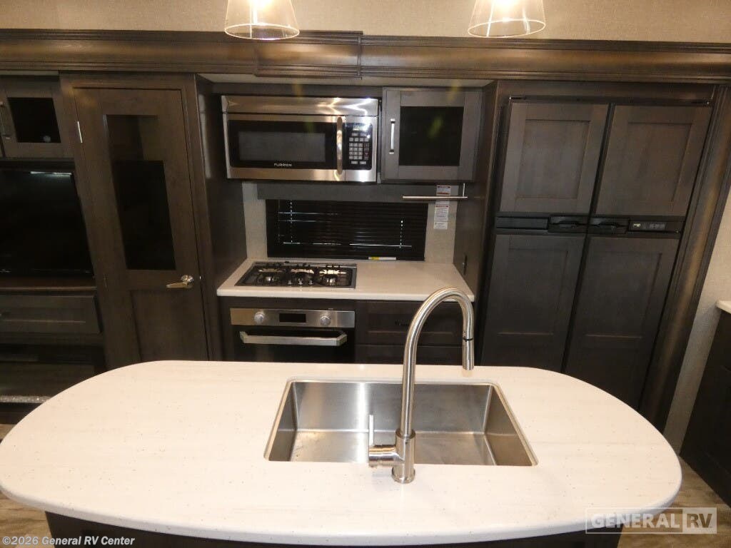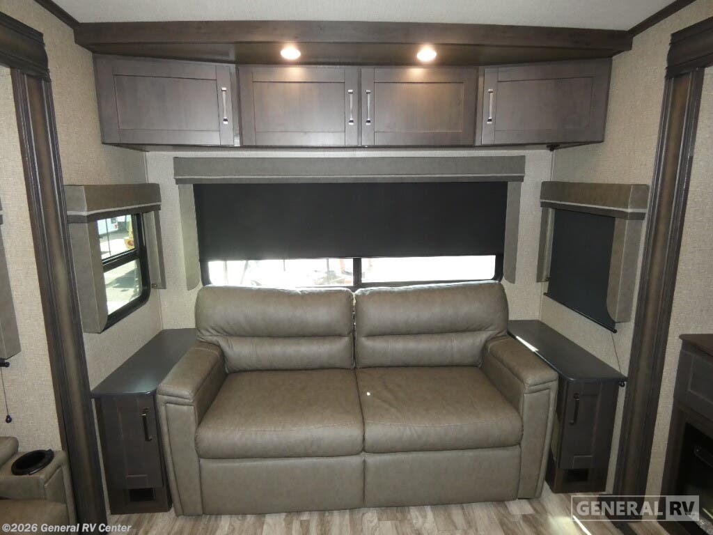 Experience the ultimate in luxury and comfort with the 2022 Grand Design Reflection 337RLS. This stunning fifth wheel invites you to indulge in a spacious and thoughtfully designed interior that feels just like home. With its rear living area, you can relax in style on the plush theater seating or the tri-fold sofa, perfect for unwinding after a day of adventure. The entertainment center, complete with a 40" TV and fireplace, sets the scene for cozy evenings, while the expansive 12 cu. ft. refrigerator and three-burner cooktop in the center kitchen make meal preparations a breeze. The Reflection 337RLS offers a restful retreat in the front bedroom, featuring a queen bed with an optional king upgrade. The cleverly designed floorplan includes a center bath with a 30" x 48" fiberglass shower, ensuring a refreshing start to your day. With ample storage throughout, including overhead cabinets and a spacious pantry, you’ll have plenty of room to bring along all your essentials. Two powered retractable awnings provide a perfect outdoor space to enjoy the fresh air, whether you're hosting friends or enjoying a quiet evening under the stars. To explore this remarkable model in person, visit your nearest General RV dealership location.
