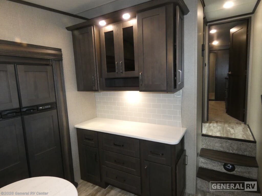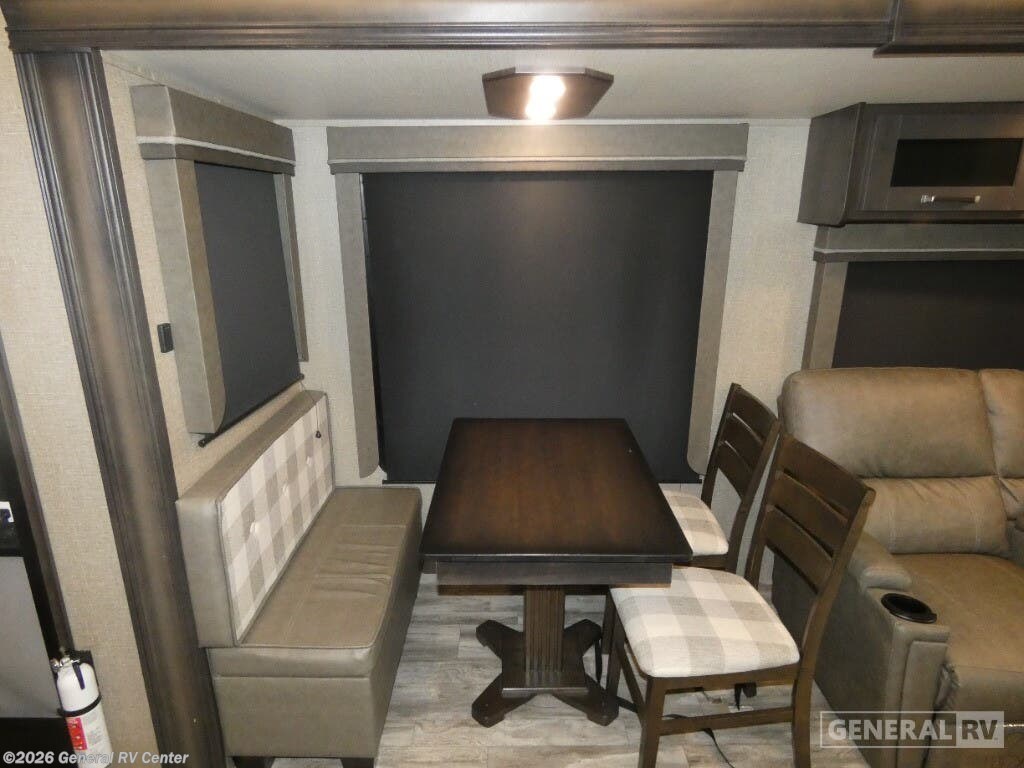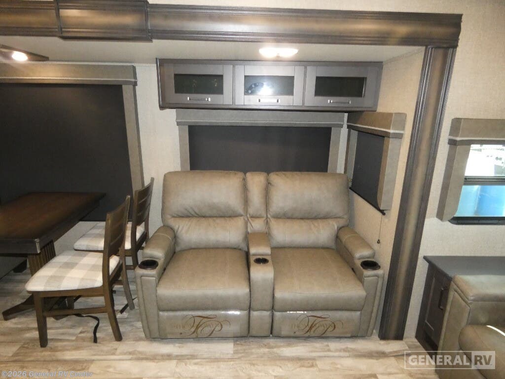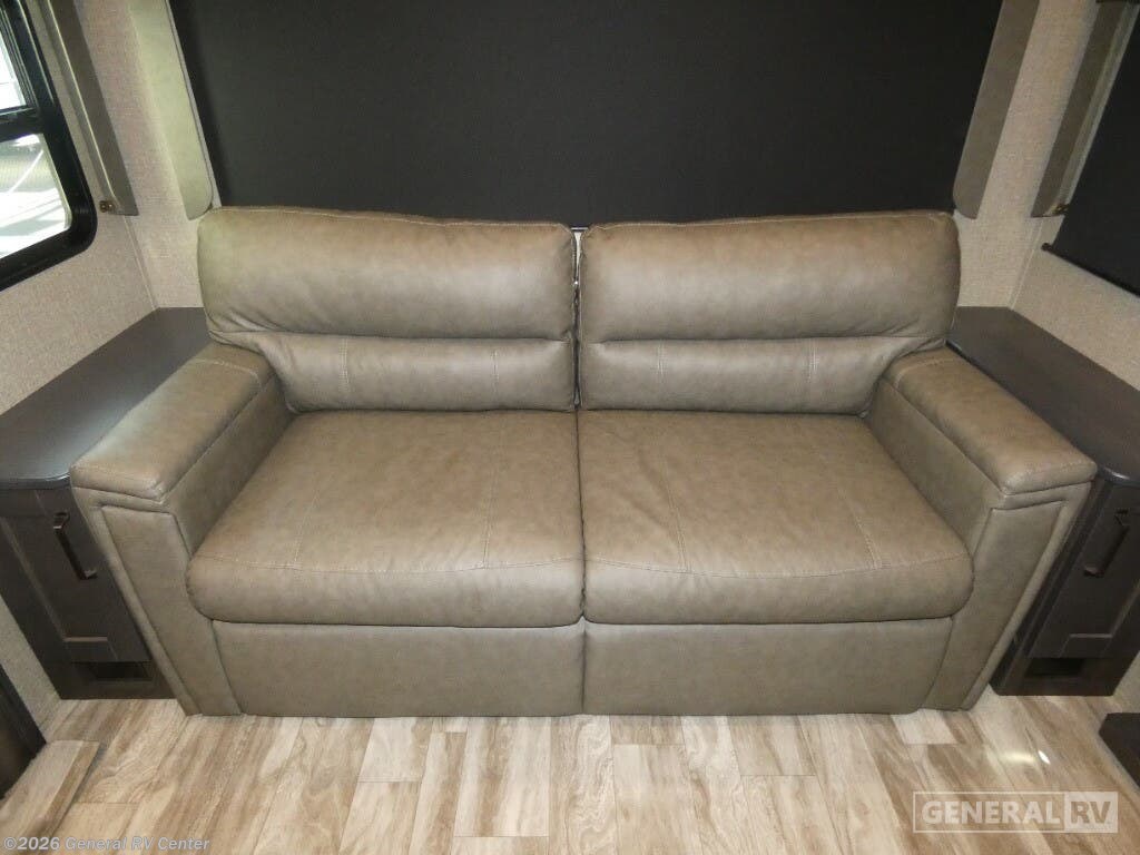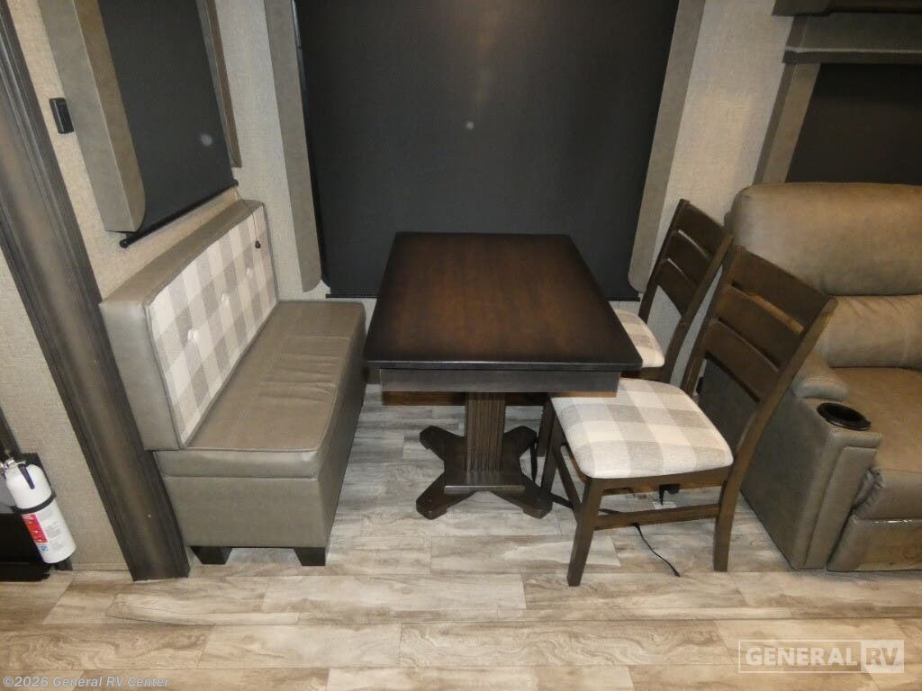 Experience the ultimate in luxury and comfort with the 2022 Grand Design Reflection 337RLS. This stunning fifth wheel invites you to indulge in a spacious and thoughtfully designed interior that feels just like home. With its rear living area, you can relax in style on the plush theater seating or the tri-fold sofa, perfect for unwinding after a day of adventure. The entertainment center, complete with a 40" TV and fireplace, sets the scene for cozy evenings, while the expansive 12 cu. ft. refrigerator and three-burner cooktop in the center kitchen make meal preparations a breeze. The Reflection 337RLS offers a restful retreat in the front bedroom, featuring a queen bed with an optional king upgrade. The cleverly designed floorplan includes a center bath with a 30" x 48" fiberglass shower, ensuring a refreshing start to your day. With ample storage throughout, including overhead cabinets and a spacious pantry, you’ll have plenty of room to bring along all your essentials. Two powered retractable awnings provide a perfect outdoor space to enjoy the fresh air, whether you're hosting friends or enjoying a quiet evening under the stars. To explore this remarkable model in person, visit your nearest General RV dealership location.