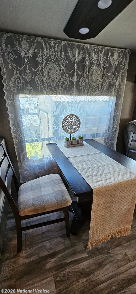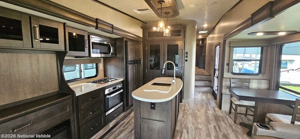 The chef-inspired kitchen is a highlight of the 367BHS, equipped with residential-style appliances, 3-burner gas stove and oven, abundant counter space, a large pantry, and ample storage - making meal prep and cleanup a breeze. A comfortable dining area provides the perfect place for meals, games, or planning your next itinerary.