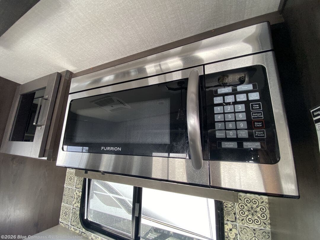 Travel to see new state parks, RV resorts or your family in other states as you tow this fifth wheel to each destination to enjoy comfort and convenience, plus a place to work and be able to offer extra sleeping space for friends and family when they visit! The middle extra room provides a tri-fold sofa slide, a desk, a wardrobe, plus a 64" x 88" upper bed loft area with access from the hallway, which provides two different places to accommodate overnight guests. The full bathroom will keep everyone refreshed, and the front bedroom allows you to sleep on a queen bed slide or choose the king option. And you will love the front wardrobe, the dresser, and the option to add a washer/dryer. The main living and kitchen area provides plenty of seating from the rear tri-fold sofa, the booth dinette or choose the free standing dinette option, and the theatre seats with cupholders. And the kitchen island, the appliances, and the large pantry allow you to take everything you need with you.