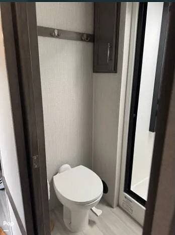 * Bathroom: Includes a shower, foot flush toilet, and vanity