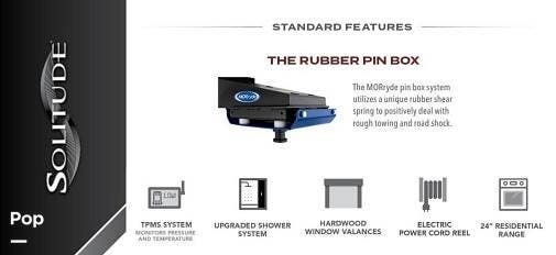 * Other Notable Features: Six-point auto-leveling, central vacuum, frameless windows, tire pressure monitoring system, anti-chocking hitch, 2 A/C units, solar prep