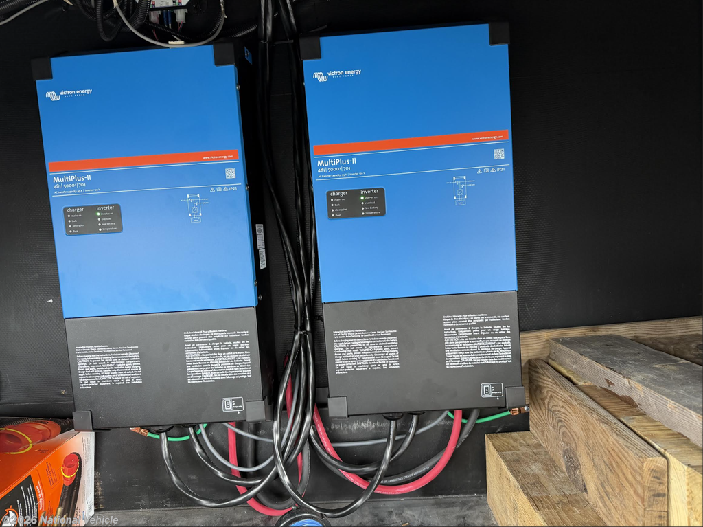 What truly sets this Solitude apart is its premium Victron lithium power system, designed for serious off-grid capability. Unlike typical RV solar setups, this professionally installed system delivers power comparable to high-end expedition RVs and luxury off-grid homes. It allows you to run most of the coach?including residential appliances and even air conditioning?without shore power.