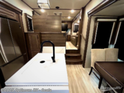 This fifth wheel offers a unique rear exterior storage bay with tray giving you extra space to carry larger items like outdoor camping equipment such as tables and chairs, golf clubs or even your seasonal items if you plan to live in this Solitude. Another popular feature is the separate living area up front giving you manual theater seats, dual opposing tri-fold sofa slides that offer sleeping space for family and friends, and an LED TV with a fireplace below to enjoy. The separate kitchen area is a another great place to gather at the free-standing table with four chairs or around the kitchen island. The cook will appreciate the flip-up countertop, and all the appliances plus the pull-out trash and the oversized pantry with shelves. At night you can retire to the master bedroom to your own queen bed within a slide out or choose the king option, and the pull-out ottoman will come in handy. You might like to add a washer/dryer option to the prepped closet space, and the wardrobe can keep your clothing wrinkle-free and there are drawers to store more items.