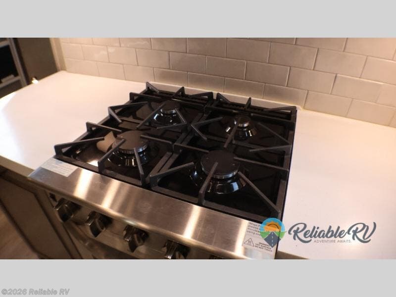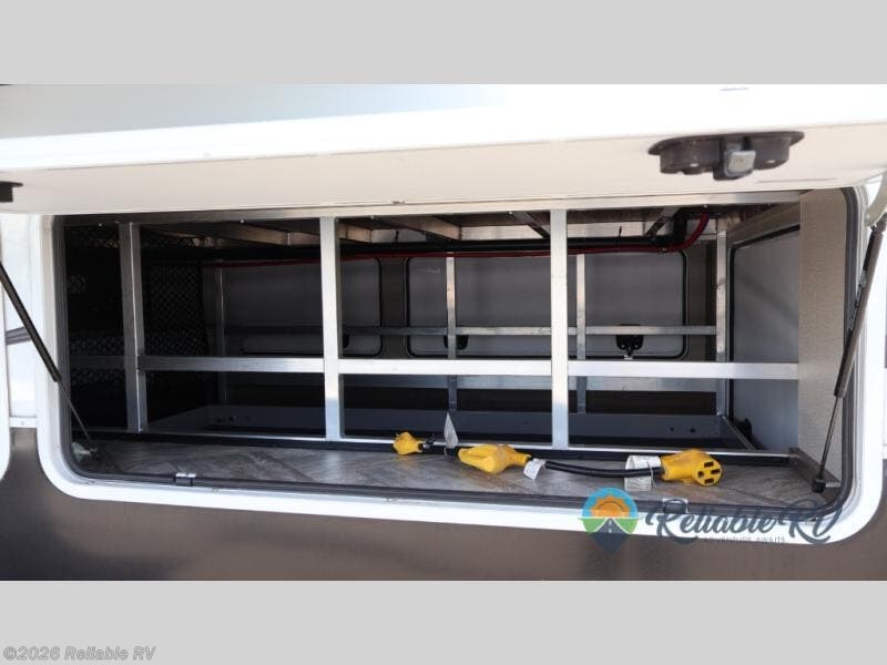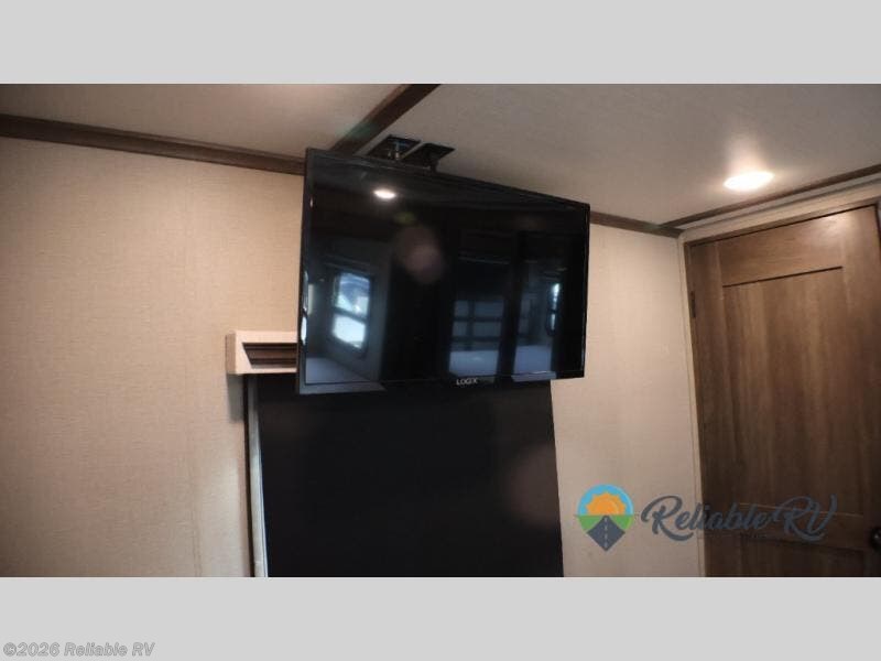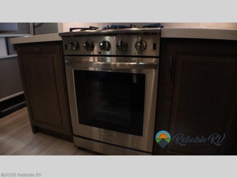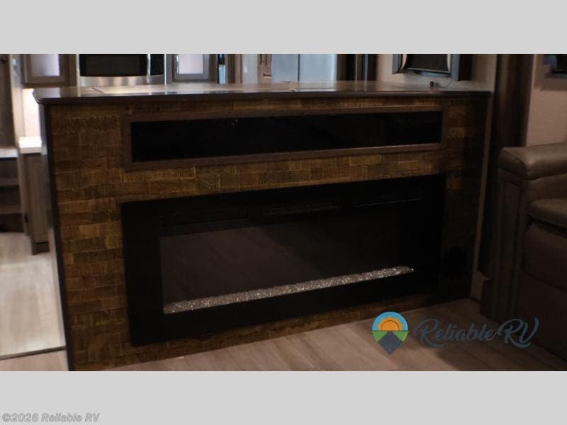 This fifth wheel offers a unique rear exterior storage bay with tray giving you extra space to carry larger items like outdoor camping equipment such as tables and chairs, golf clubs or even your seasonal items if you plan to live in this Solitude. Another popular feature is the separate living area up front giving you manual theater seats, dual opposing tri-fold sofa slides that offer sleeping space for family and friends, and an LED TV with a fireplace below to enjoy. The separate kitchen area is a another great place to gather at the free-standing table with four chairs or around the kitchen island. The cook will appreciate the flip-up countertop, and all the appliances plus the pull-out trash and the oversized pantry with shelves. At night you can retire to the master bedroom to your own queen bed within a slide out or choose the king option, and the pull-out ottoman will come in handy. You might like to add a washer/dryer option to the prepped closet space, and the wardrobe can keep your clothing wrinkle-free and there are drawers to store more items.