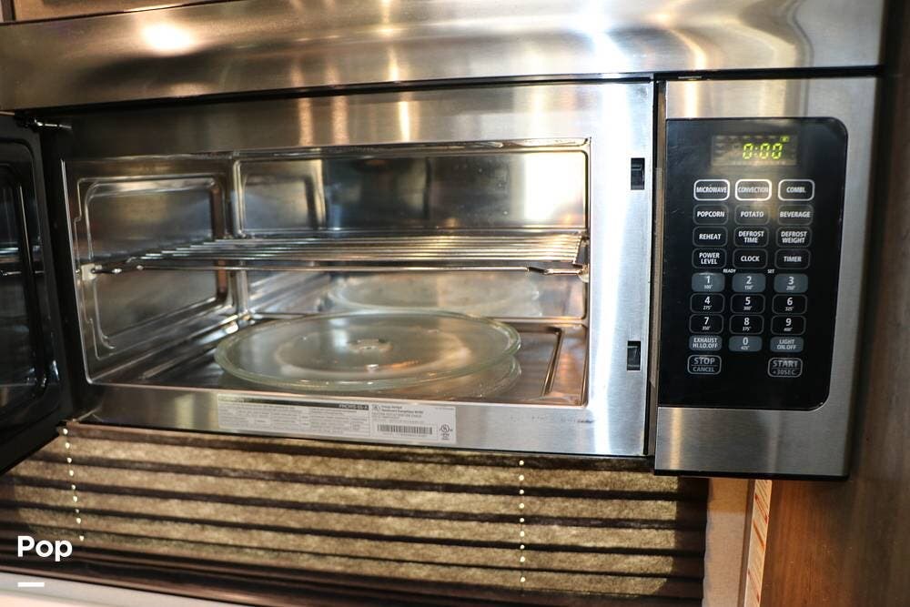 The Galley features residential stainless steel applicances - 3 Door refrigerator/freezer with ice maker, Convection/Microwave Oven over range hood unit - over the 3 Burner Gas stove top with glass cooktop cover with conventional gas oven below. The large kitchen island features a stainless steel double kitchen sink with gooseneck faucet and lots of storage space below the solid surface countertops. There is a floor to ceiling pantry closet to the right of the refrigerator, and a side board hutch for additional serving space, coffee maker, or as a desk area.