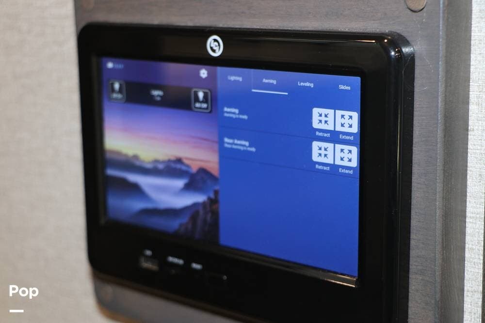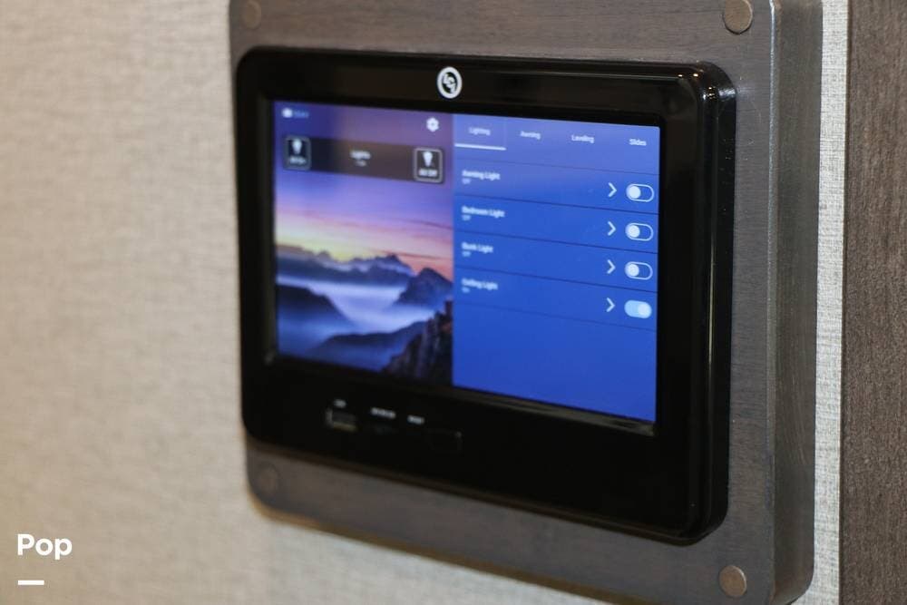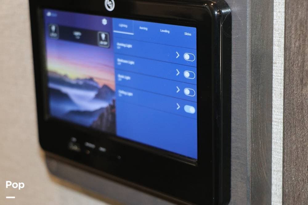 There are two Control Centers in the hallway - the standard flip switch panel, and the touch screen control system on the wall both provide full RV system control.