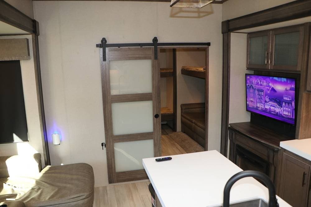 Looking for a Grand Design Fifth Wheel loaded with a Rear Bunk Room that can sleep up to six with its own half bath and separate entrance? Look no further this 2022 Solitude 3740BH-R is in great condition - and has all the features you want to make your time on the road - comfortable and enjoyable for everyone!