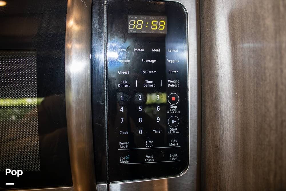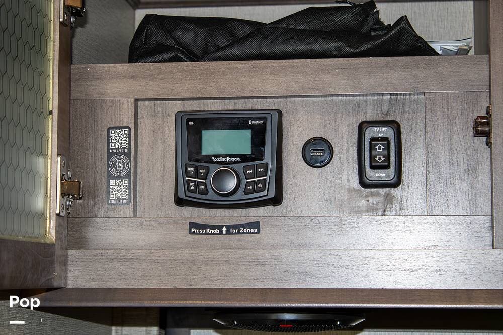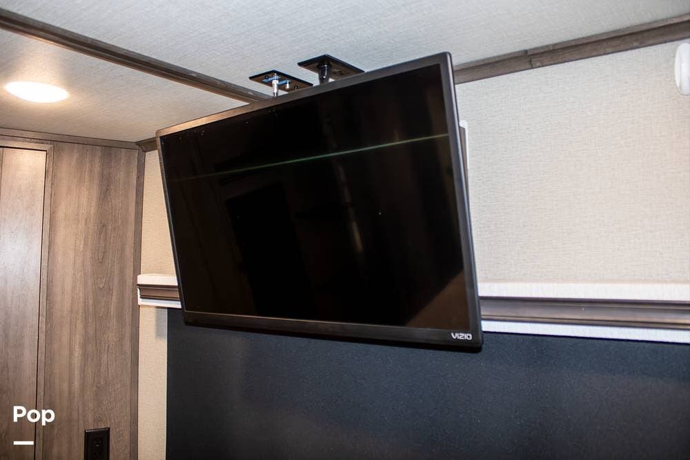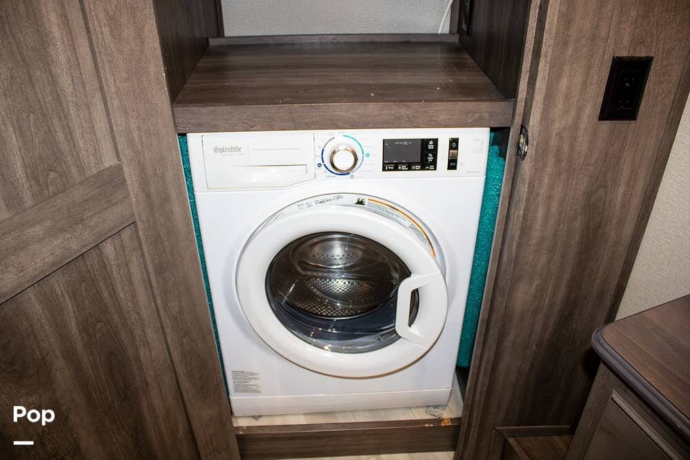 The master bedroom offers a king bed that's electronically adjustable and its own TV. A washer/dryer combo unit is already installed, adding convenience for longer trips or full-time living.