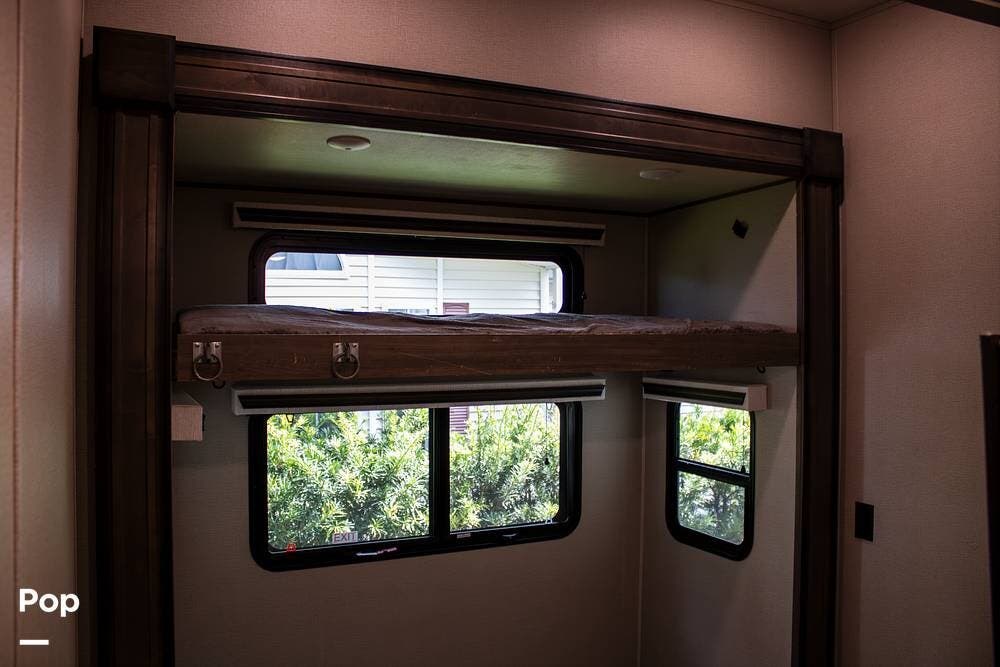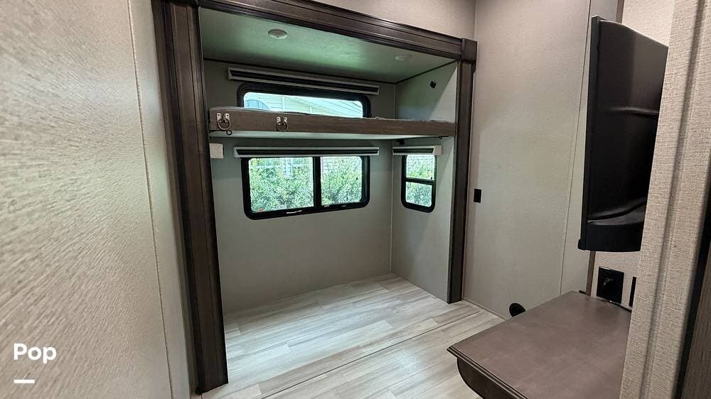 This model is known for its smart floor plan featuring a mid-bunk bonus room that can serve as an extra bedroom, office, or flex space, perfect for families or remote work. It includes a single bunk bed with ladder in the flex room, ideal for kids or extra guests.