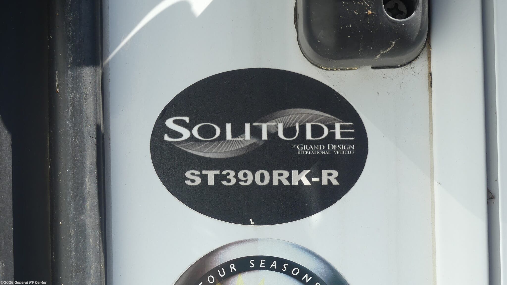 Grand Design Solitude fifth wheel 390RK highlights: Five Slides Raised Rear Kitchen Dual-Sink Vanity Bar Top with Chairs Four-Door Refrigerator Exterior Sliding Tray Enjoy each and every vacation, month-long trip or even extended stay at an RV park in this fifth wheel that is spacious from the front to the rear! The raised kitchen gives the cook plenty of room to whip up any type of meal using the stainless steel appliances including the 24" residential oven, the oversized pantry and the raised bar top will provide you even more counter space on top of dining with two chairs that overlook the middle living area. Relaxing is made easy with the two tri-fold sofas and theatre seating while watching the big game on the LED Smart TV and enjoying the fireplace below. Dual sinks in the full bathroom allow two people to easily get ready at once, and the seat in the shower is a nice convenience. At night, retire to your own queen bed slide after sitting on the pull-out ottoman to take your shoes off, and enjoy a show on the LED TV above the flip-top dresser, or wash some linens in the closet with a washer/dryer if you added that option. With any Solitude fifth wheel by Grand Design, you will get maximum insulation from the thermal roof design, the exclusive fully laminated walls, the triple insulated main floor, the Rail-Tite underbelly seal, the insulated gooseneck and the insulated baggage doors. The MORryde rubber pin box system utilizes a unique rubber shear spring to positively deal with rough towing and road shock, the Tire Linc TPMS system monitors pressure and temperature, and the 6-point hydraulic system allows you to setup easily. And the upgraded shower system, the hardwood window valances, the oversized kitchen pantry, the window above the master bed headboard, and the Rockford Fosgate stereo entertainment system with HDMI and App controls are a few more reasons you will love these extended-stay fifth wheels!