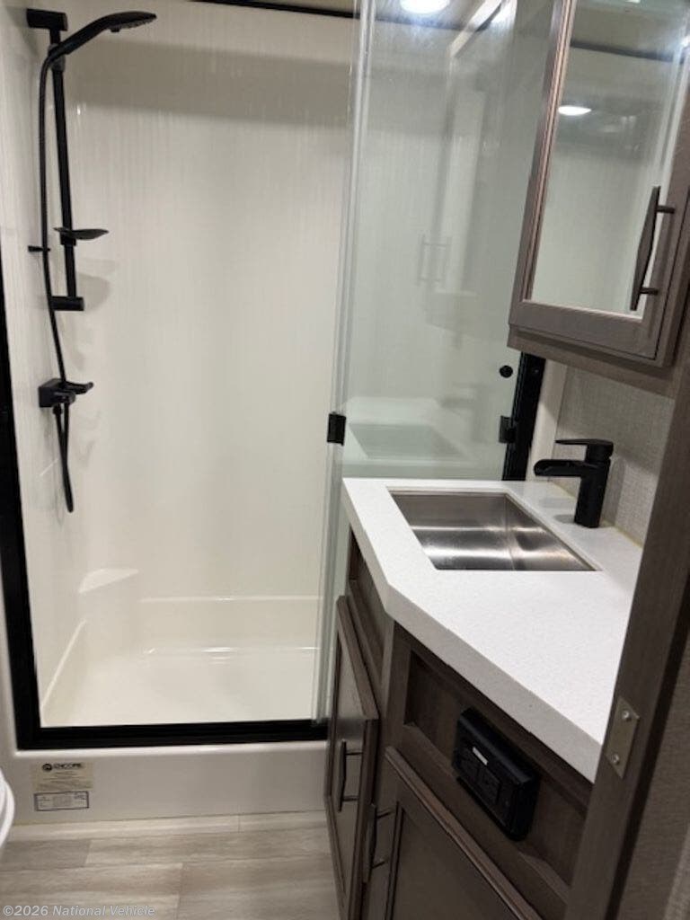 With the upgraded tires and wheels, second A/C with heat pump, residential refrigerator, and leveling system ? this coach is well above average compared to most on the market.
